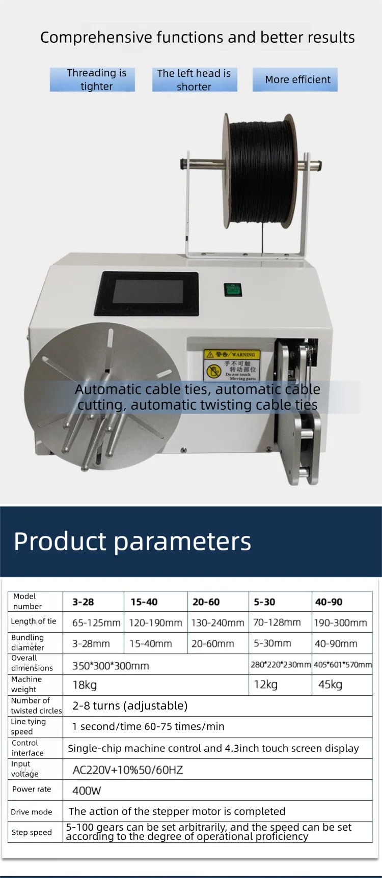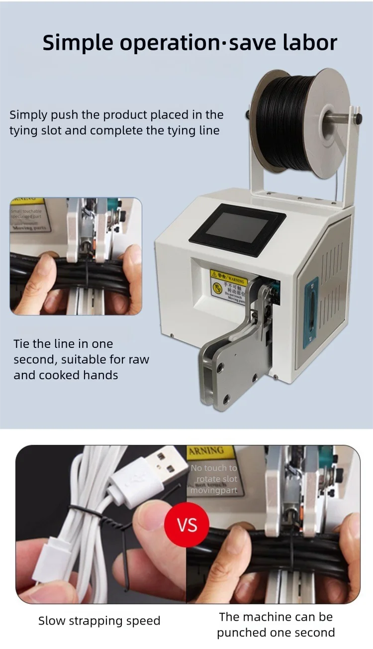 Encadernação automática de fios, operação simples, encadernação de fios apertados, estável e eficiente