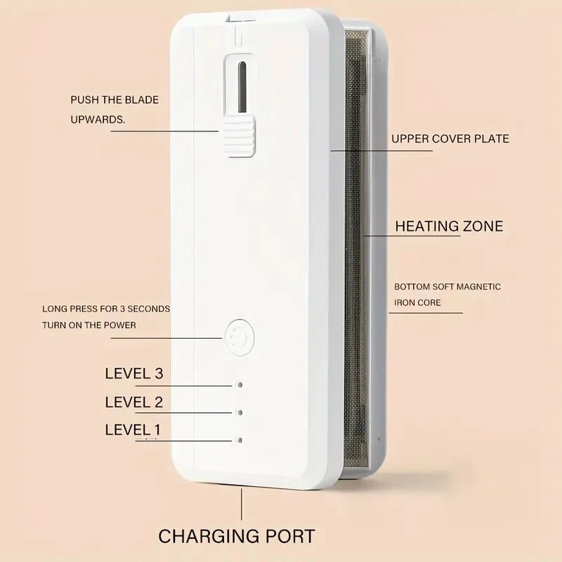 Aparência compacta e leve, fácil de usar.A parte inferior é projetada com ímãs macios que podem ser fixados na geladeira para fácil armazenamento.