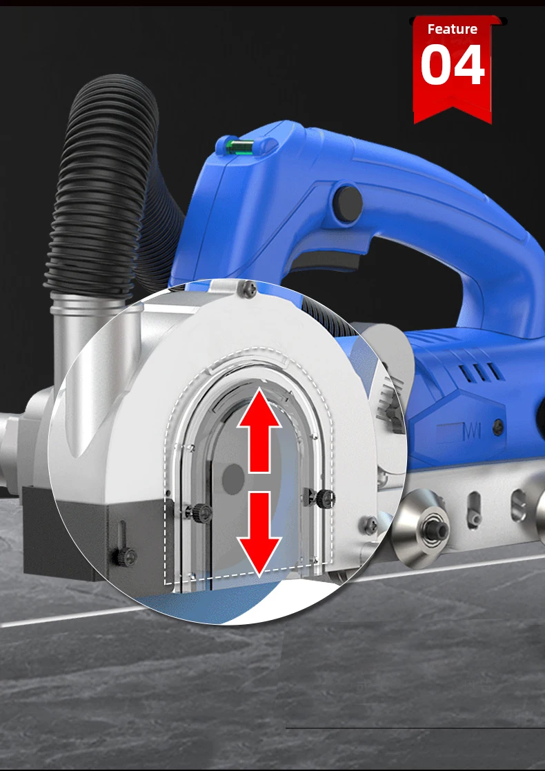 A altura da tampa contra poeira pode ser ajustada de acordo com a profundidade de corte.