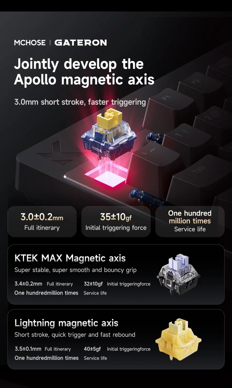 - > Mchose mix87 teclado swtich magnético com fio teclado para jogos 8k + 256k esort 0.08ms baixa latência e-sports acessórios para jogadores personalizados