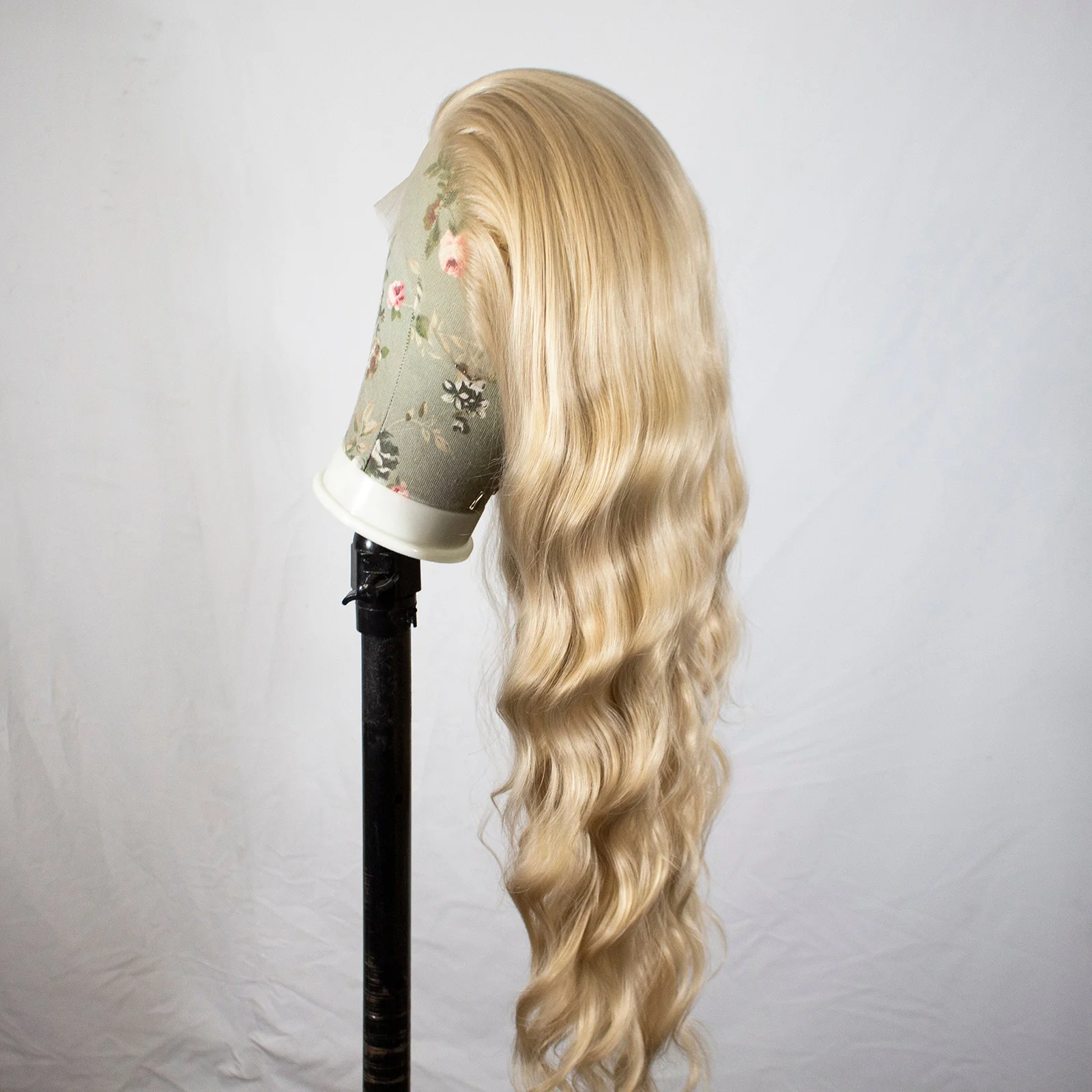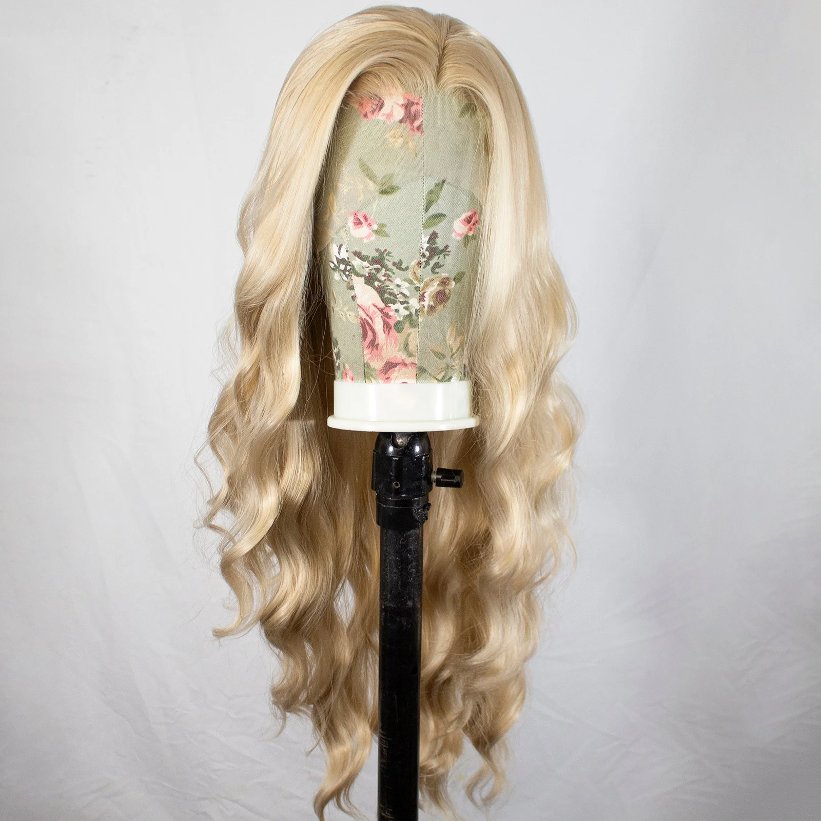 RONGDUOYI Mel loira longa ondulada peruca dianteira do laço sintético para mulheres parte livre solta encaracolado ligadura loira perucas de fibra resistente ao calor para festa diária
