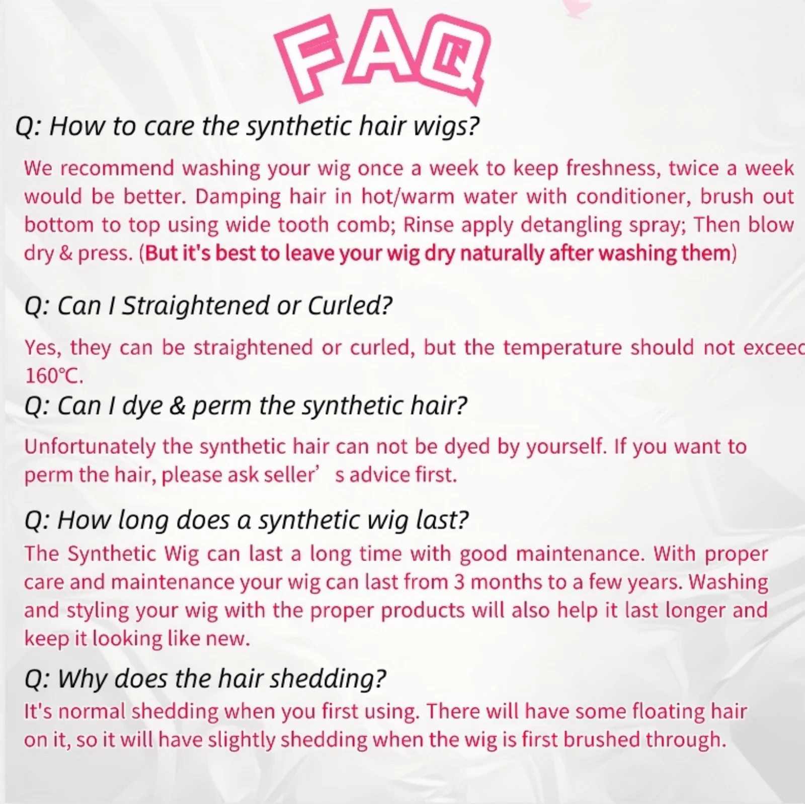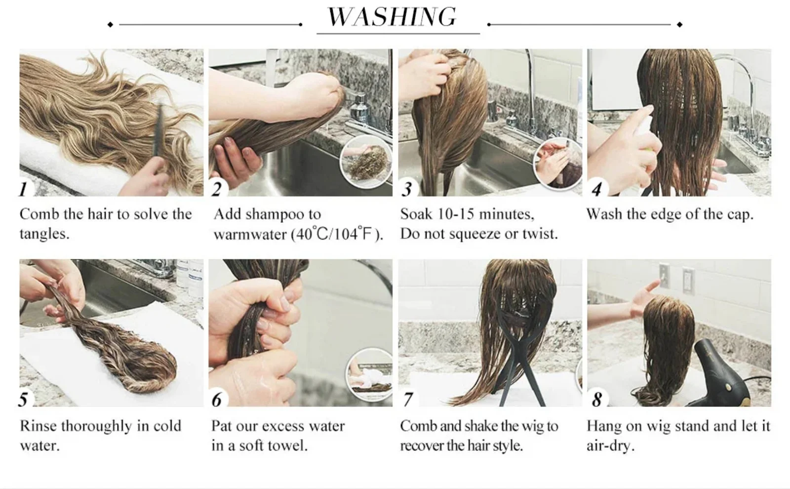 Resistente ao calor 130-160°C (266-320°F) Nunca deve ser tingido ou branqueado.Você pode usar uma ferramenta de aquecimento para enrolar ou endireitar.