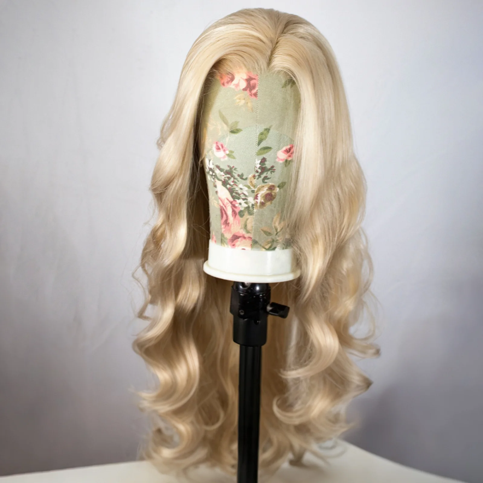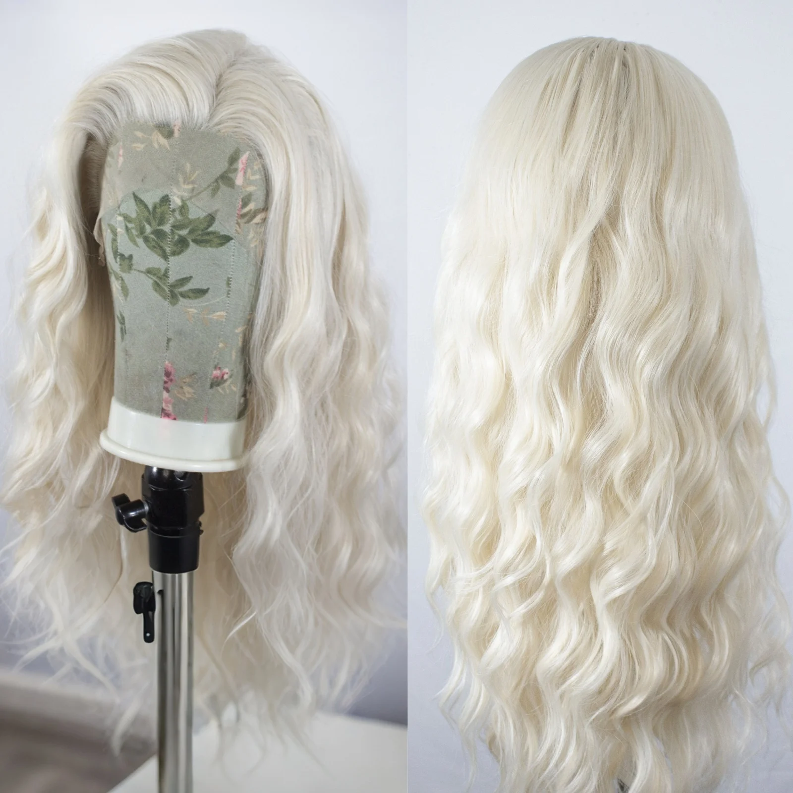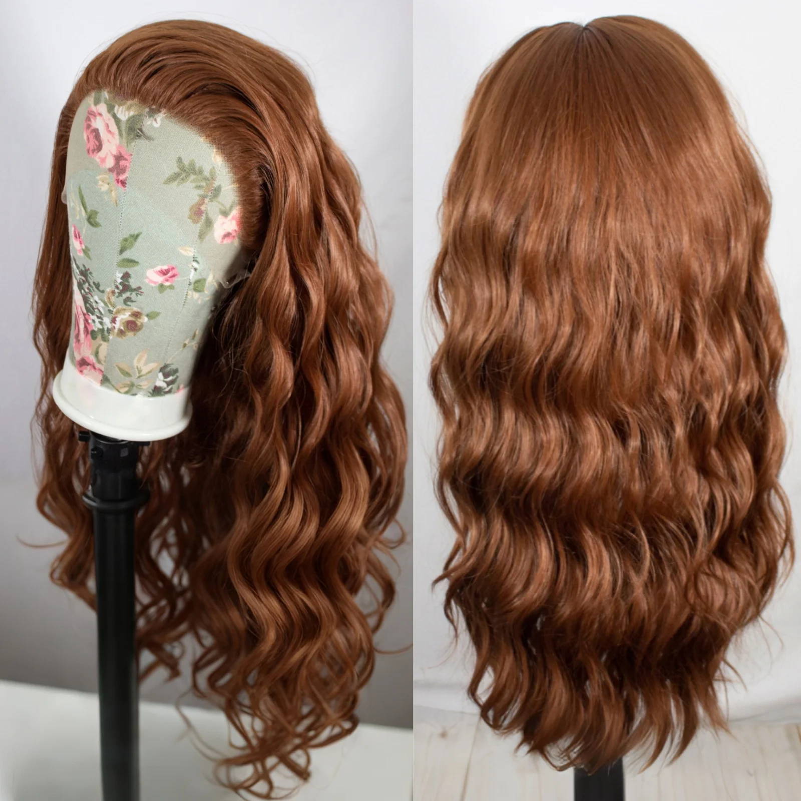 - > Mel loira longo ondulado peruca dianteira do laço sintético para as mulheres parte livre solto cabelo encaracolado perucas de fibra resistente ao calor para festa diária