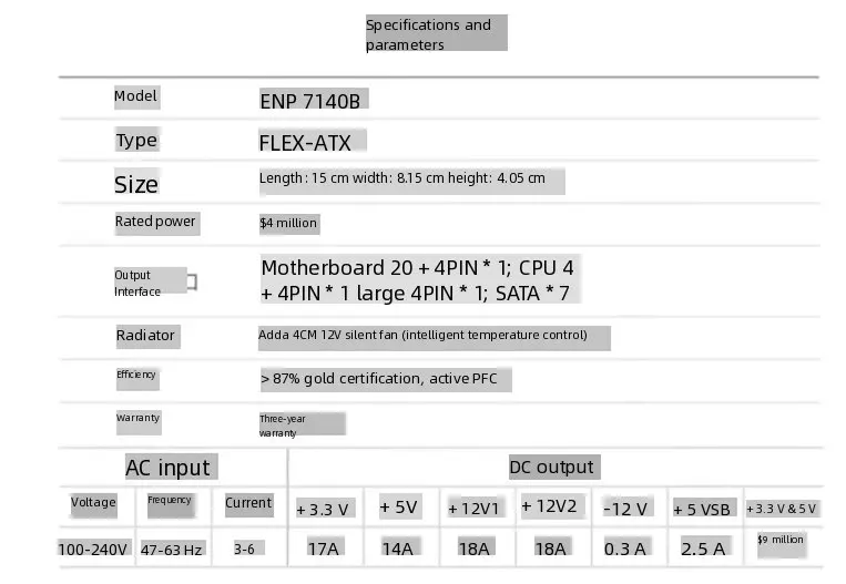 - > Melhorar ENP-7140B FLEX Fonte de alimentação pequena 1U 400W silenciosa 80Plus NAS ITX