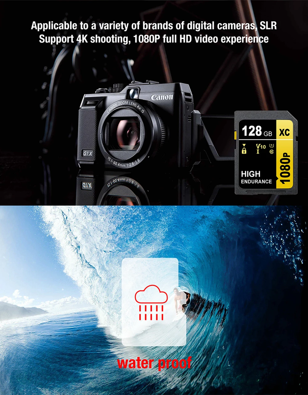 - > Memória de alta velocidade Cartão SD, 8GB, 16GB, 32GB, Cartão Flash SD, 64GB, 128GB, 256GB, Classe 10