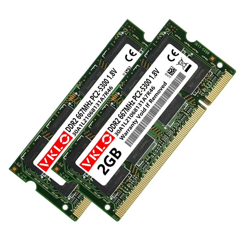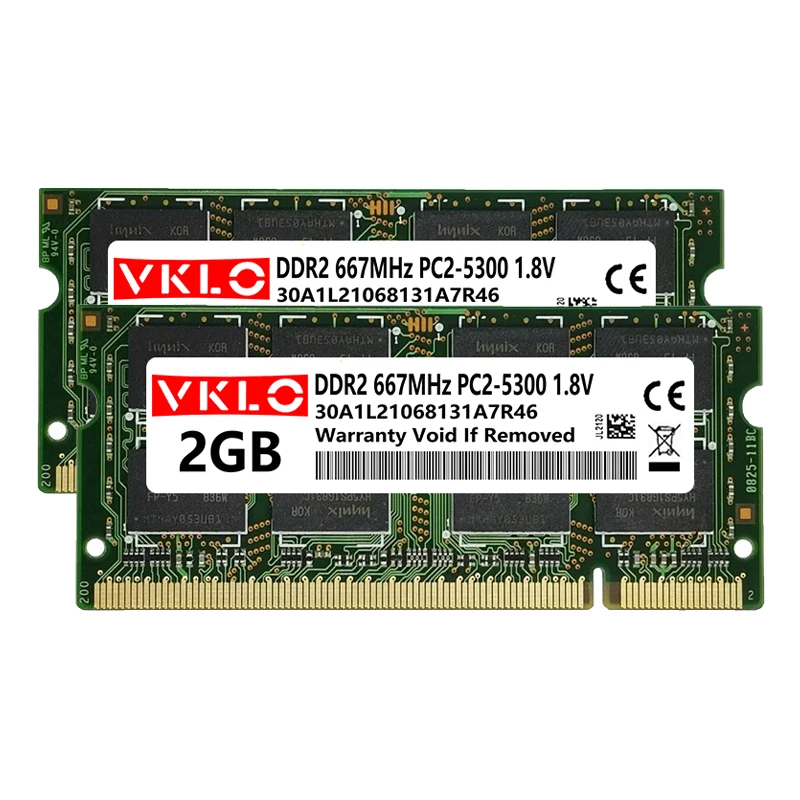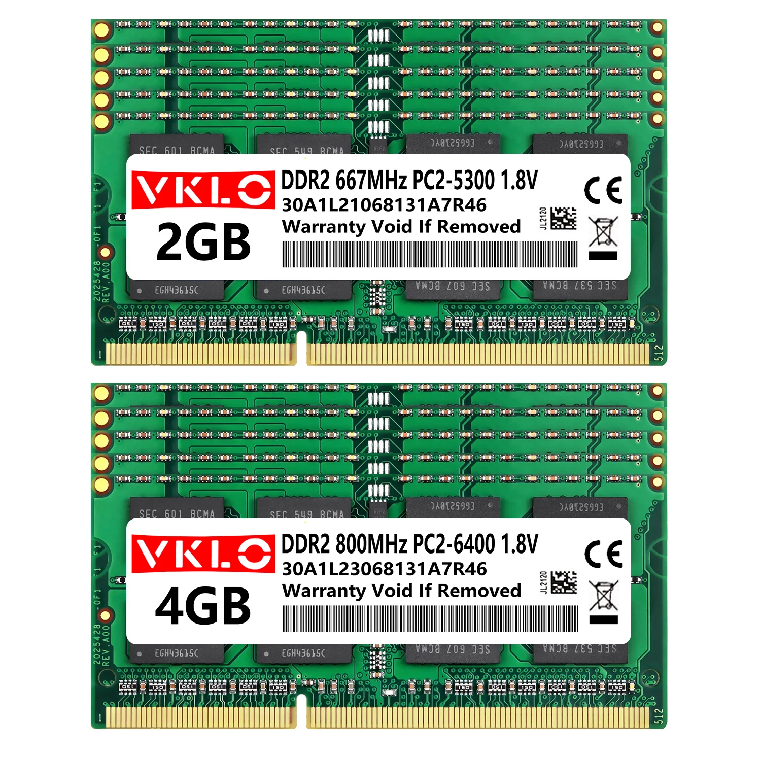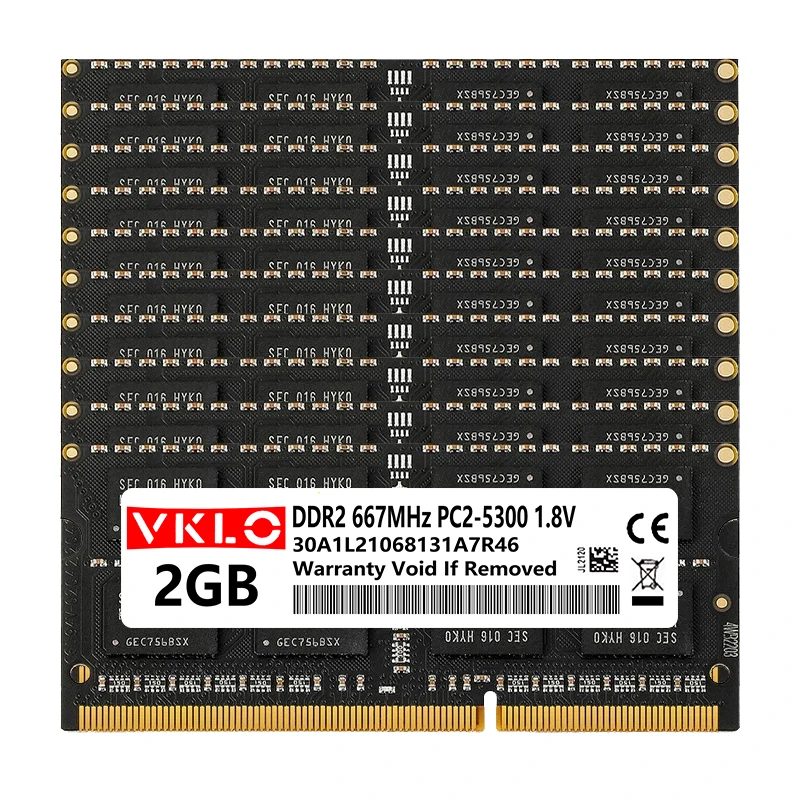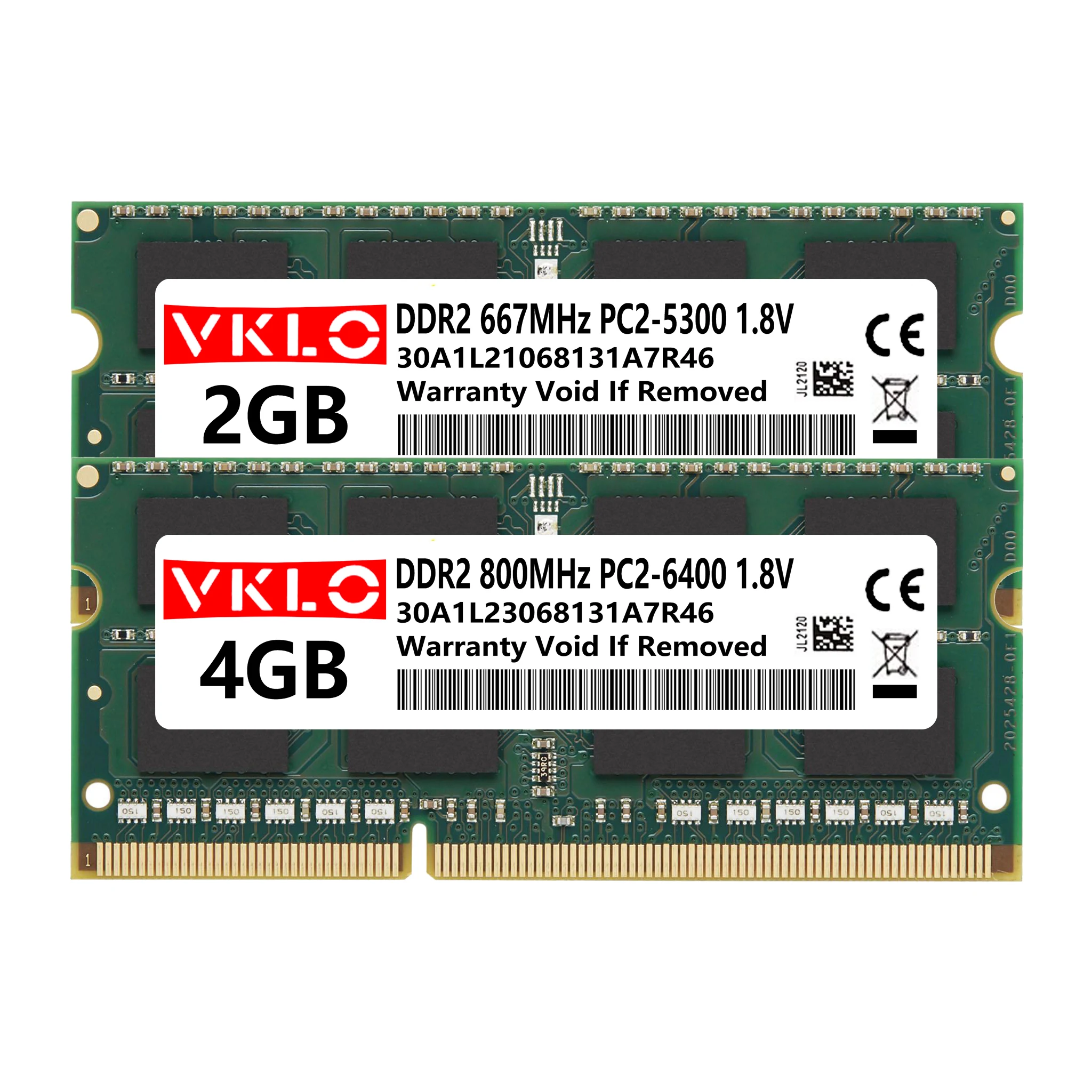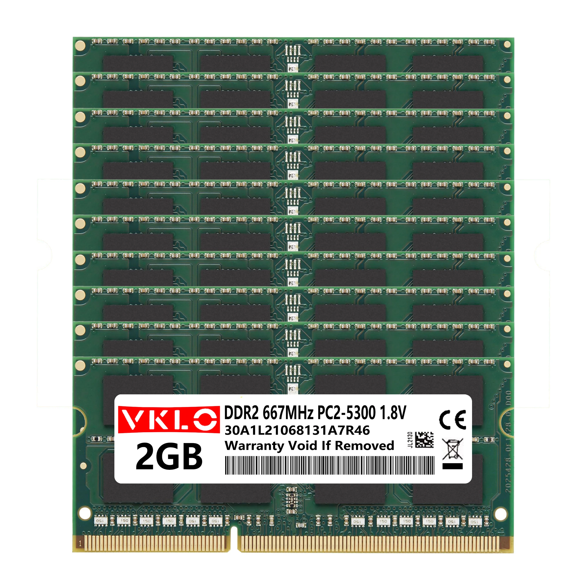 - > Memória RAM DDR2 2GB para Laptop PC2 1.2V 5300 6400 200Pin 533 667 800Mhz 2RX8 16Chips CL6 Memória Sodimm Não-ECC para Notebook
