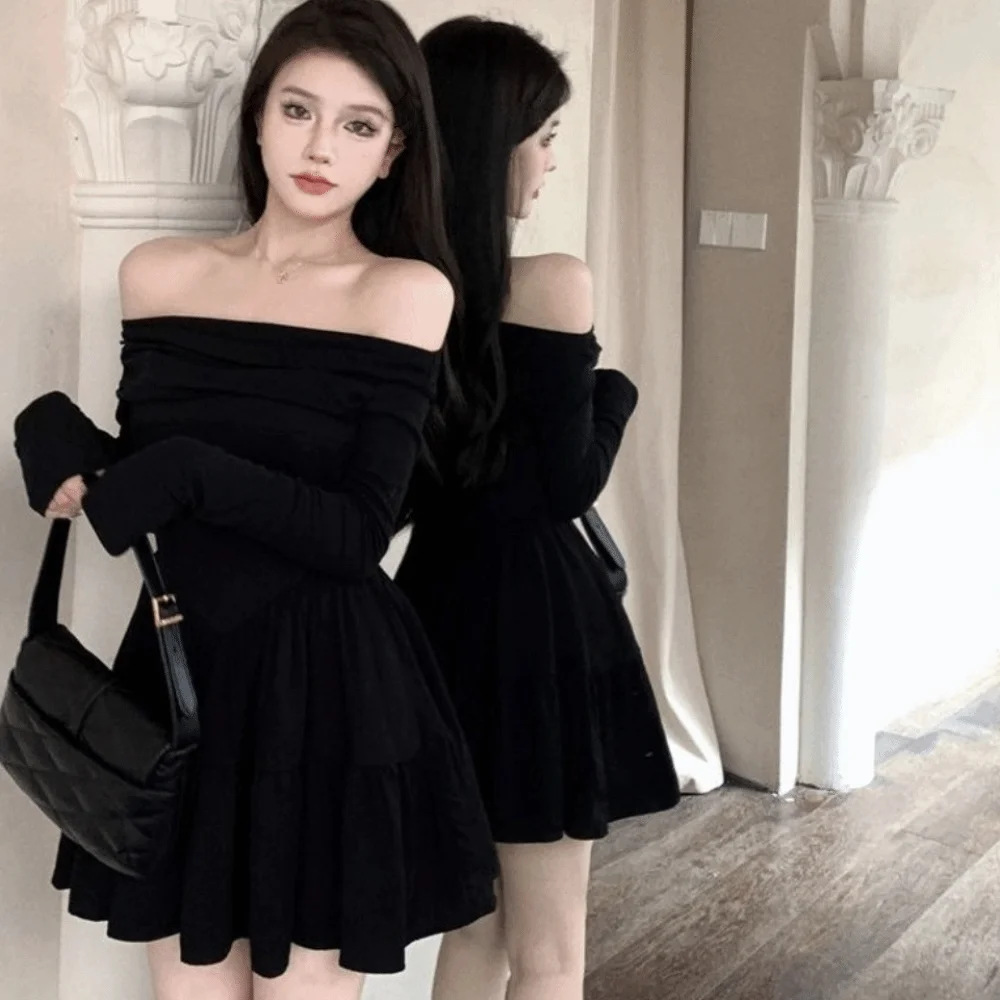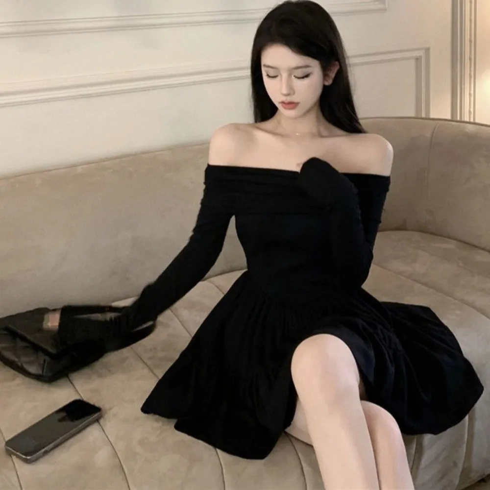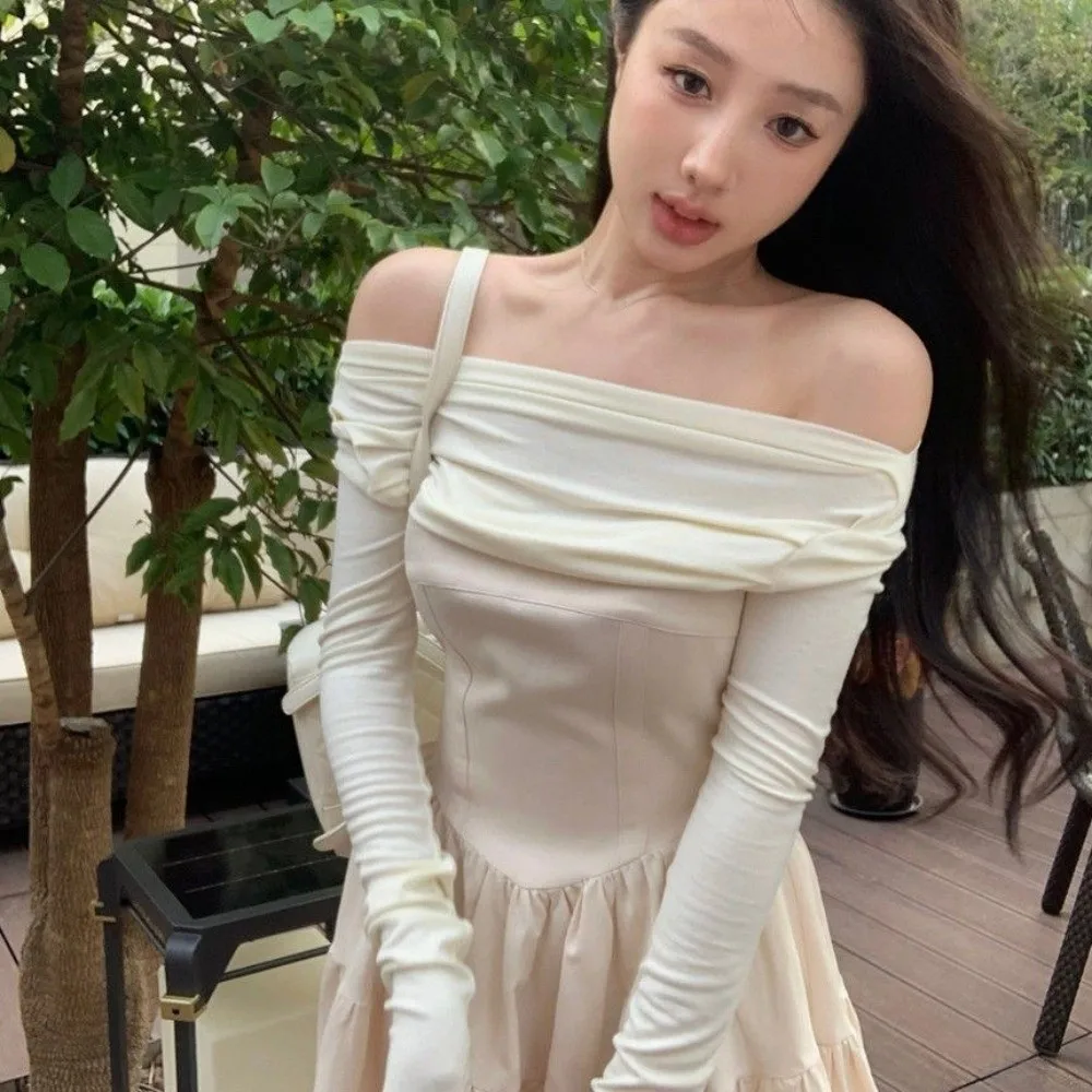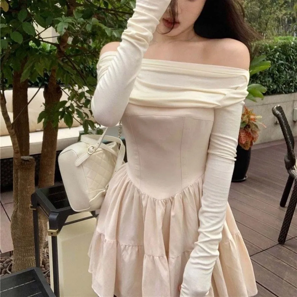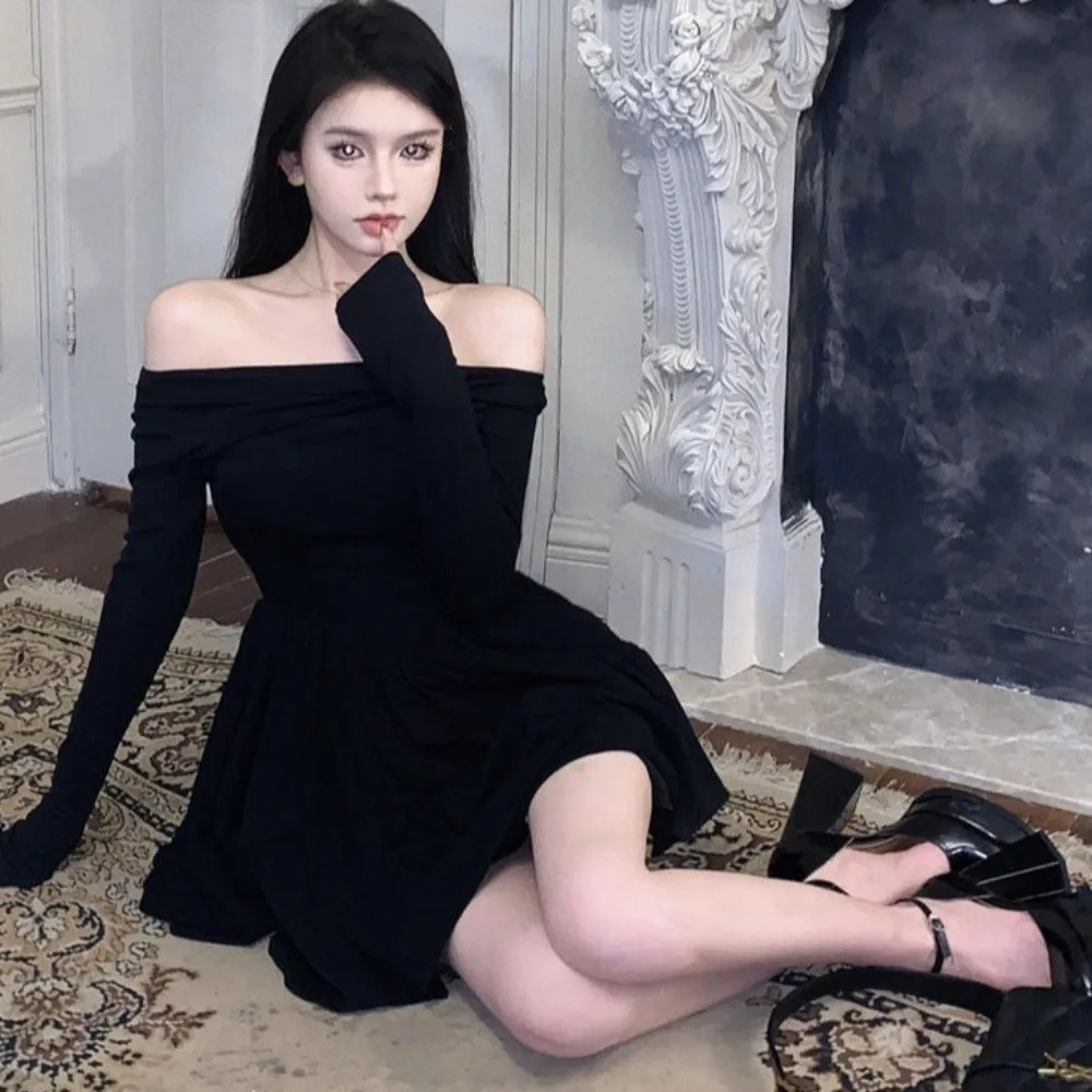 - > Menina picante manga comprida magro saia curta fino ajuste leve um colarinho vestido lazer y2k a linha saia curta viagem