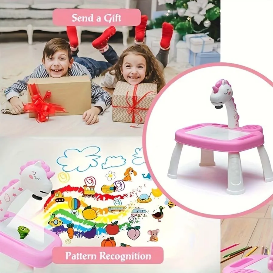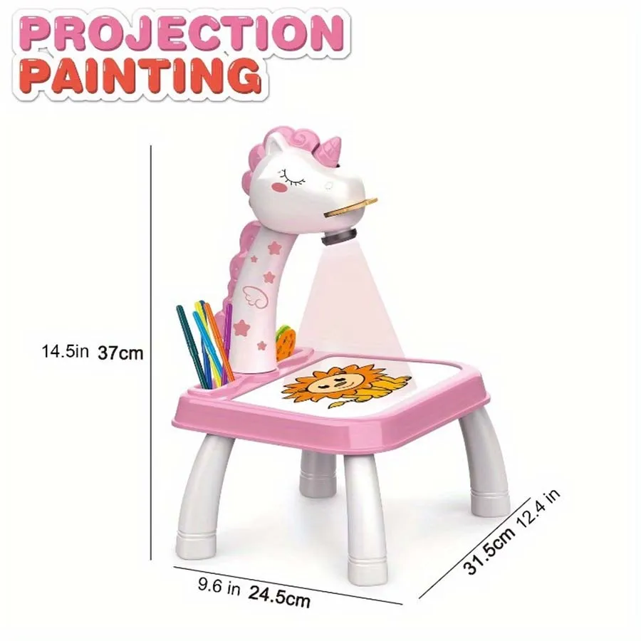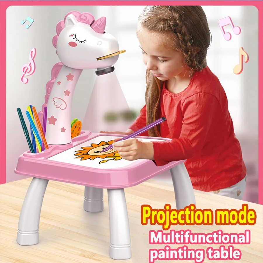 Mesa de pintura de projeção infantil, pônei, pichação de graffiti, elétrica com música, wipeable, pérola bebê