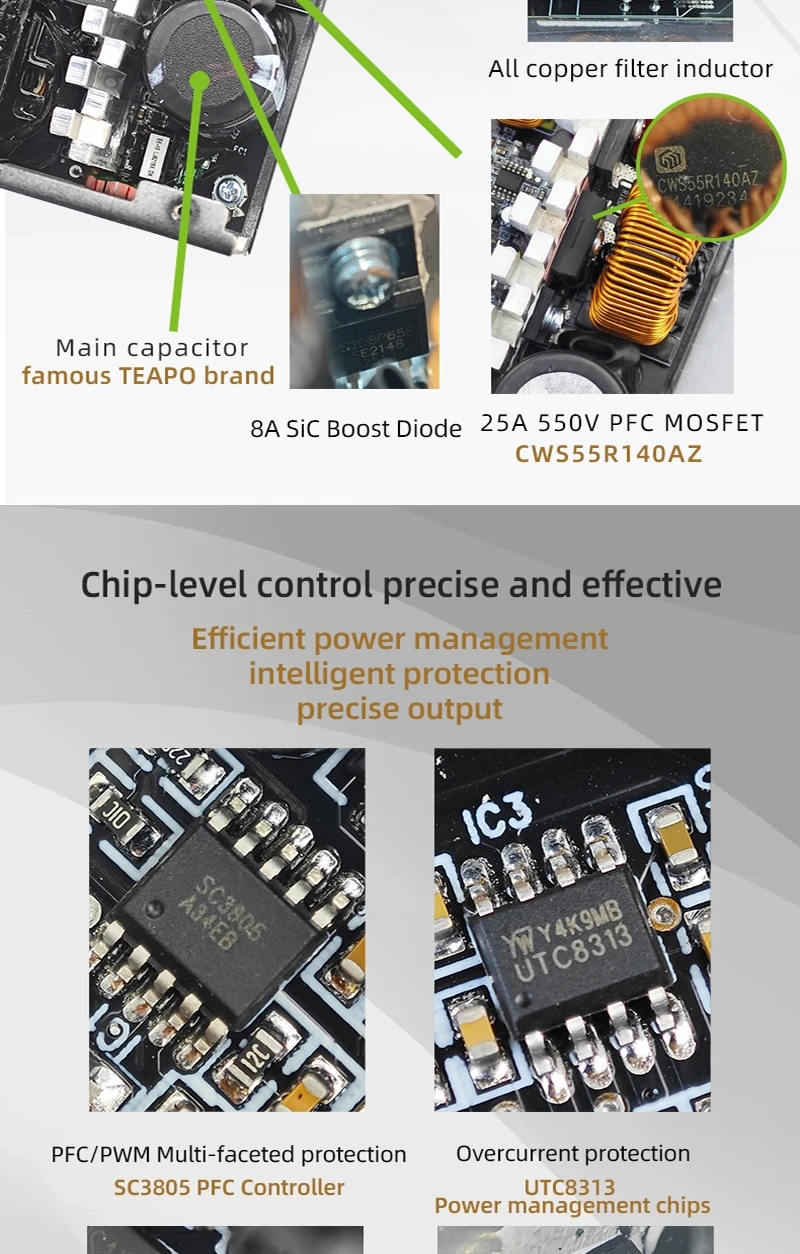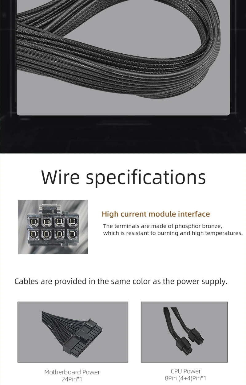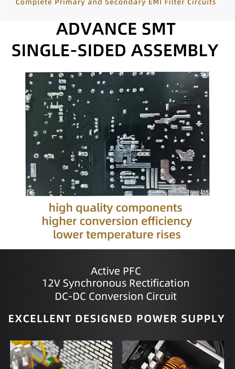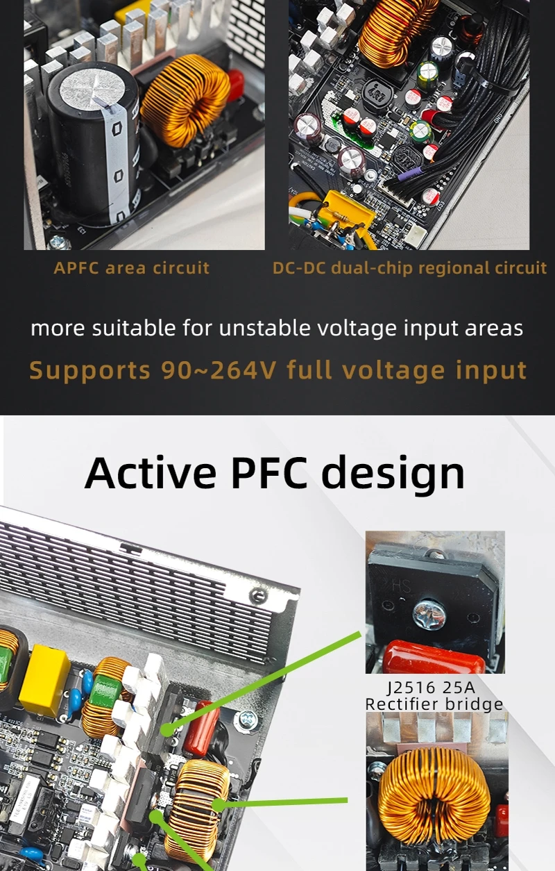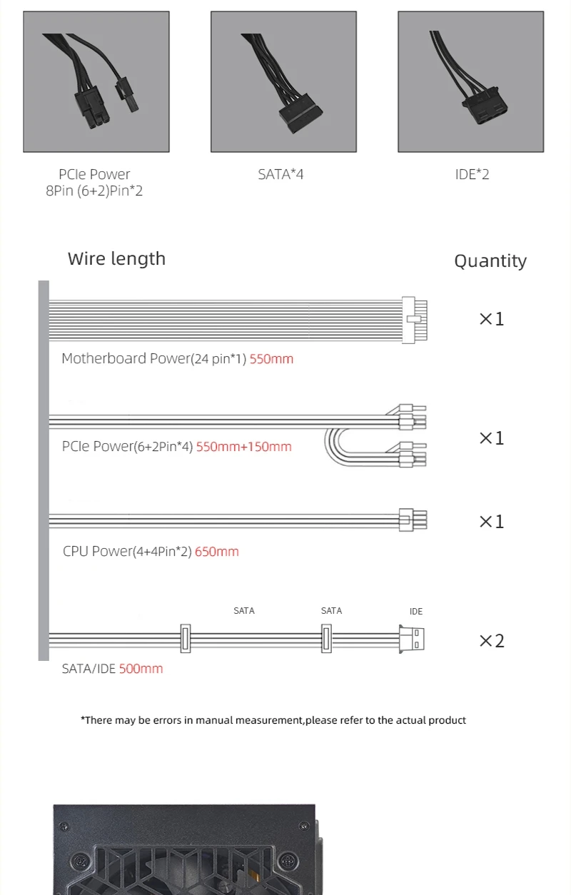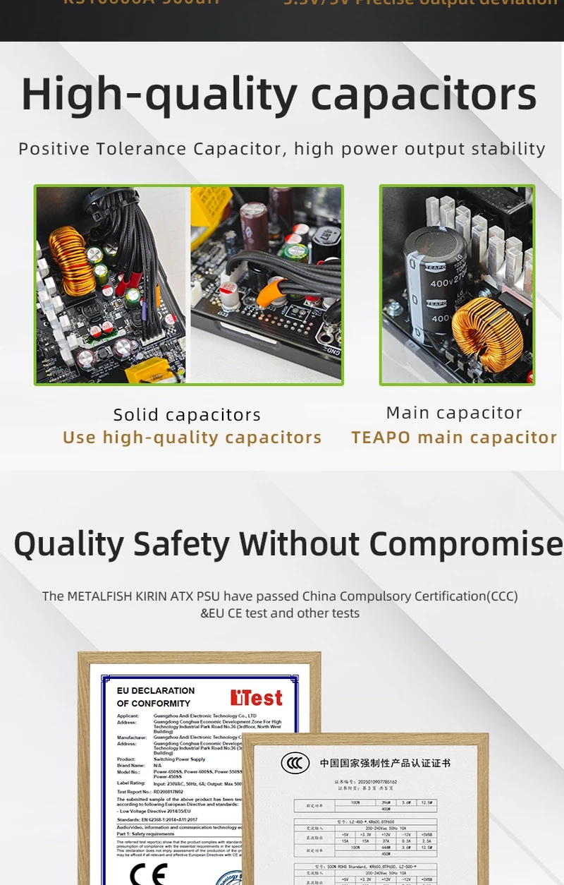 - > METALFISH KIRIN650K Fonte de alimentação de chassi preto ATX-500W 80PLUS PSU para computadores de jogos, docks de placas gráficas (100-240V)
