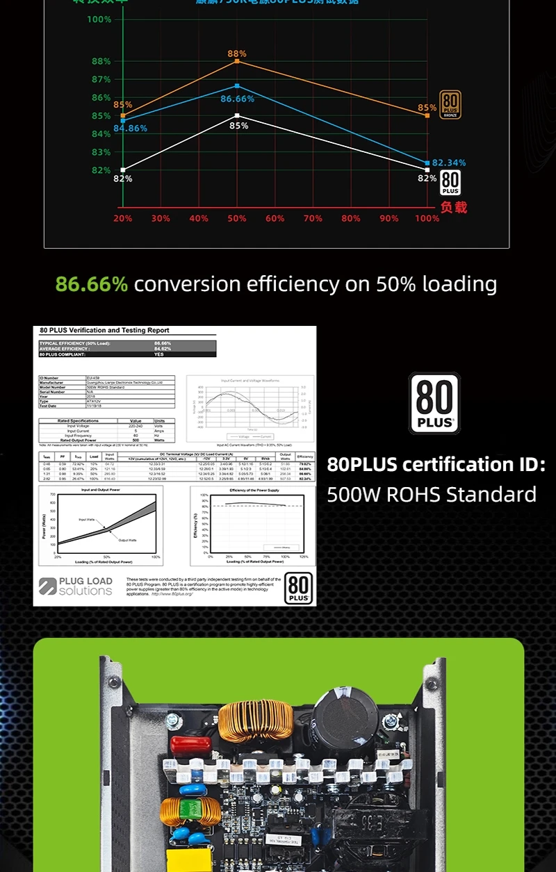 Modelos certificados 80PLUS:Padrão ROHS de 500W