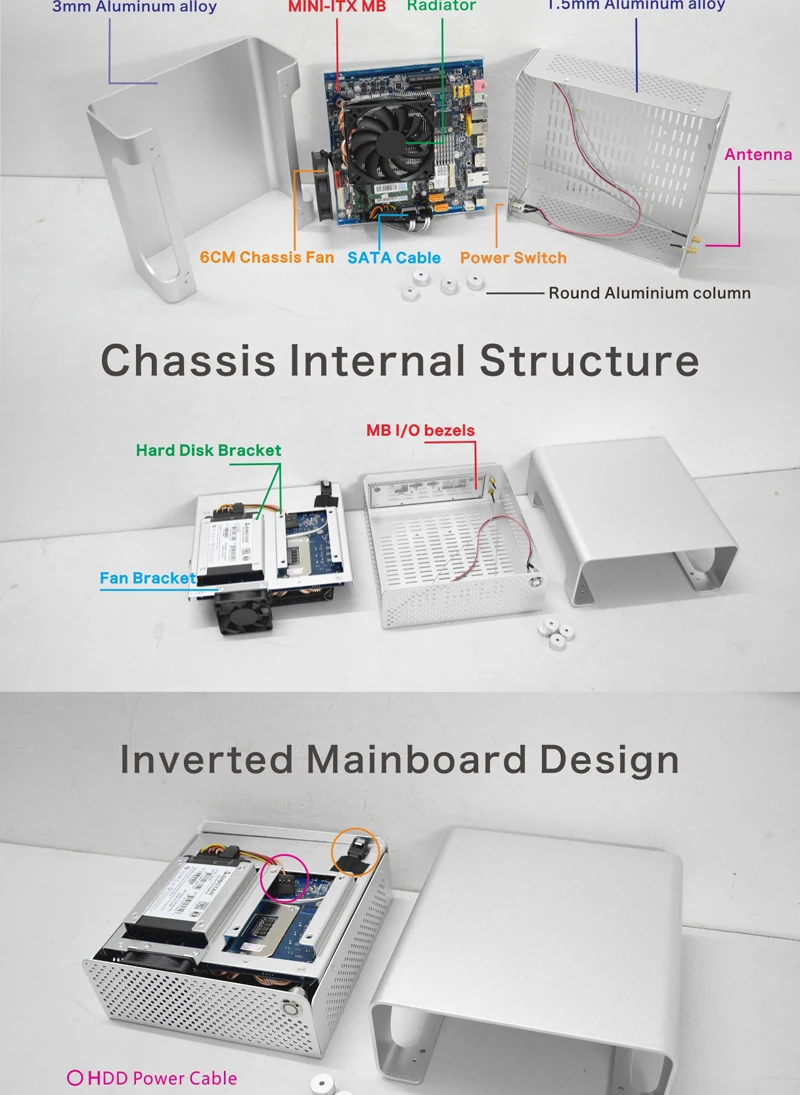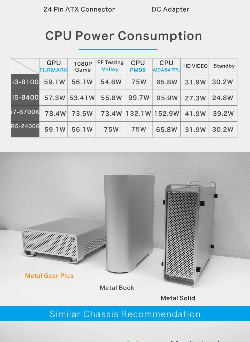 - > METALFISH MetalGear Plus Alumínio Mini HTPC Case Mini ITX Casos Computador Gaming PC Desktop Case Suporte DC ATX PSU