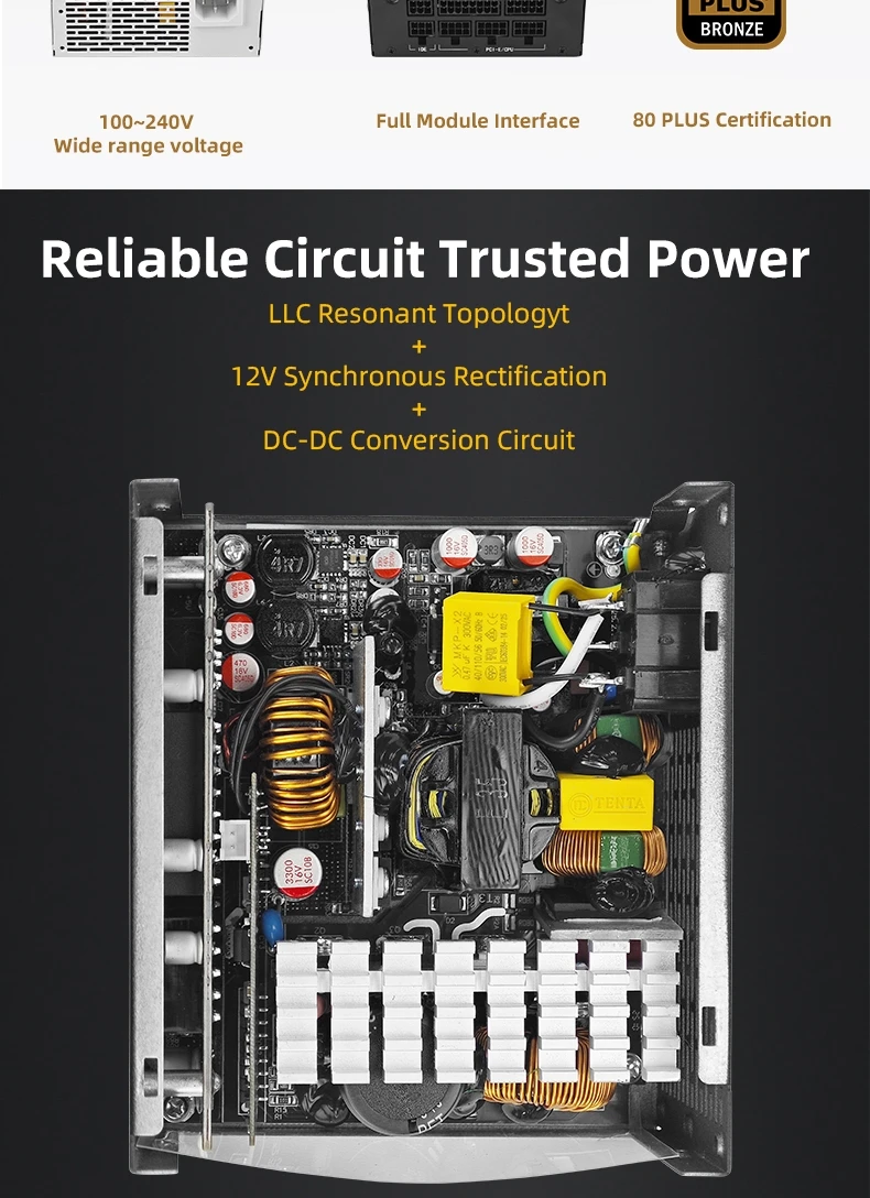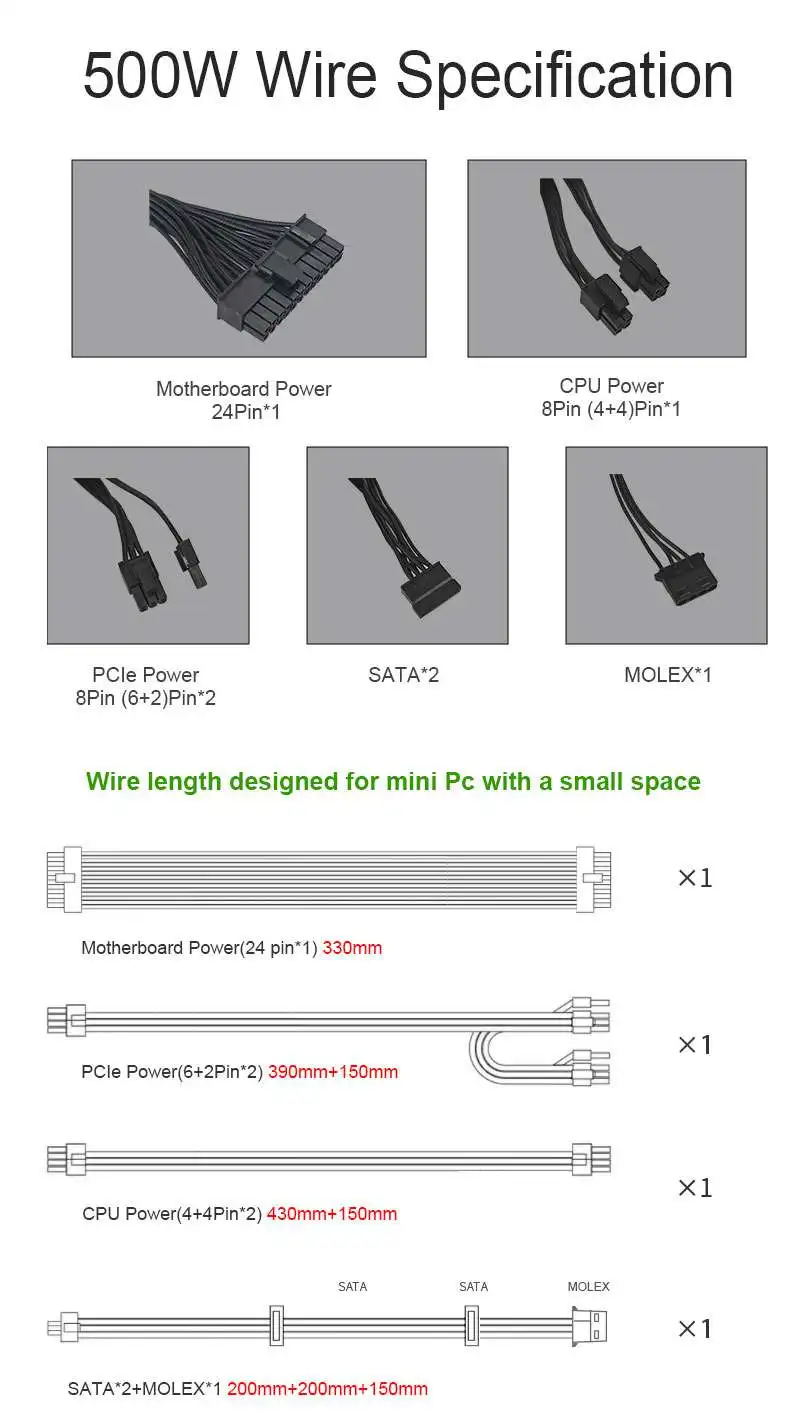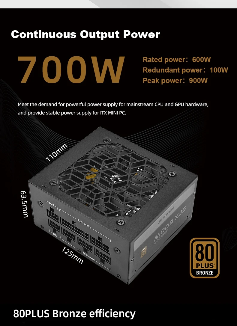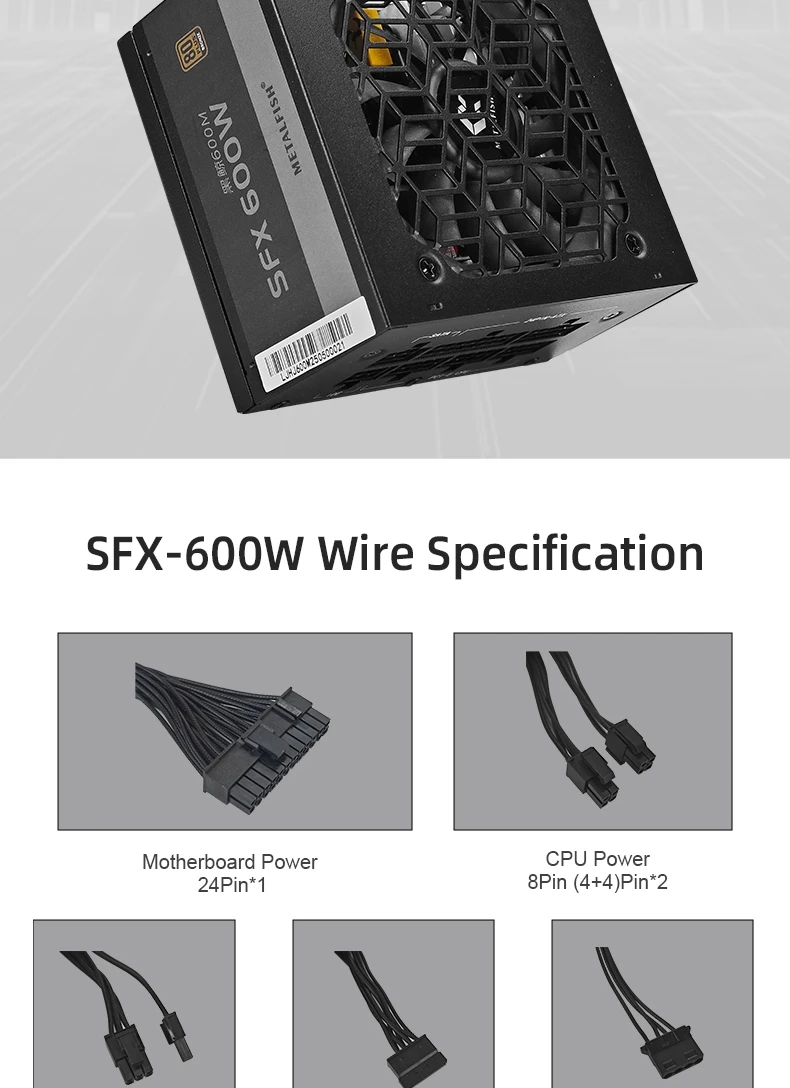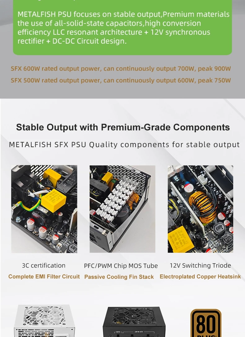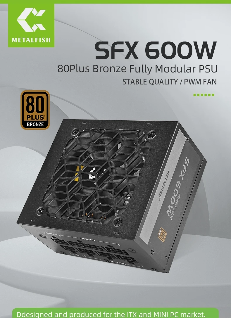 - > METALFISH SFX 80Plus Bronze 500/600W PSU Fonte de alimentação preta totalmente modular para mini chassi ITX pequena caixa de computador entrada 100/240V