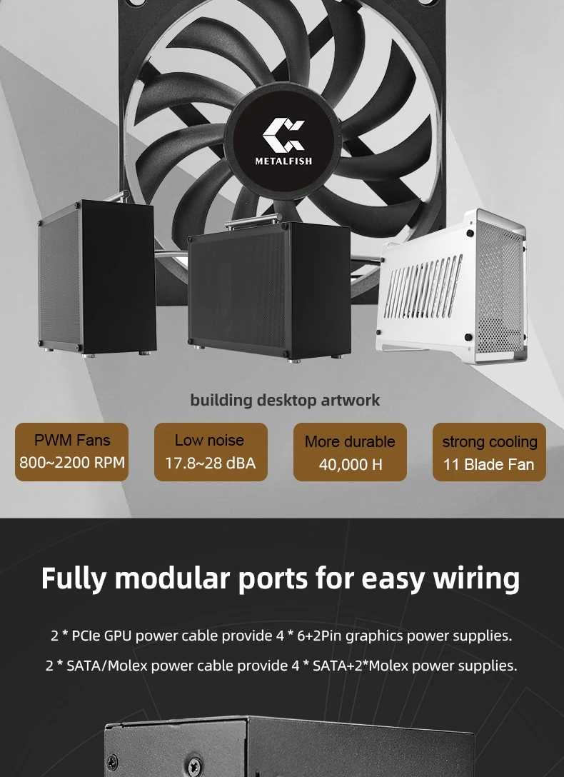 METALFISH SFX 80Plus Bronze 500/600W PSU Fonte de alimentação preta totalmente modular para mini chassi ITX pequena caixa de computador entrada 100/240V