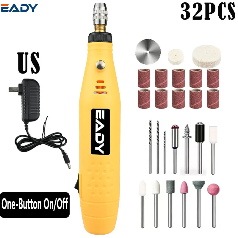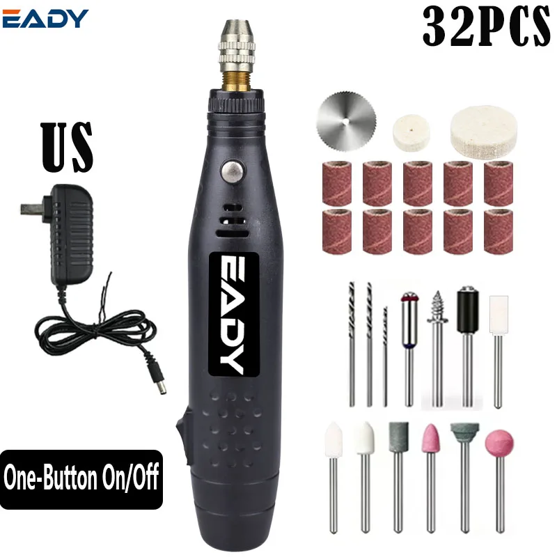 - > Mini Furadeira 12V, Caneta de Gravação EU/US, Polimento e Corte 16000RPM, Interruptor de Um Botão, Presente de Aniversário para Hobbystas