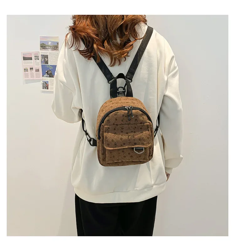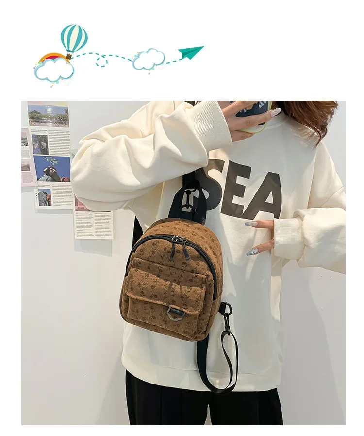 Mini mochila de viagem de pelúcia grande capacidade estudante moda simples personalidade viagem pequena mochila zíper abertura do telefone móvel poc