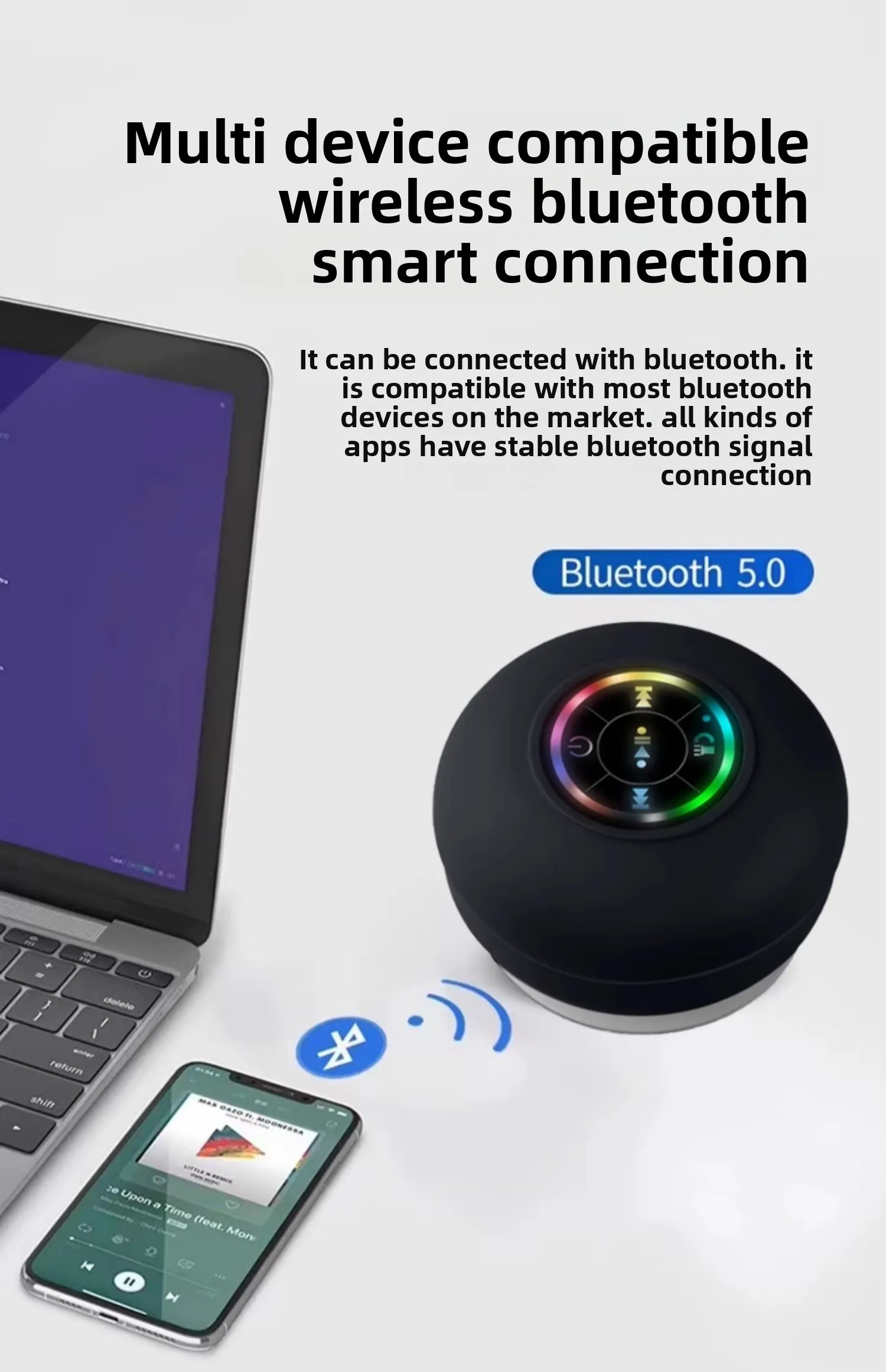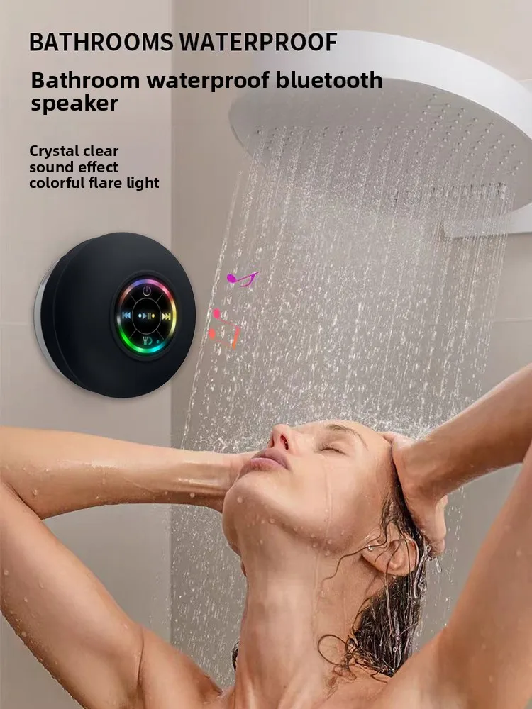 Mini portátil mulclil bluetooth áudio ipx4 à prova dwaterproof água luzes led banheiro ao ar livre grande ventosa pode adsorver alto-falante de parede