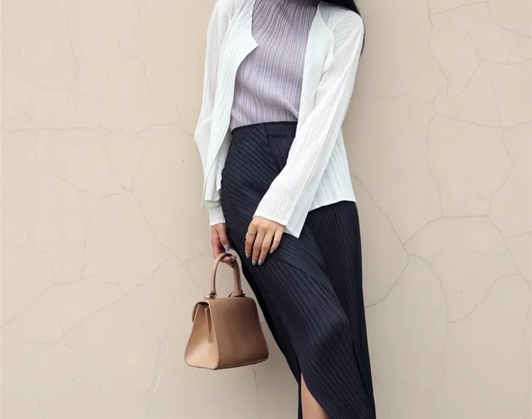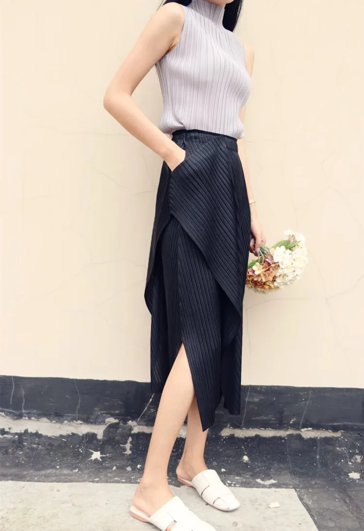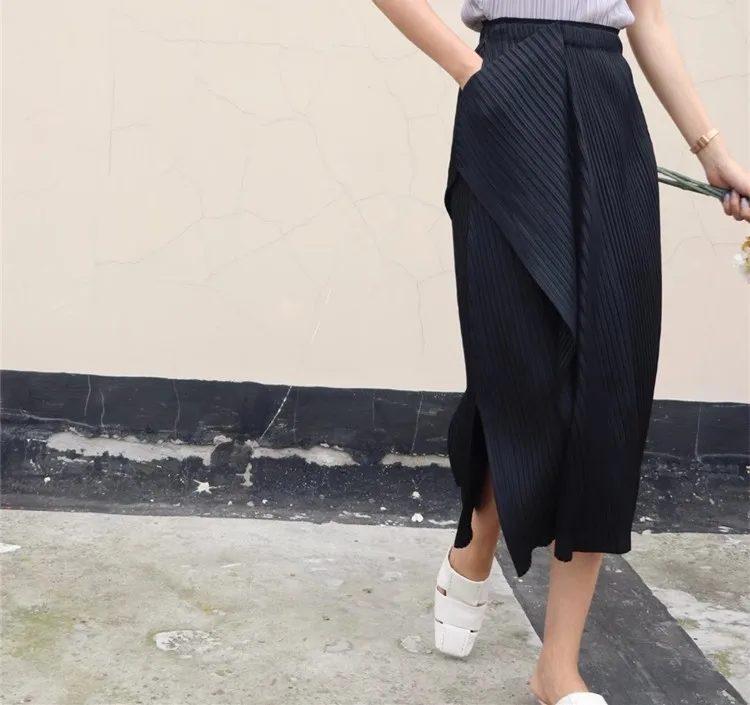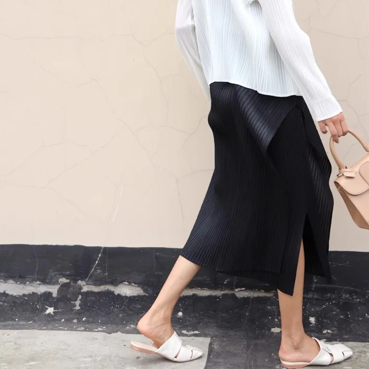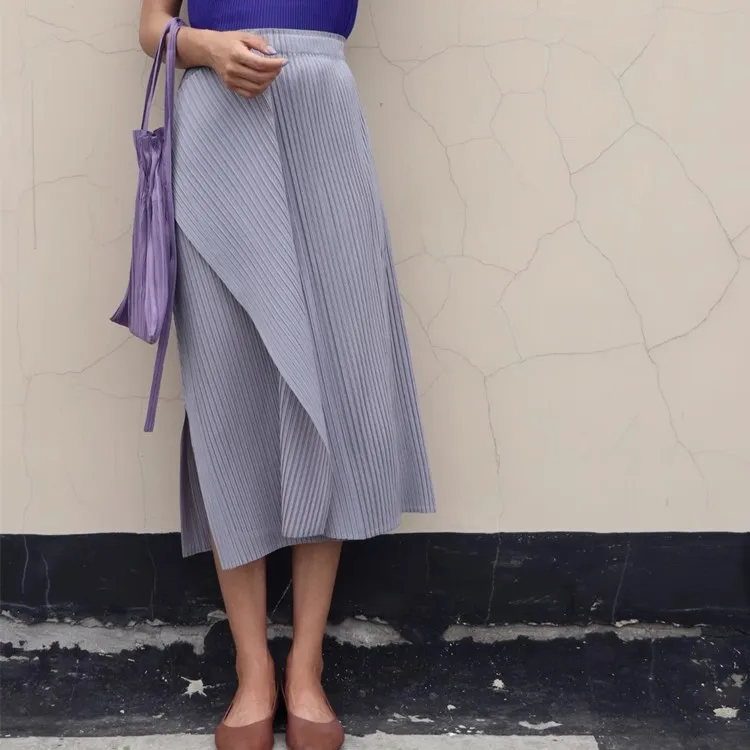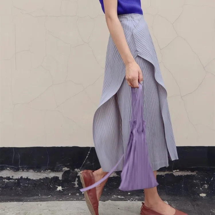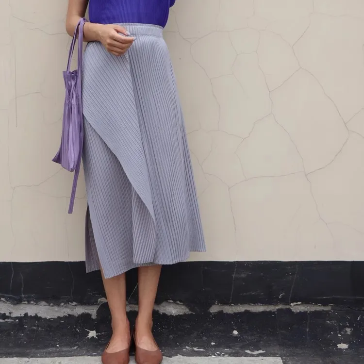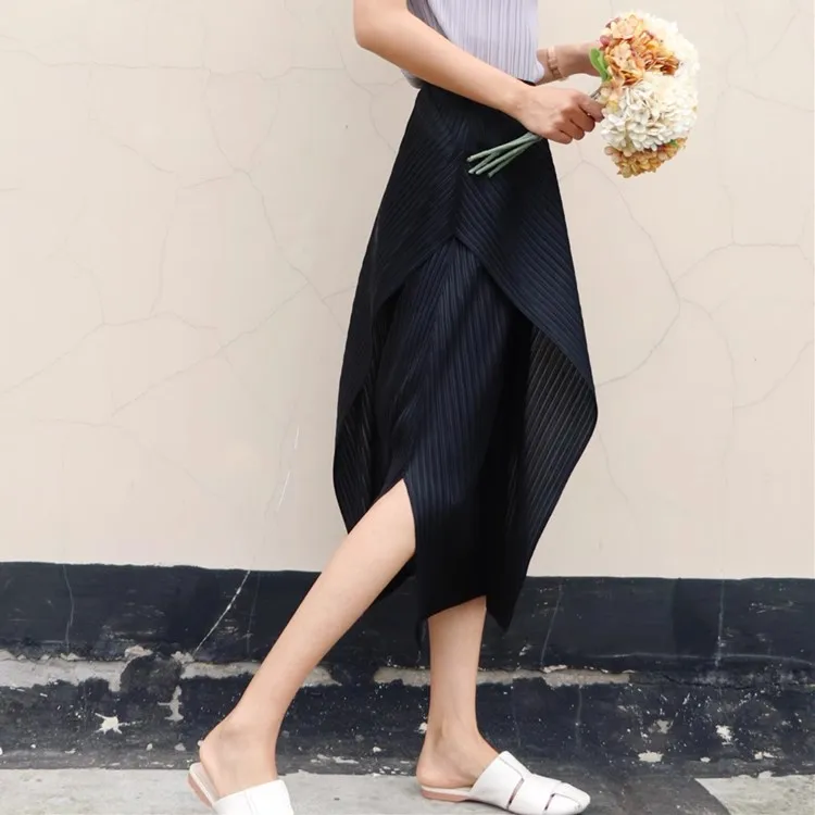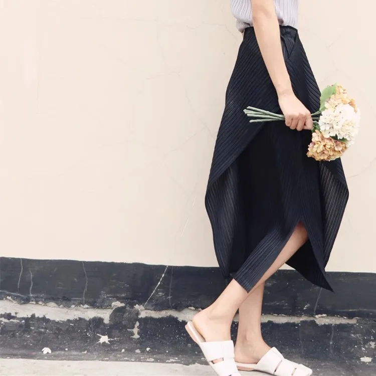 Miyake saia plissada irregular feminina 2025 primavera verão moda coreana causal saias retas plissadas