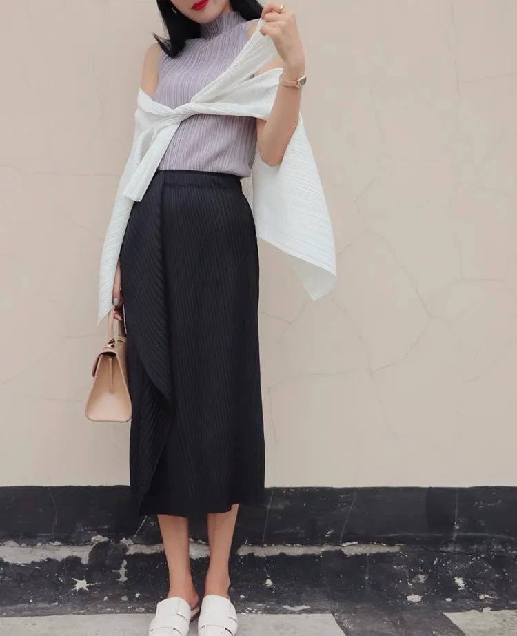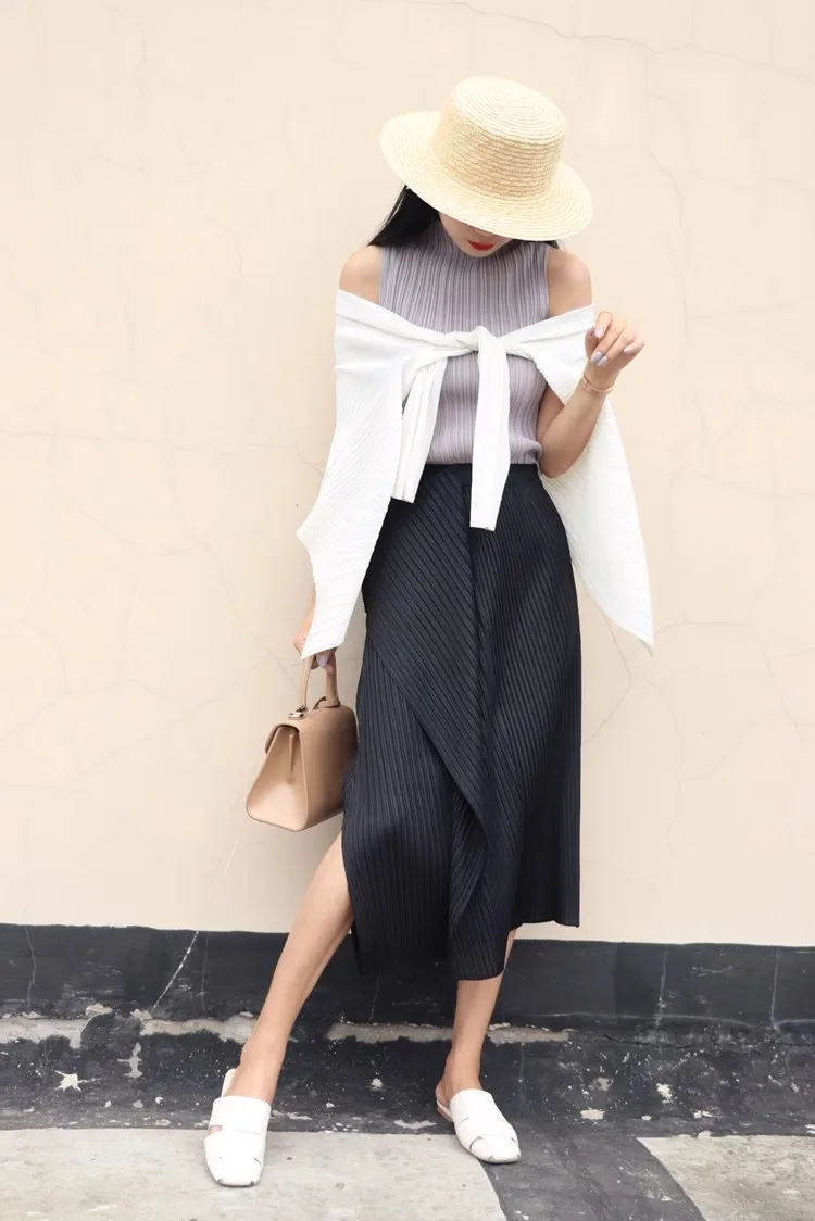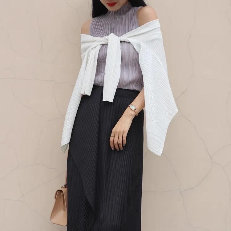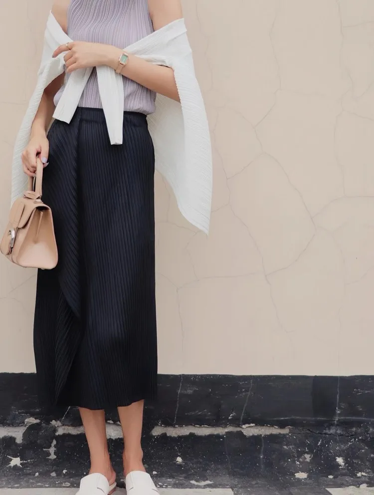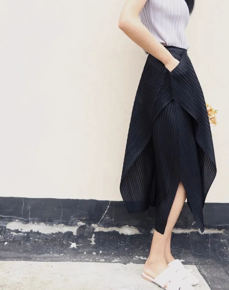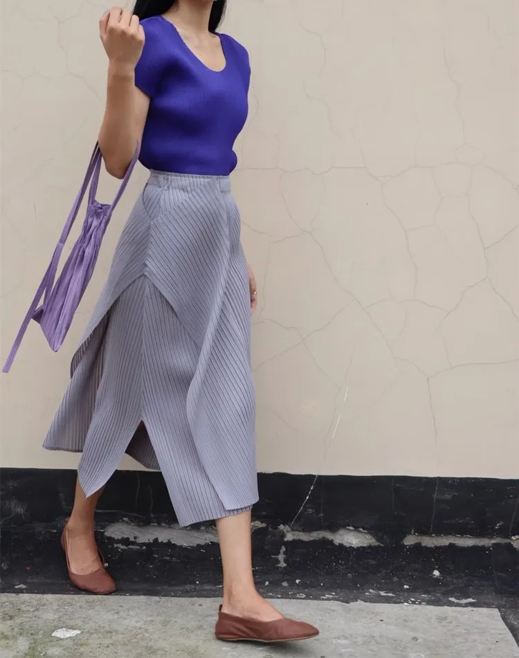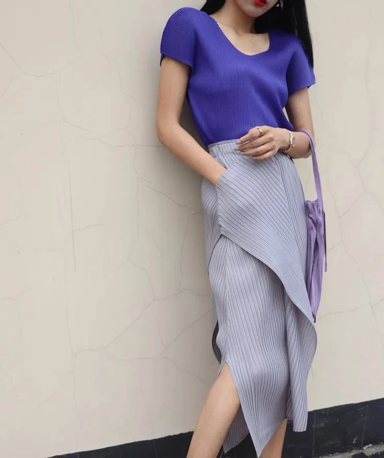 Miyake saia plissada irregular feminina 2025 primavera verão moda coreana causal saias retas plissadas