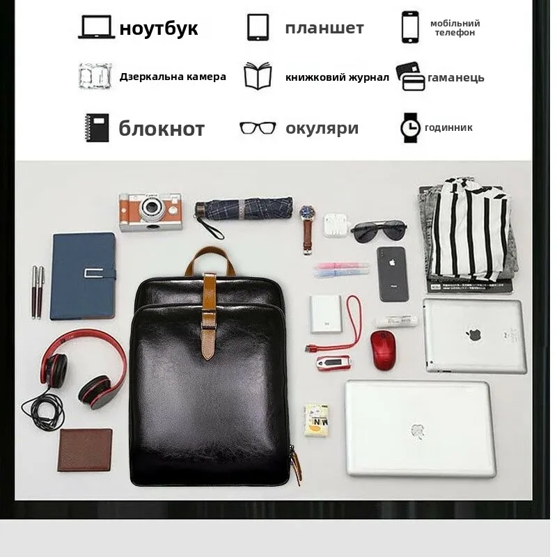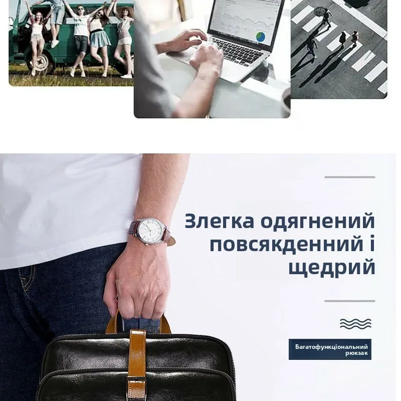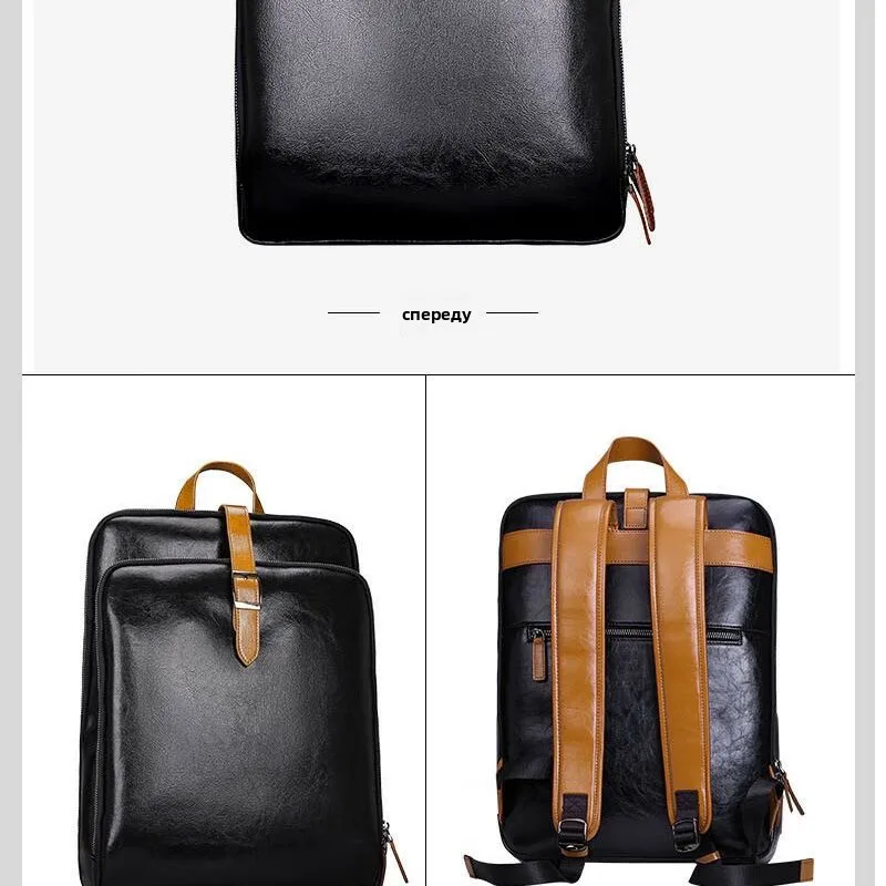- > Mochila de Couro Casual para Negócios e Viagens, Bolsa para Laptop Masculina, Mochila Estudantil, Estilo Artístico Retrô, Alç...