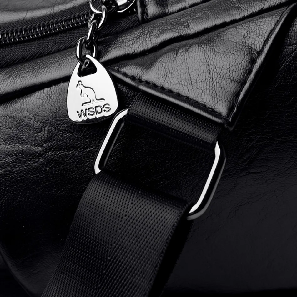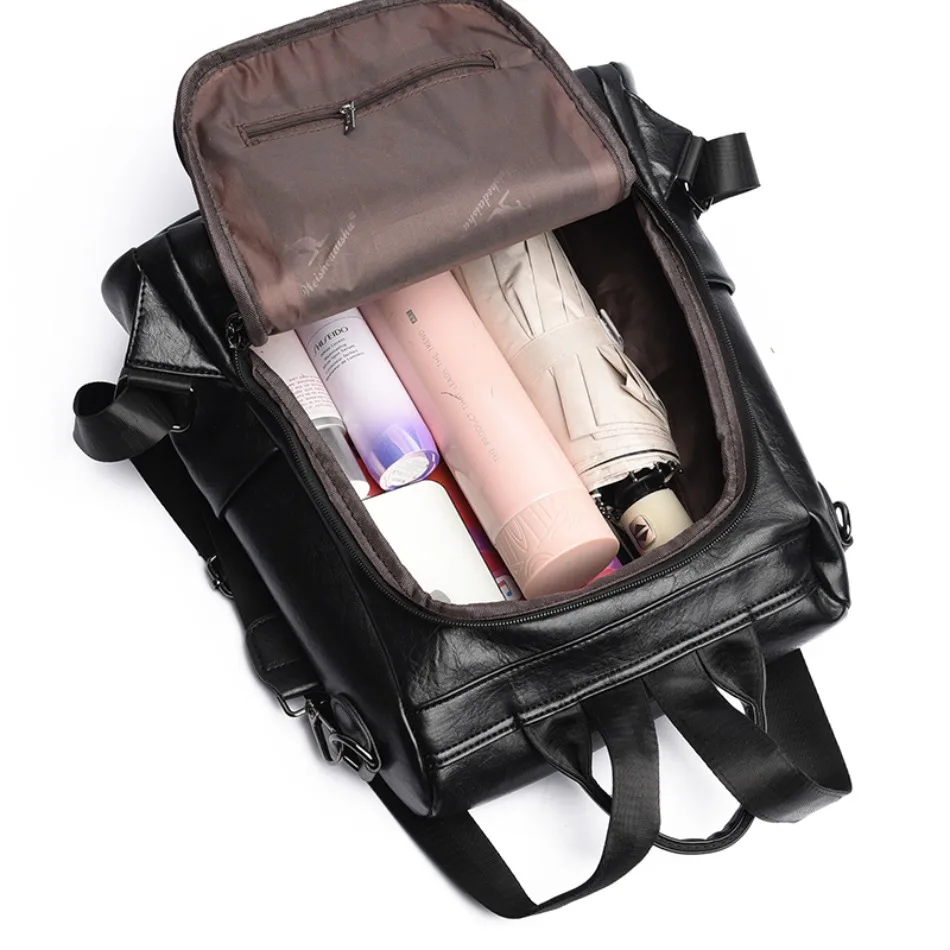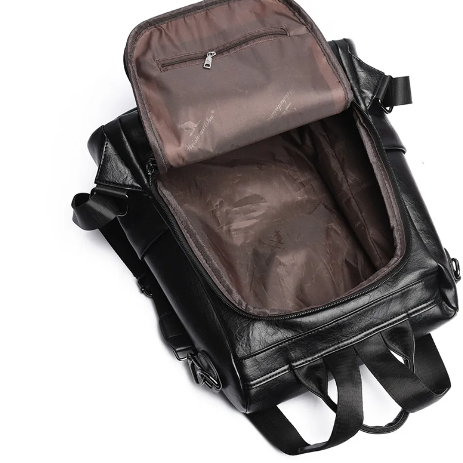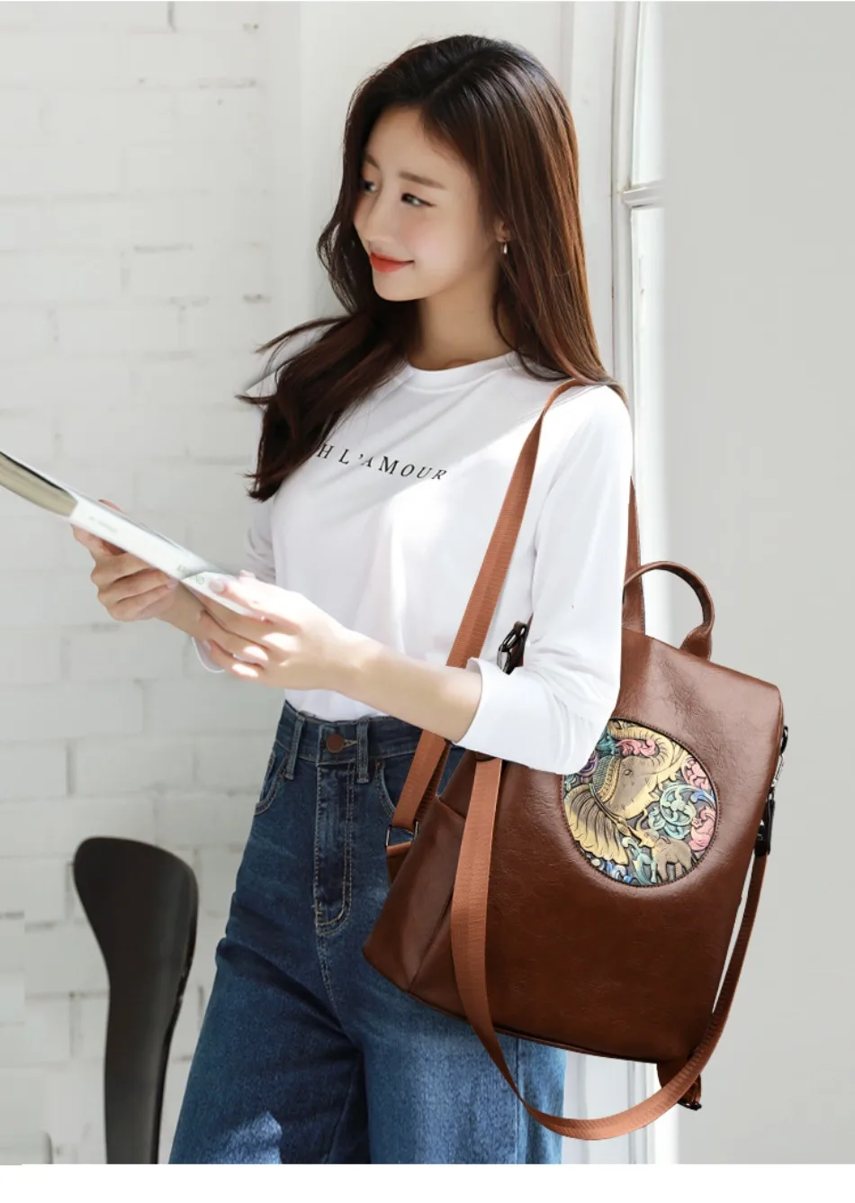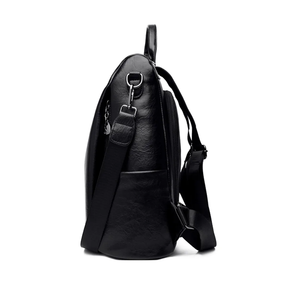 Mochila de Couro Texturizado com Estampa de Elefante e Cervo 3 em 1 Antifurto com Bolsos Laterais com Zíper