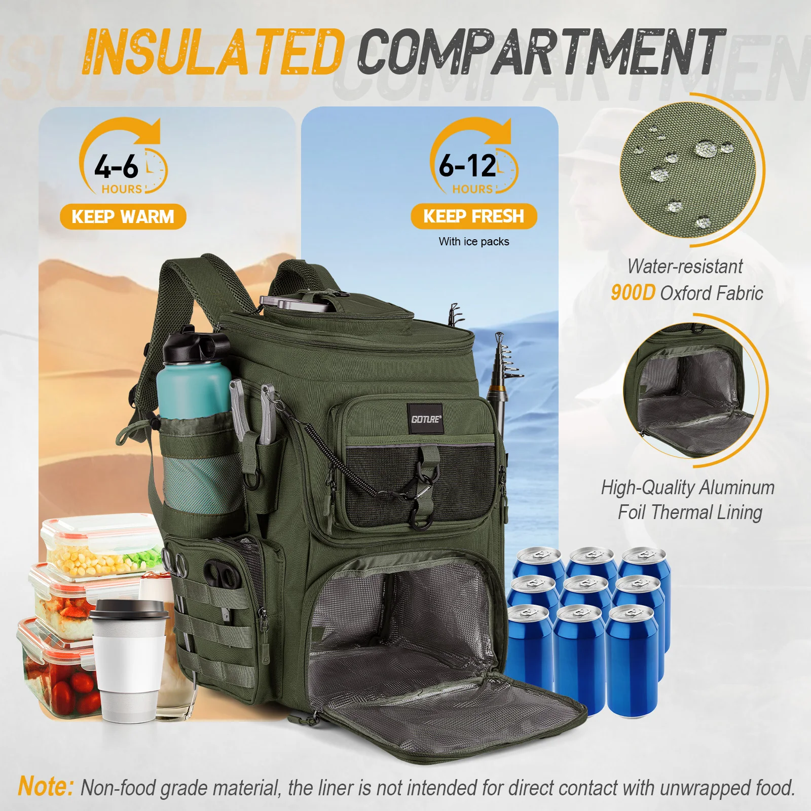 Chega de equipamentos encharcados!O compartimento refrigerador separado na seção inferior e o bolso lateral são equipados com isolamento selado a quente de alta qualidade que mantém suas bebidas quentes ou frias e sua isca fresca por 4 a 6 horas (com bolsas de gelo por até 12 horas).O design separado do compartimento úmido e seco evita que a água derretida entre no compartimento principal para equipamento de pesca.