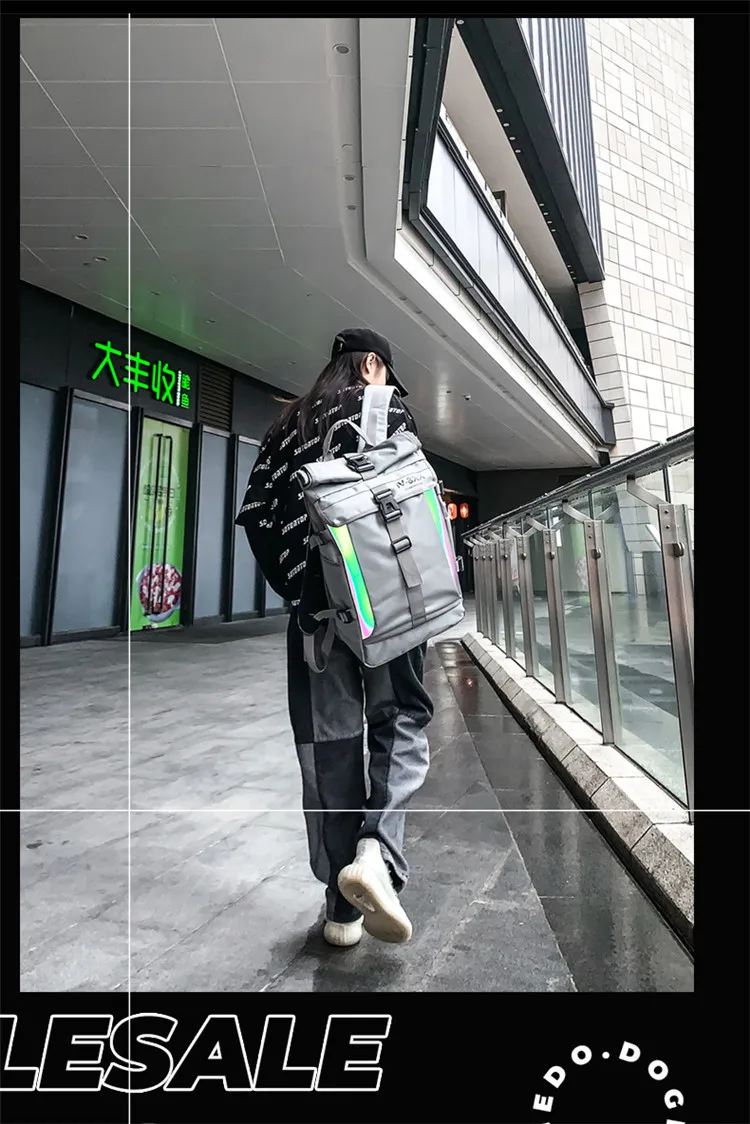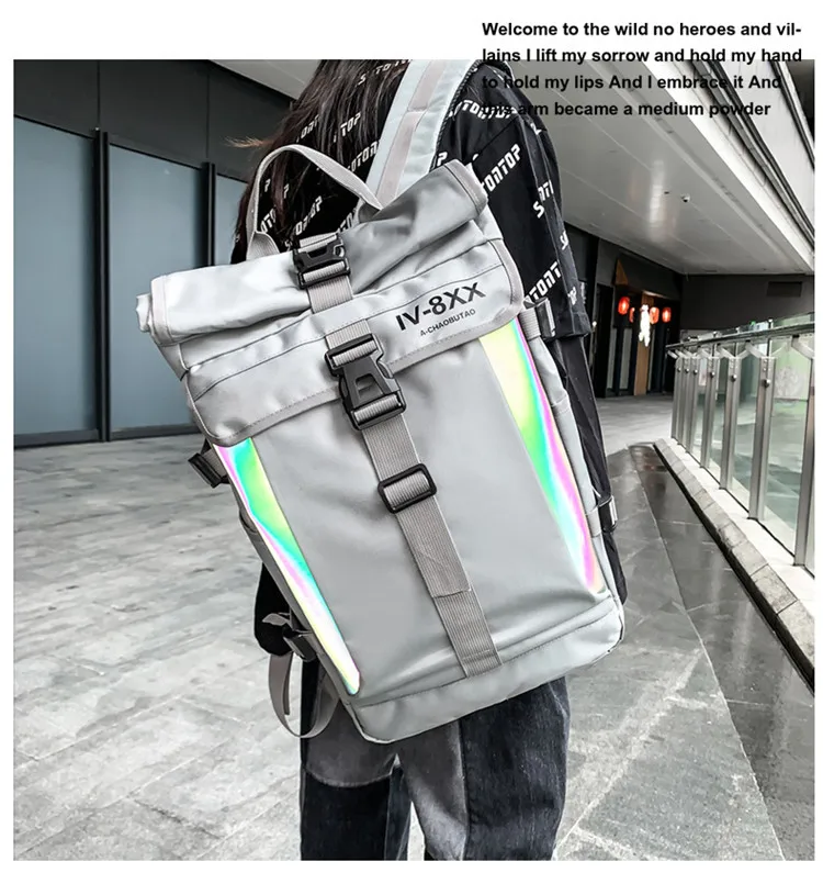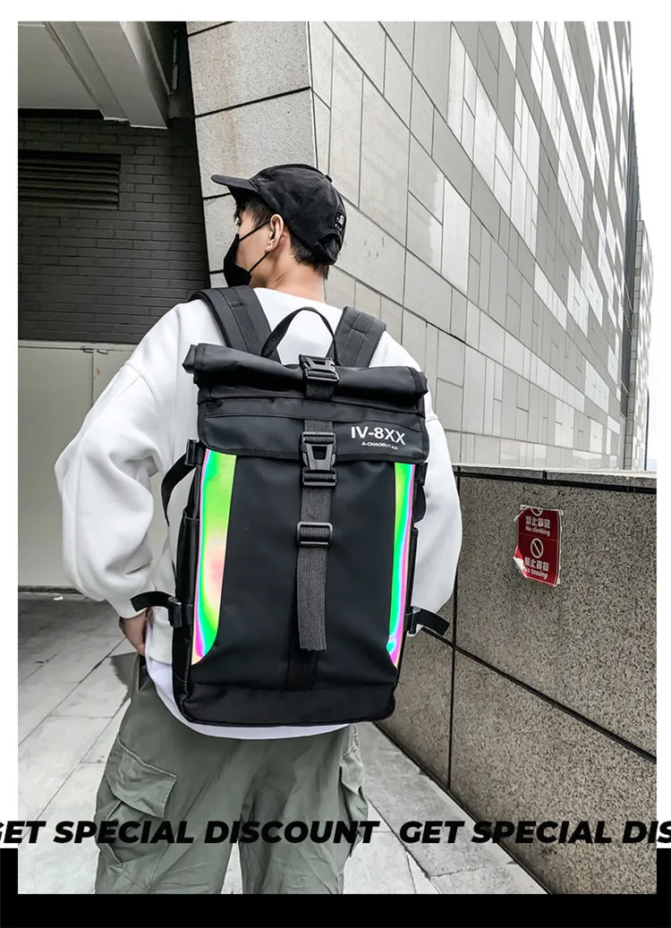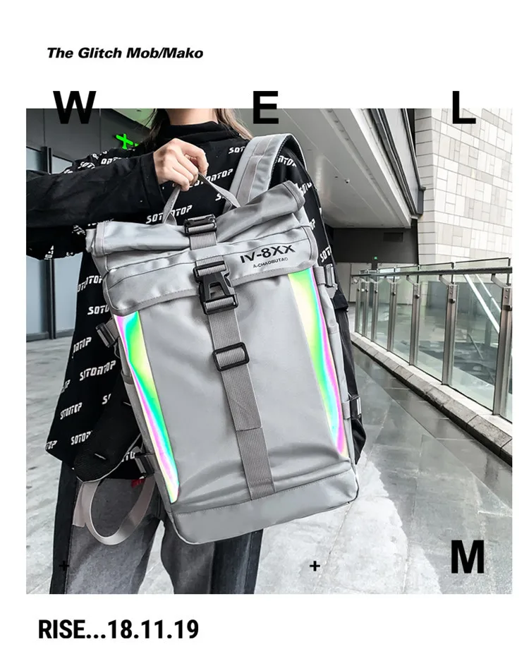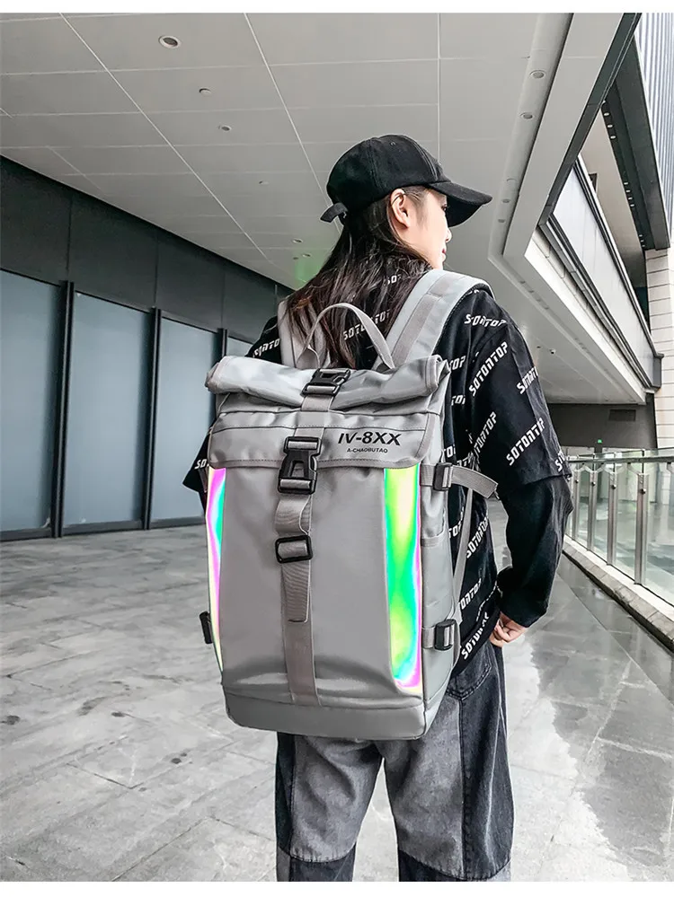 Mochila escolar de grande capacidade para meninos e meninas, techwear, hip hop, ao ar livre, casual, esporte, bolsa de viagem, colorida, reflexiva, 2022