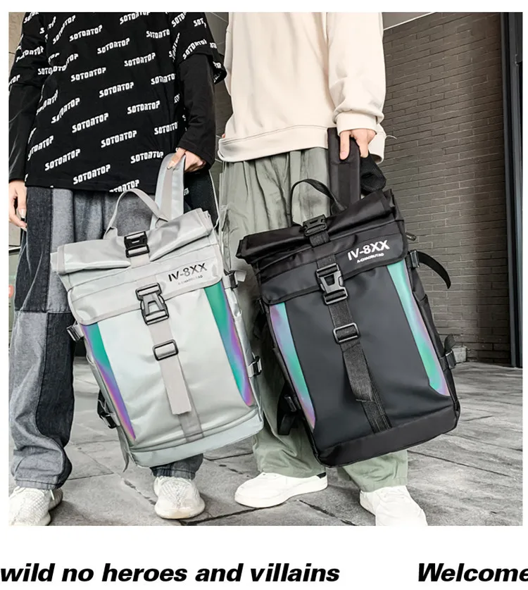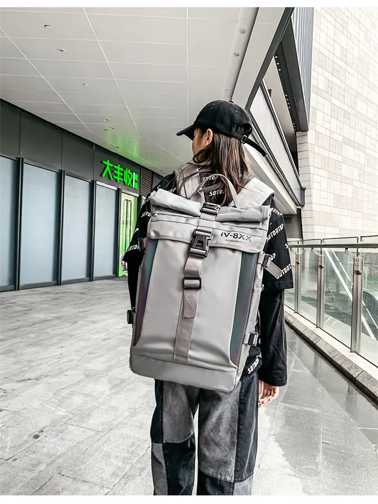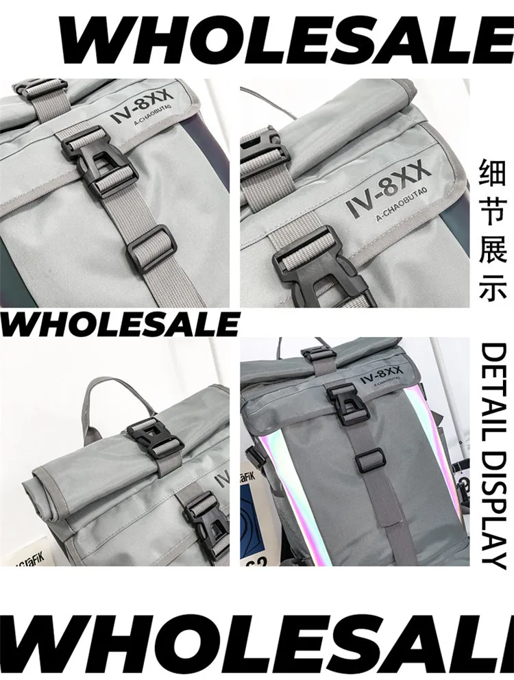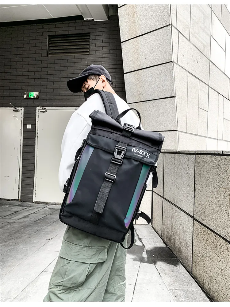 Mochila escolar de grande capacidade para meninos e meninas, techwear, hip hop, ao ar livre, casual, esporte, bolsa de viagem, colorida, reflexiva, 2022