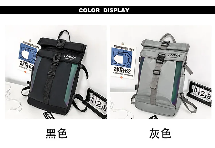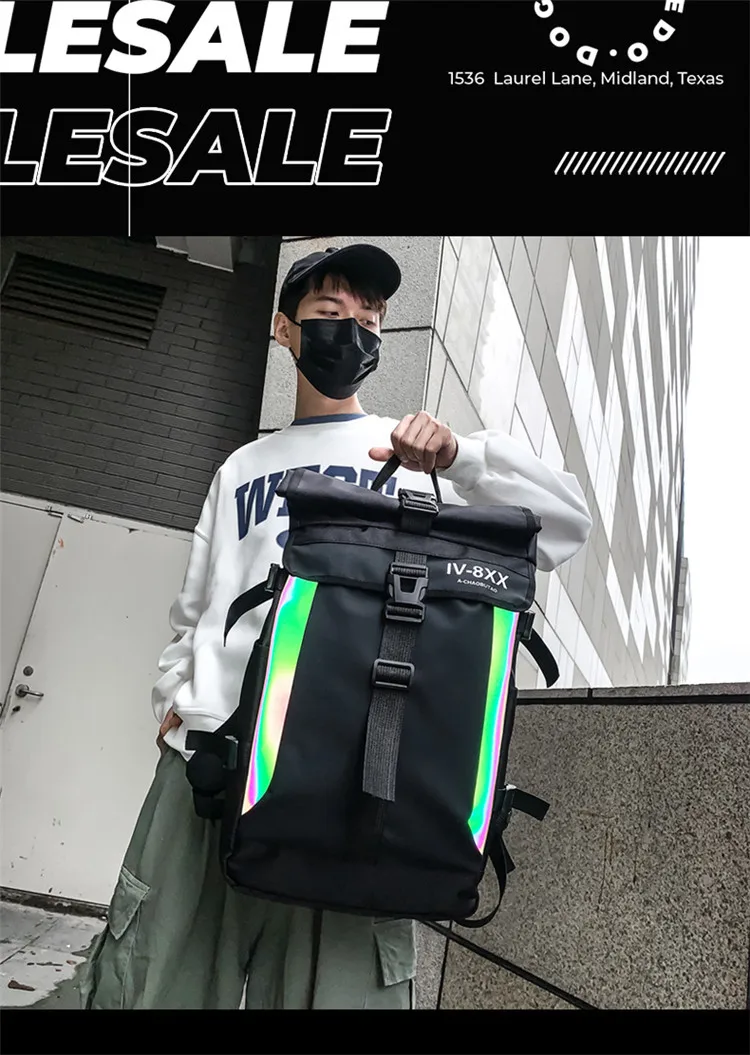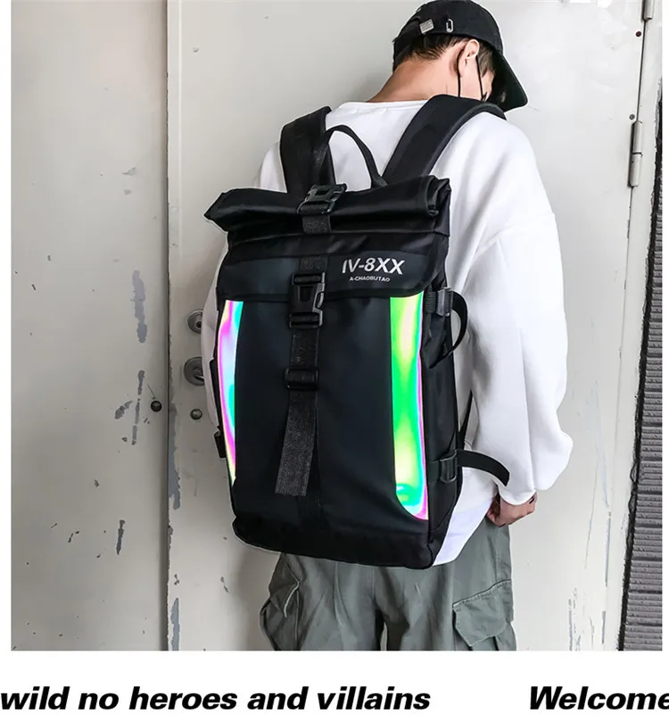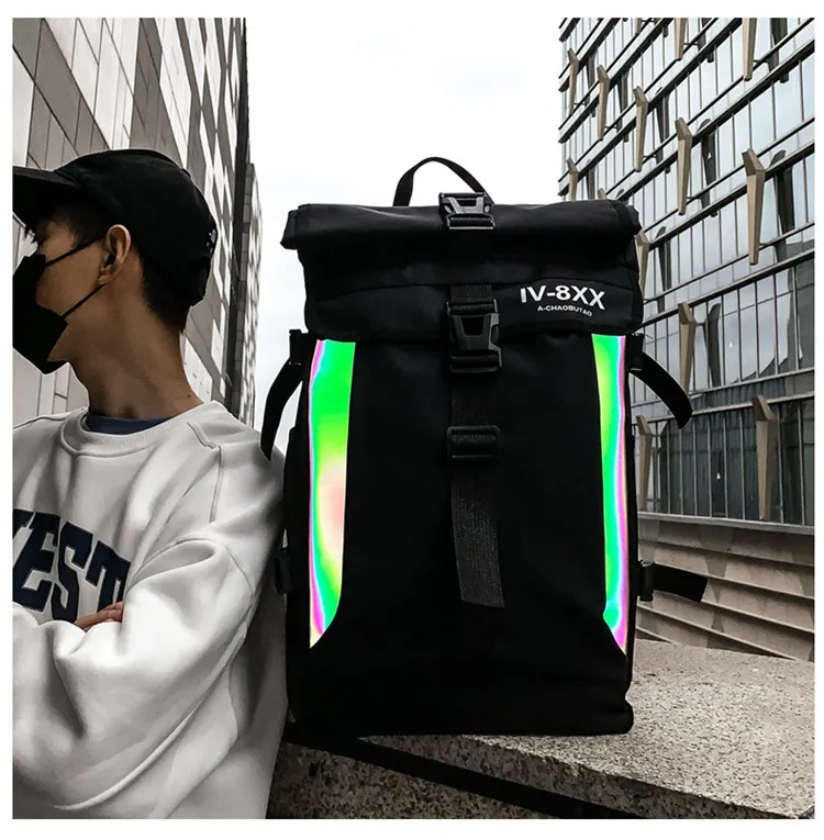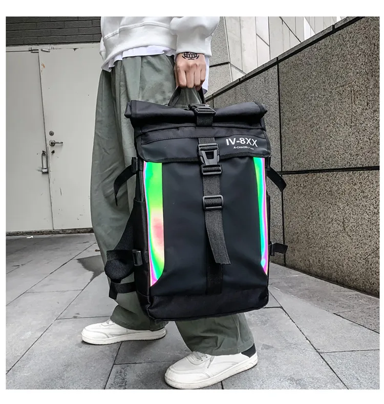 - > Mochila escolar de grande capacidade para meninos e meninas, techwear, hip hop, ao ar livre, casual, esporte, bolsa de viagem, colorida, reflexiva, 2022