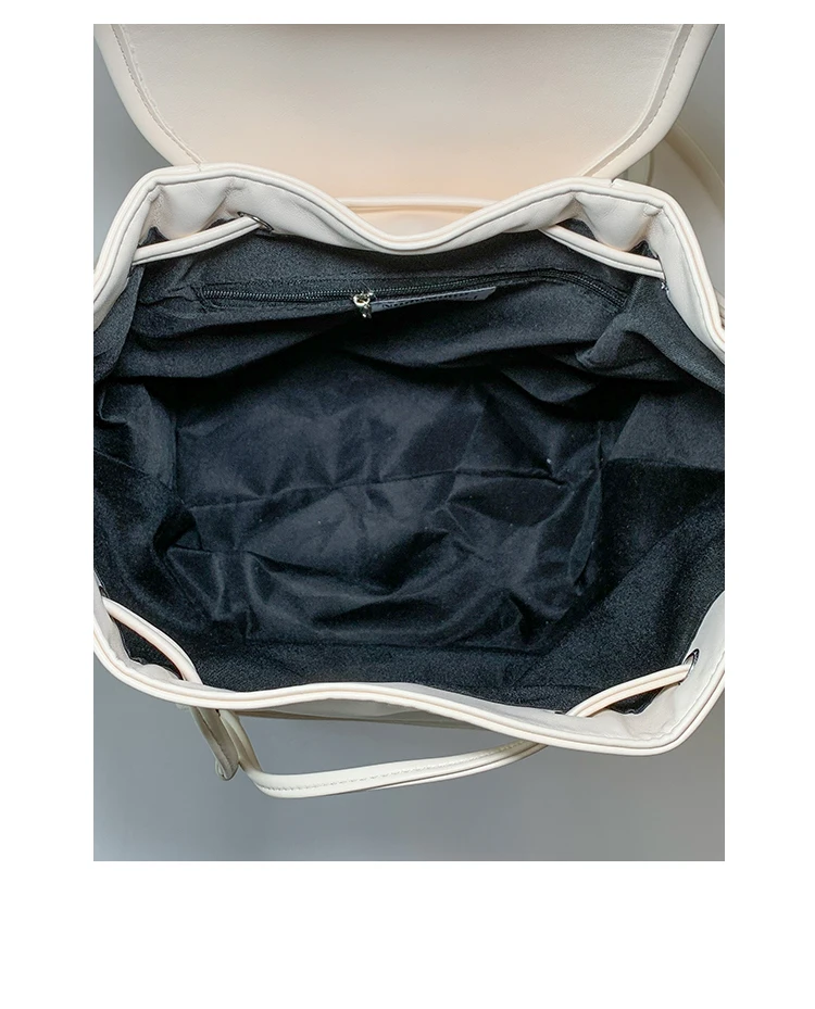 Este saco de mochila apresenta um design de luxo com detalhes de linha clara, tornando-o elegante e moderno.