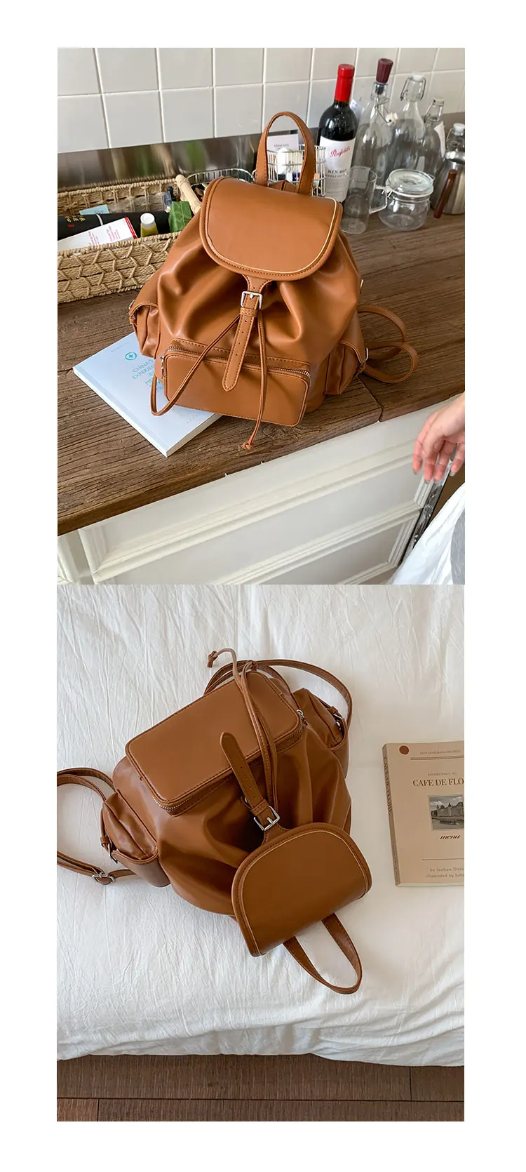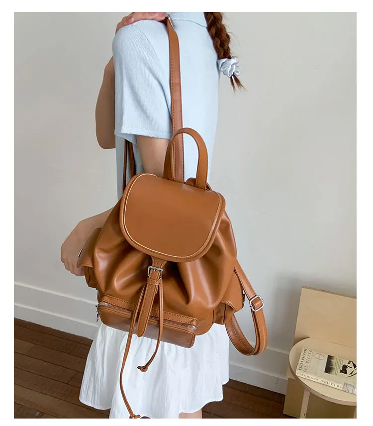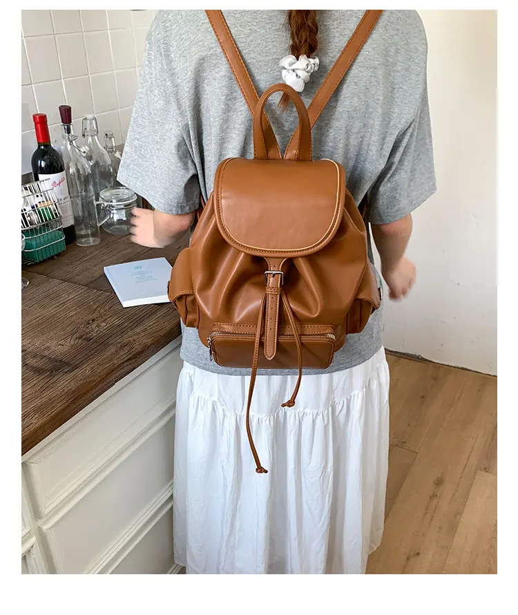Feito de material PU de alta qualidade, este saco de mochila é durável e resistente ao desgaste diário.