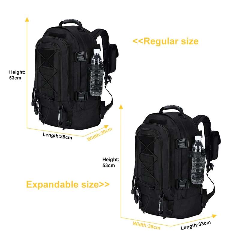 • Design Tático Militar:A mochila foi projetada para uso tático militar, tornando-a durável e confiável para condições externas difíceis.