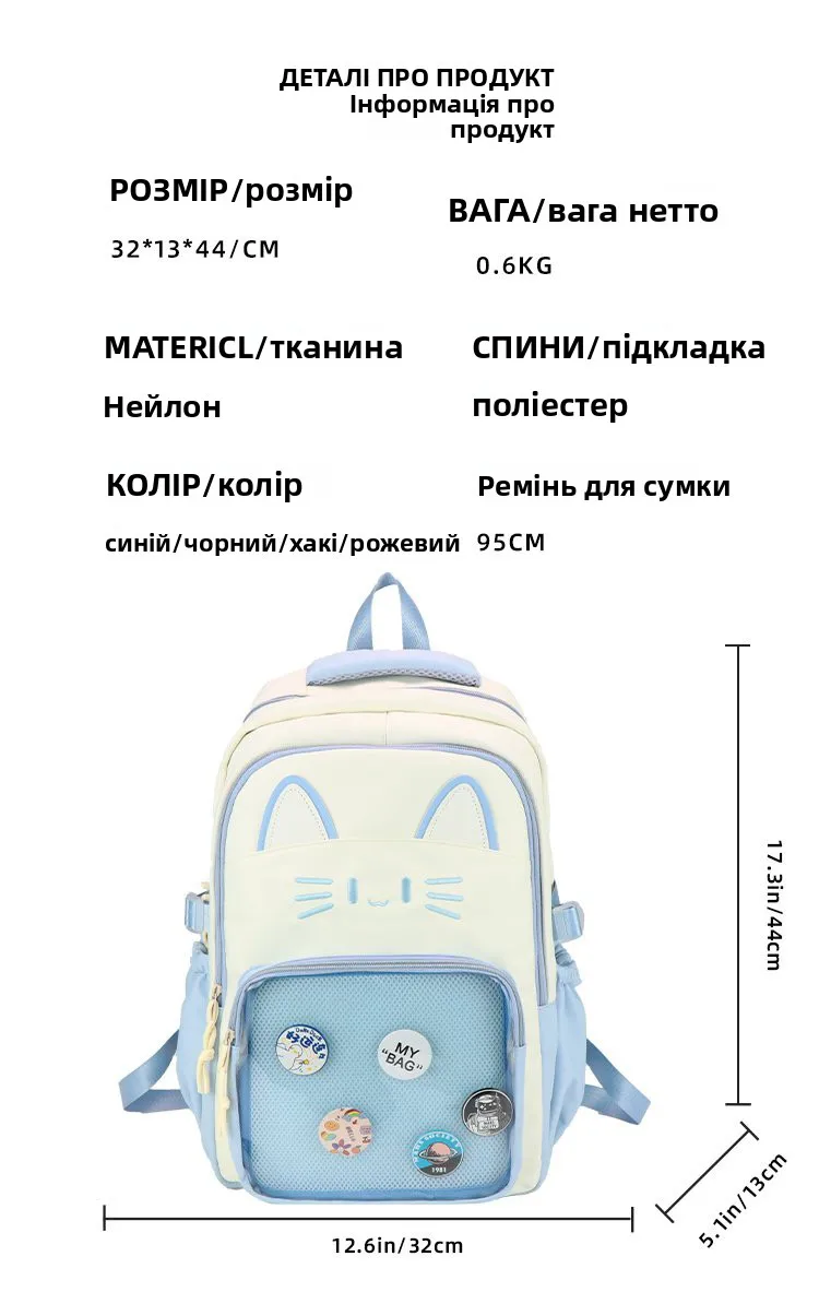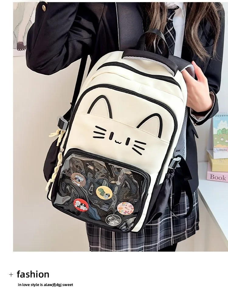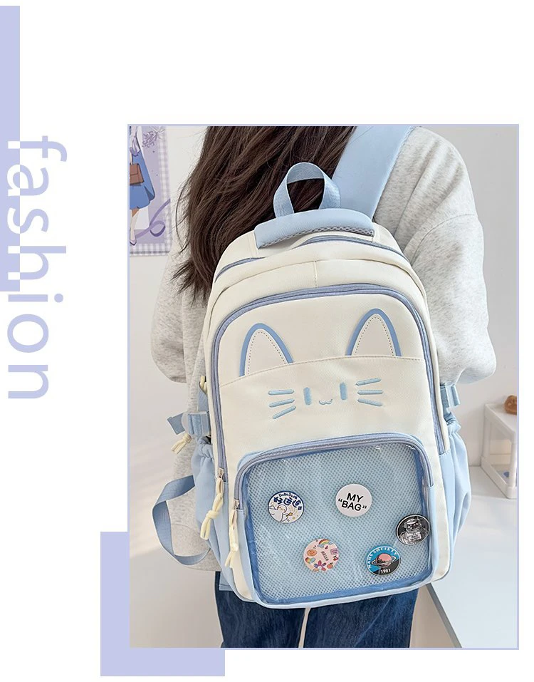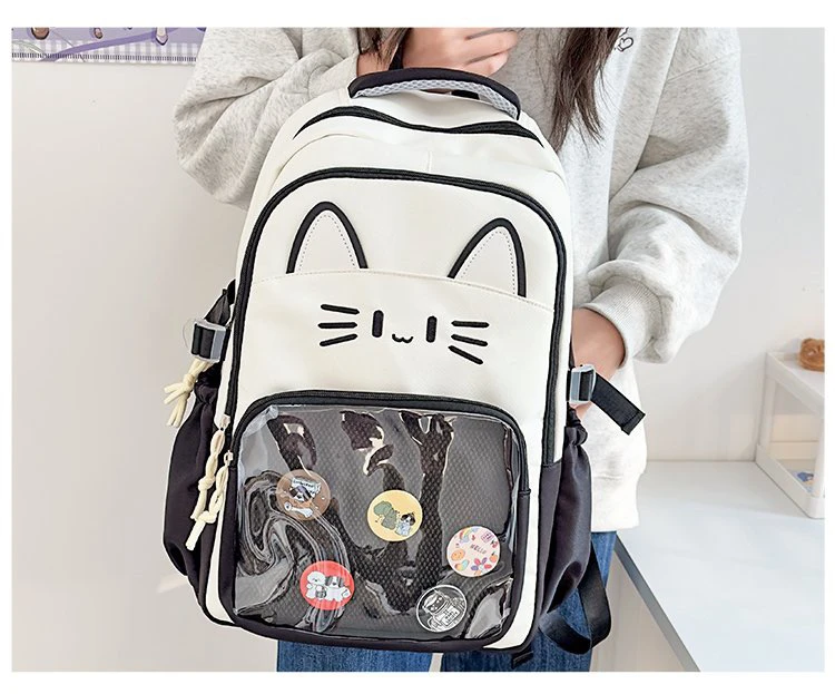 Mochila Transparente Faion, Versátil para Viagens, Design de Gato, Mochila de Duas Alças, Leve e Impermeável