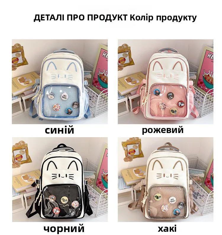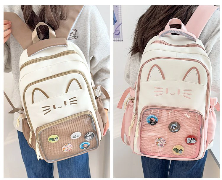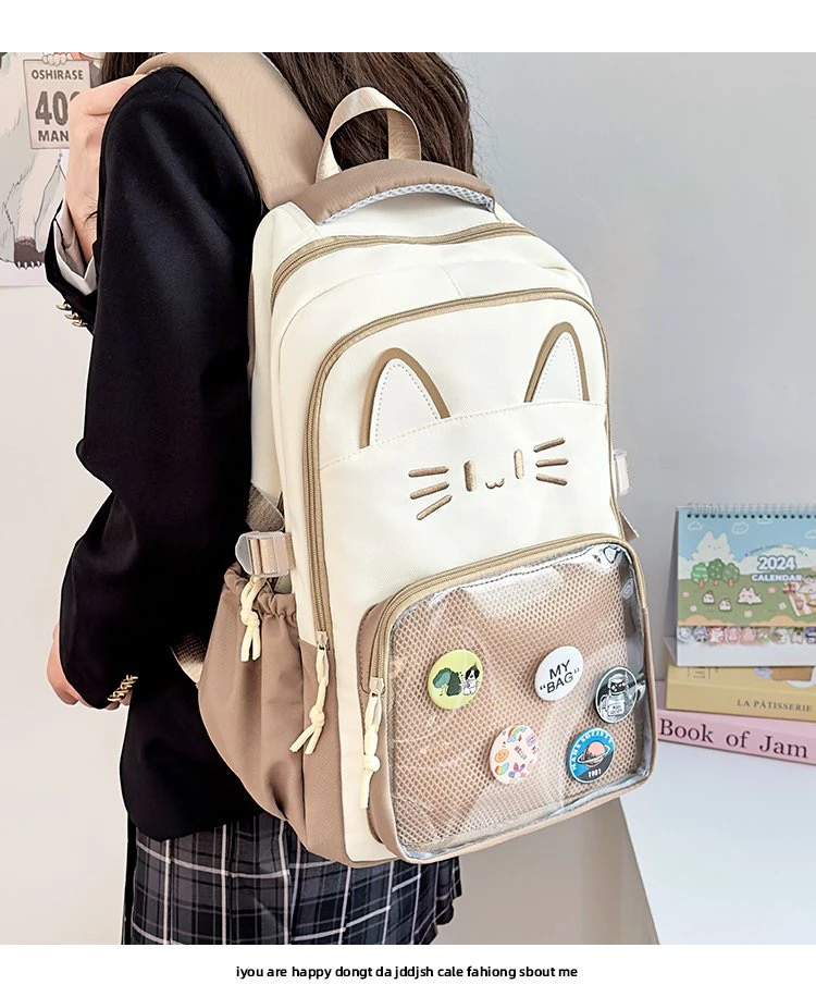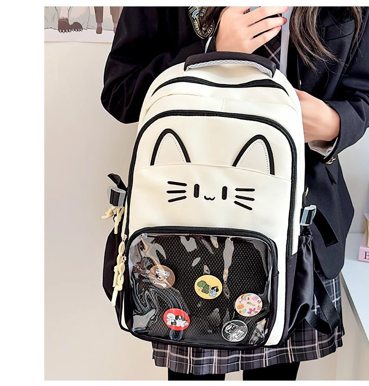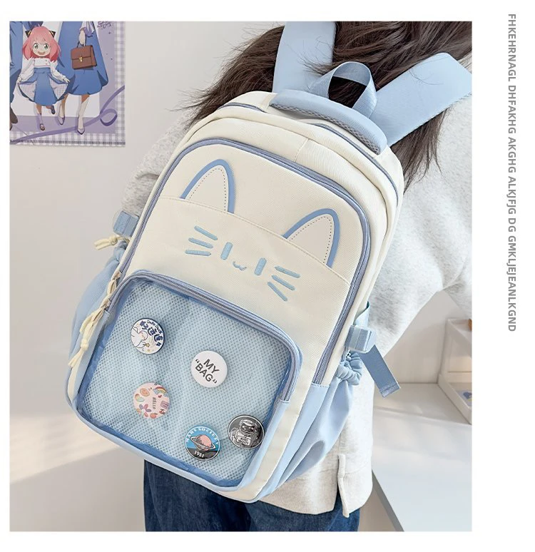 - > Mochila Transparente Faion, Versátil para Viagens, Design de Gato, Mochila de Duas Alças, Leve e Impermeável