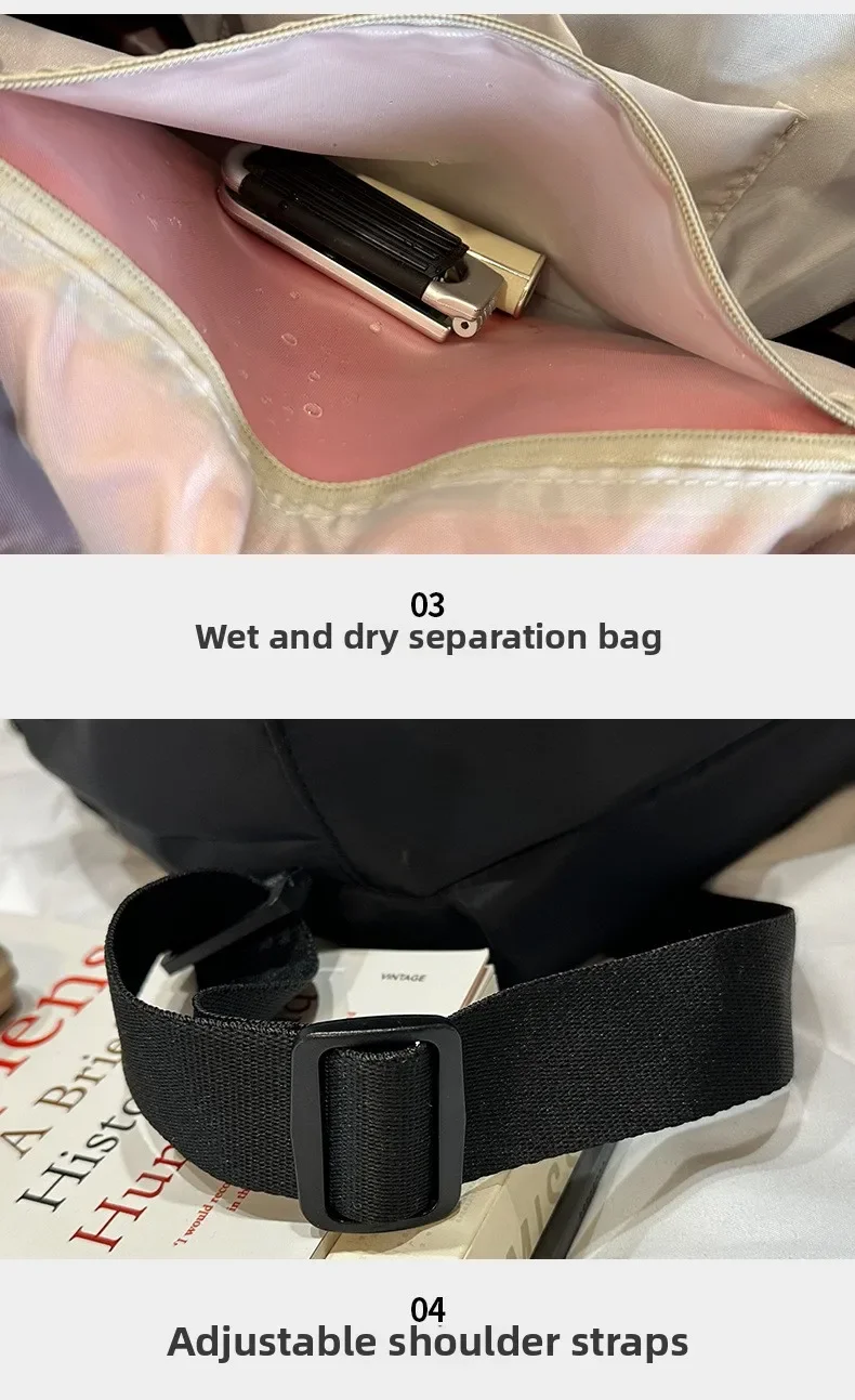 - > Mochilas de moda multifuncionais de grandes dimensões para mulheres bolsa de ombro de separação seca e molhada de grande capacidade para viagens esportivas