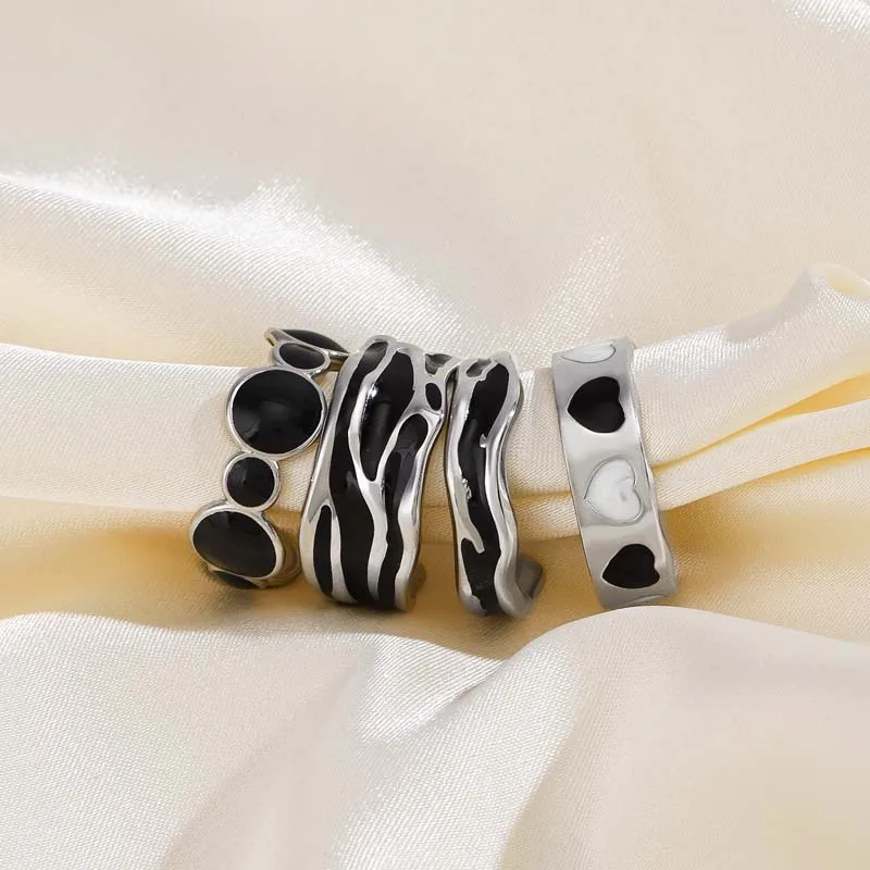 Moda anéis geométricos de aço inoxidável para mulheres simples cor preta caindo óleo anéis ajustáveis jóias de casamento presente bijoux