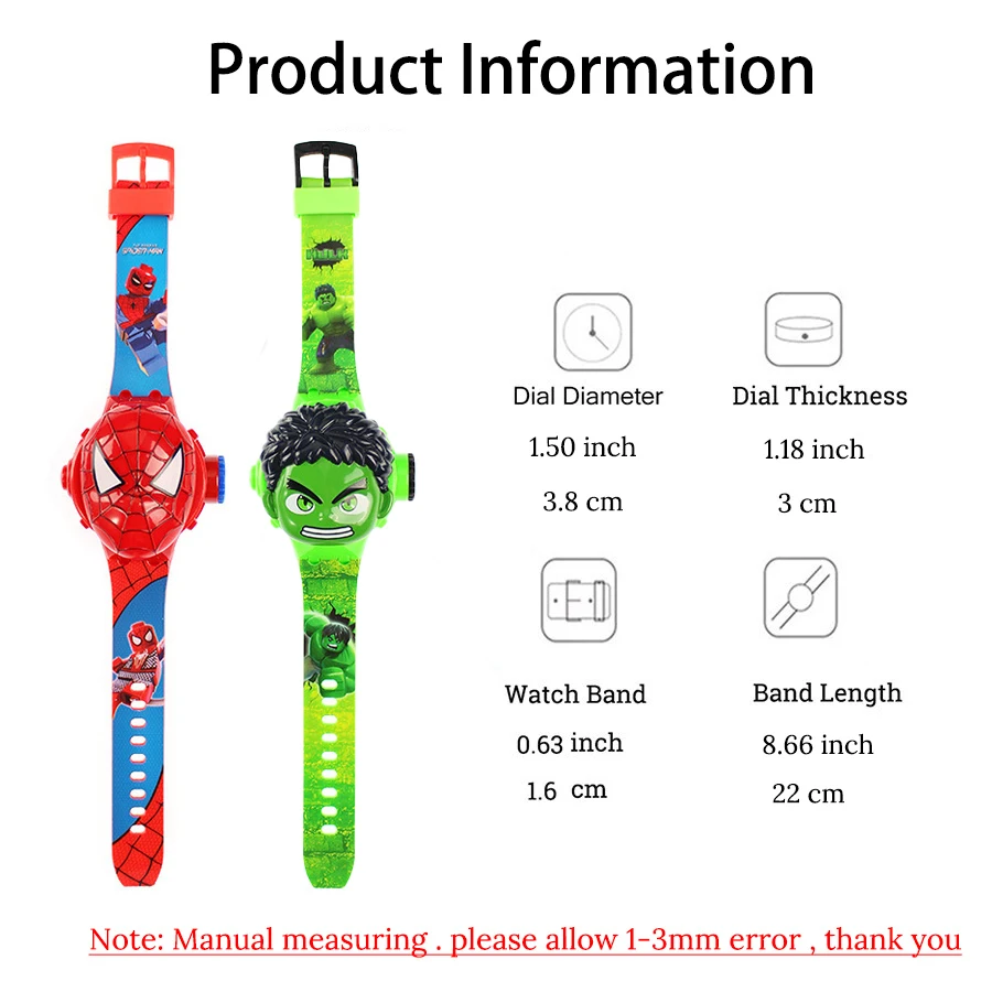 - > Moda dos desenhos animados spiderman projeção relógio para crianças brinquedos homem de ferro capitão crianças relógios estudante presente relógio digital