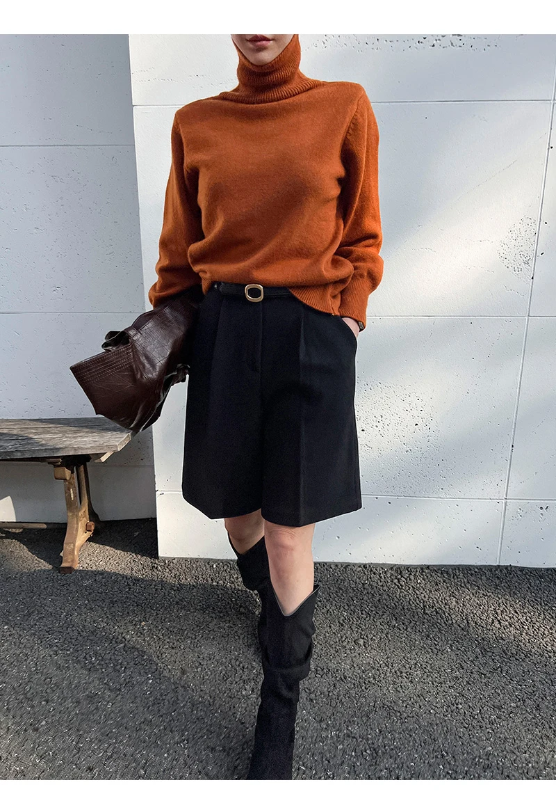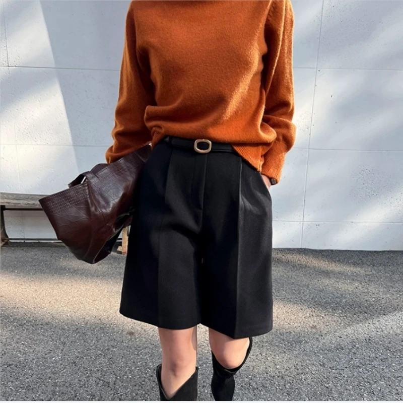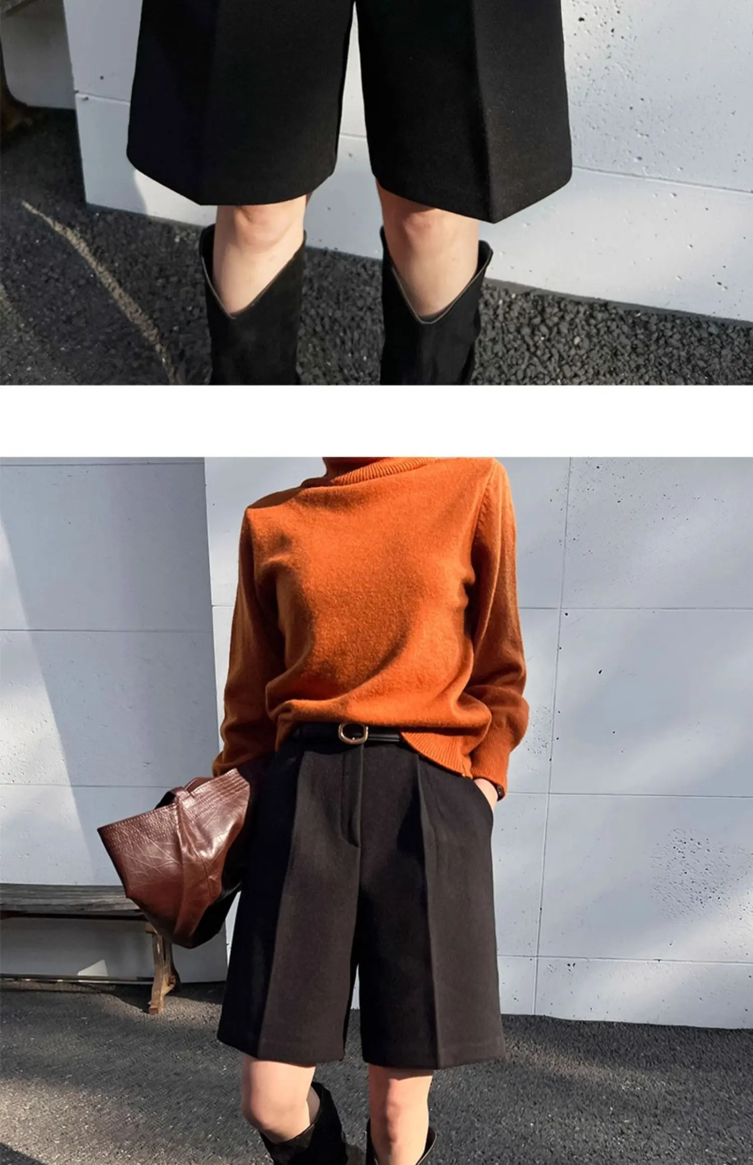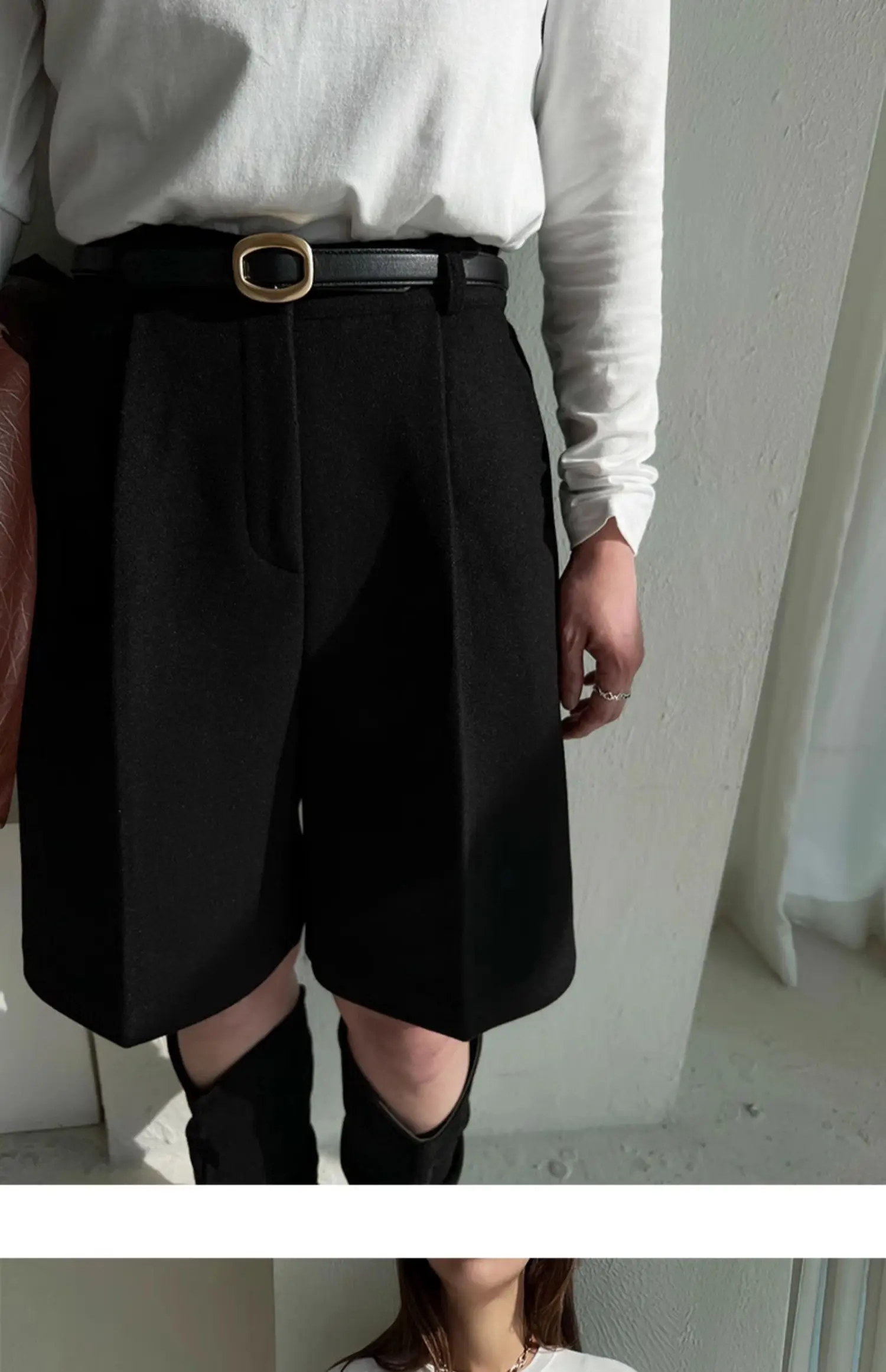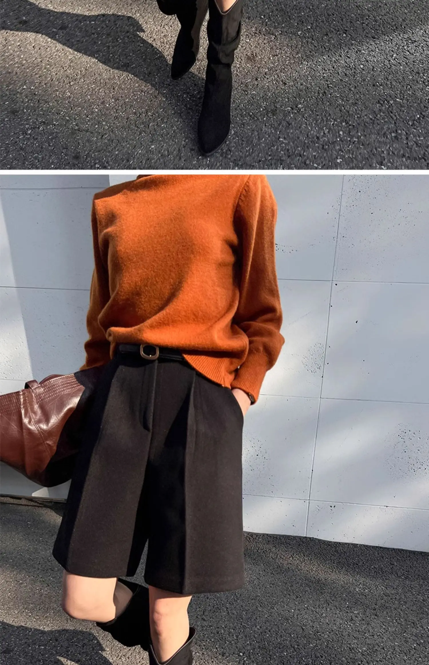 Moda engrossar quente bolsos soltos feminino falso lã shorts retos 2025 outono inverno cintura alta senhoras shorts de perna larga n809