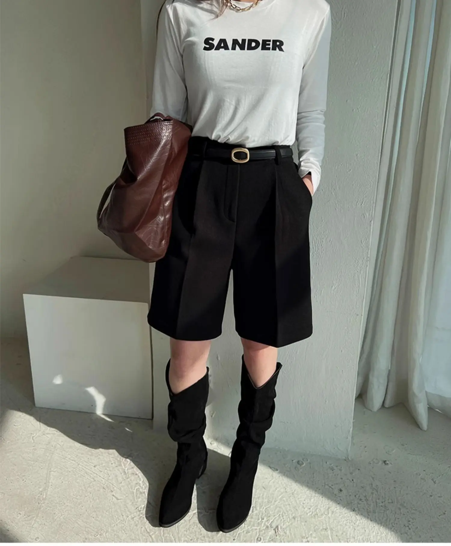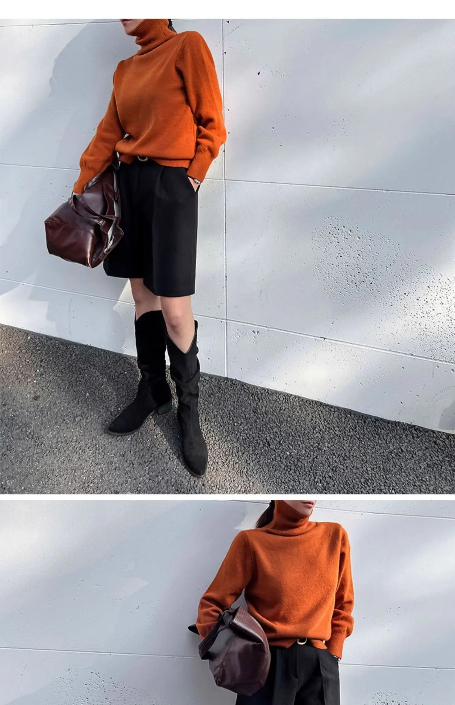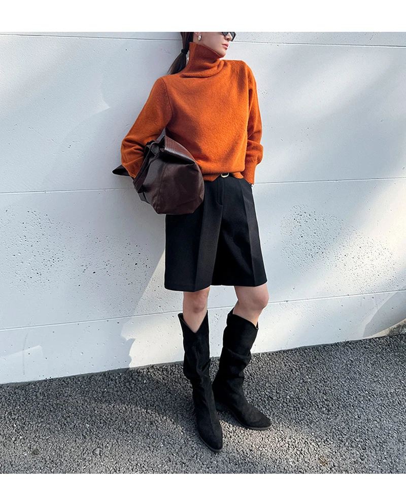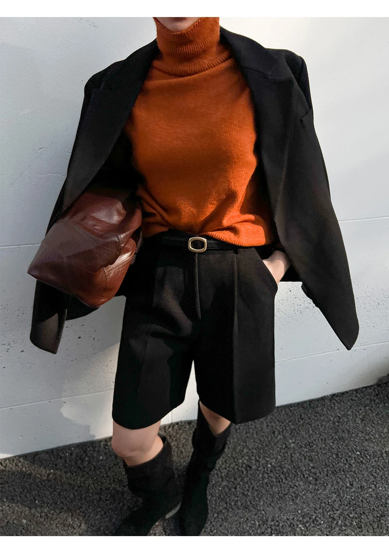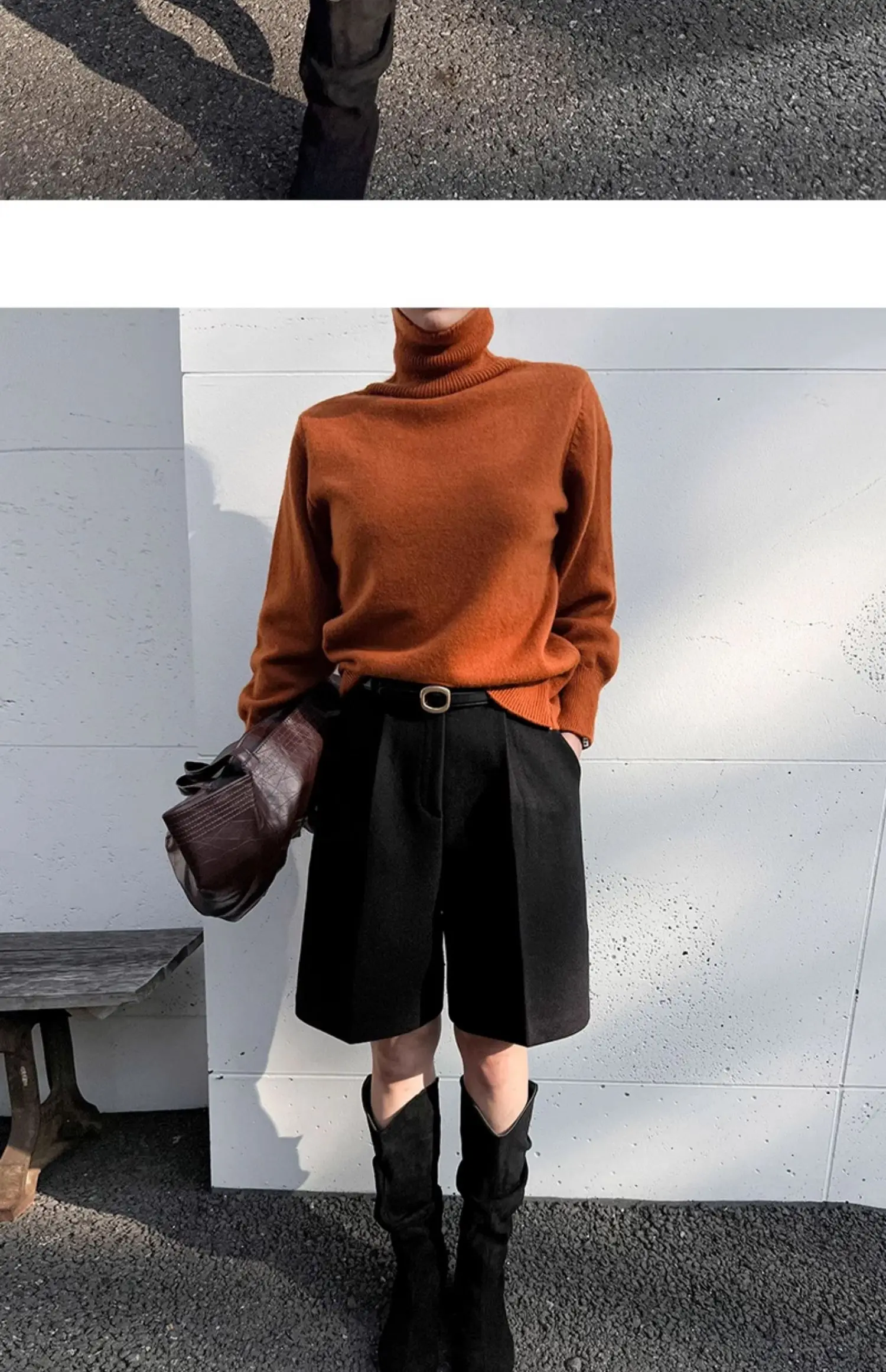 Moda engrossar quente bolsos soltos feminino falso lã shorts retos 2025 outono inverno cintura alta senhoras shorts de perna larga n809