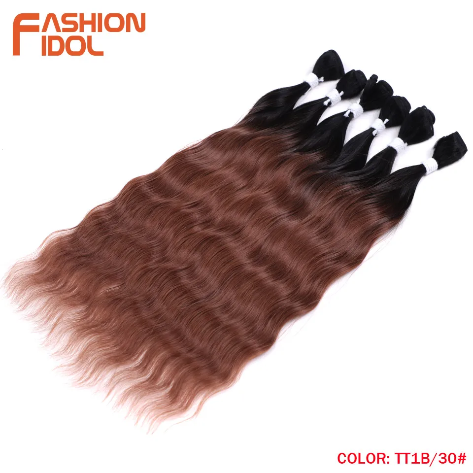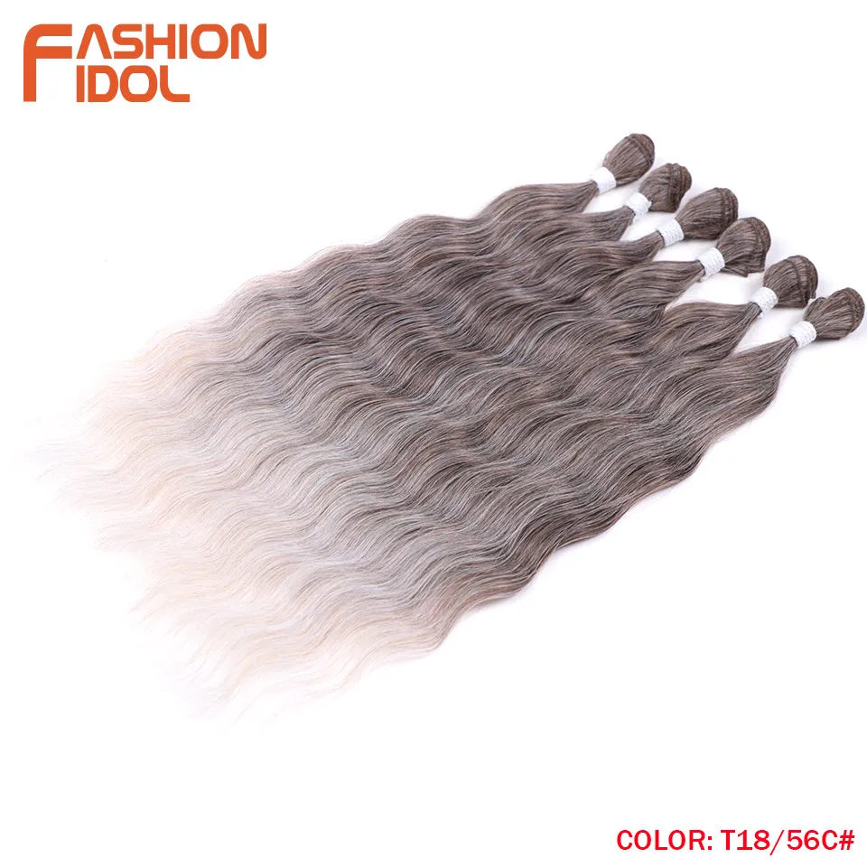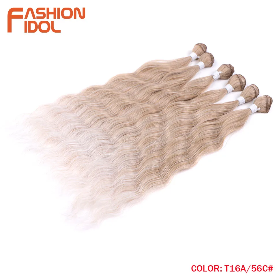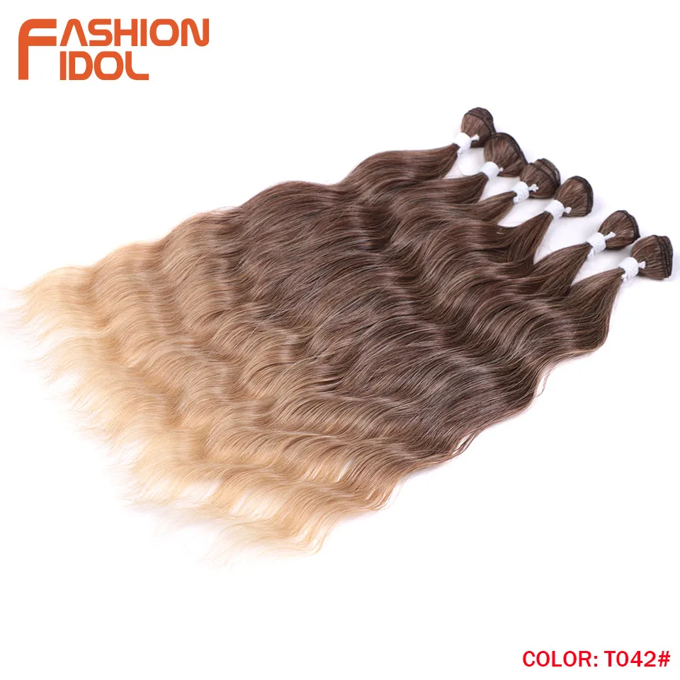 - > Moda ídolo onda de água pacotes de cabelo extensões de cabelo sintético ombre loira tecer pacotes de cabelo 6 pçs 20 "fibra de alta temperatura