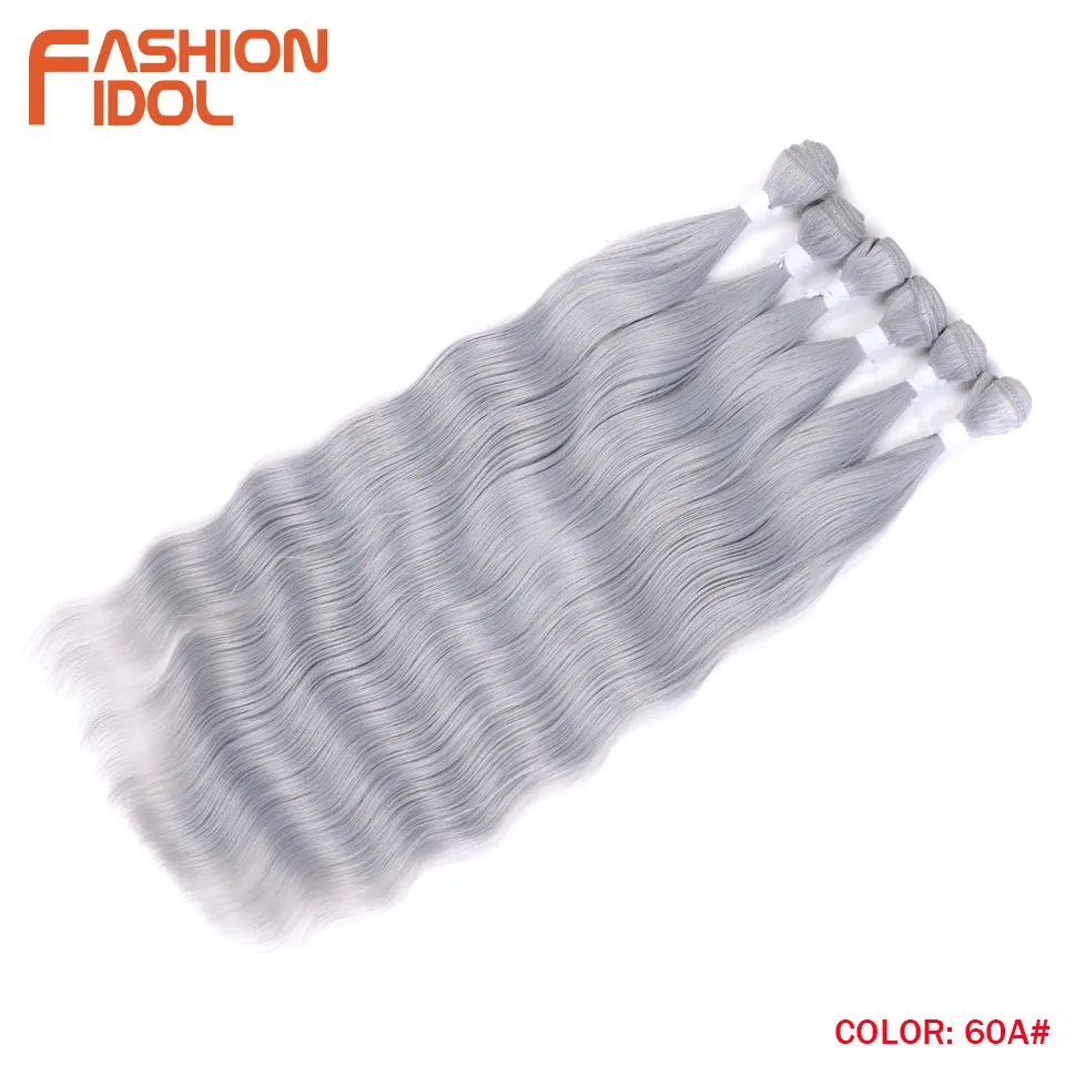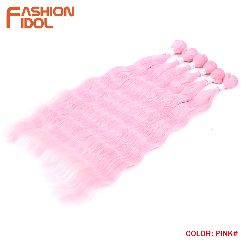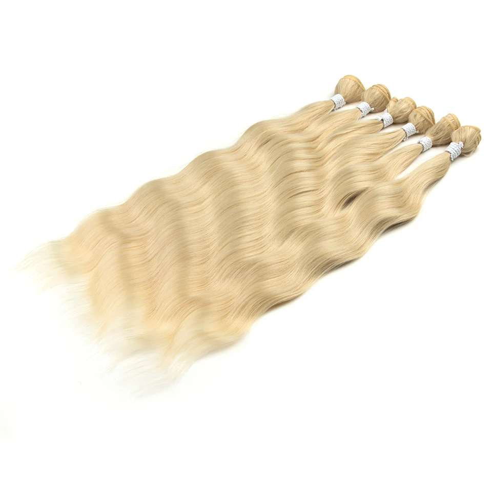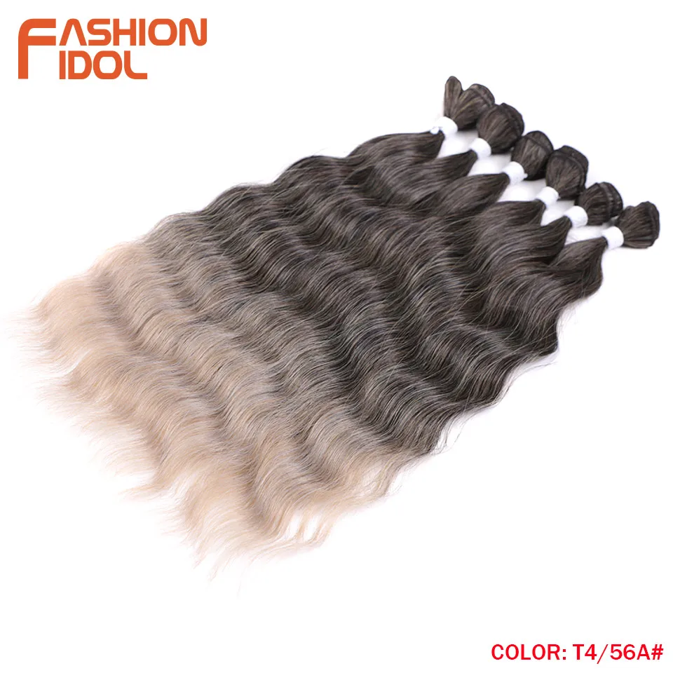 - > Moda ídolo onda de água pacotes de cabelo extensões de cabelo sintético ombre loira tecer pacotes de cabelo 6 pçs 20 "fibra de alta temperatura