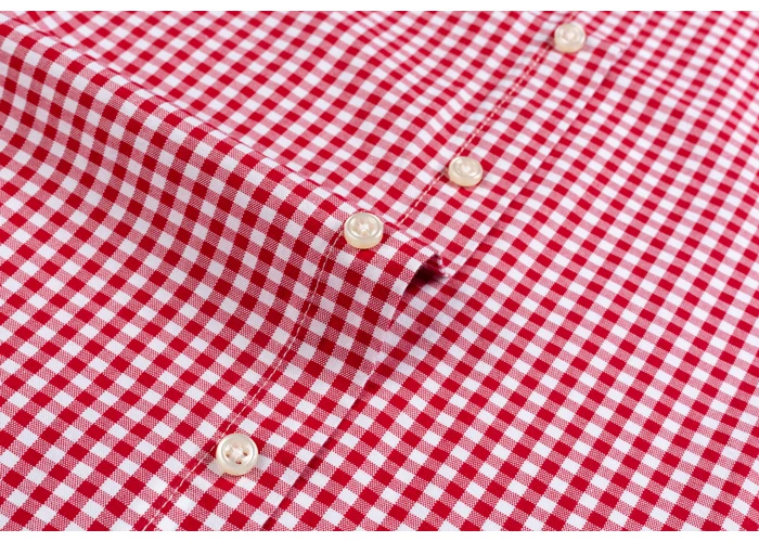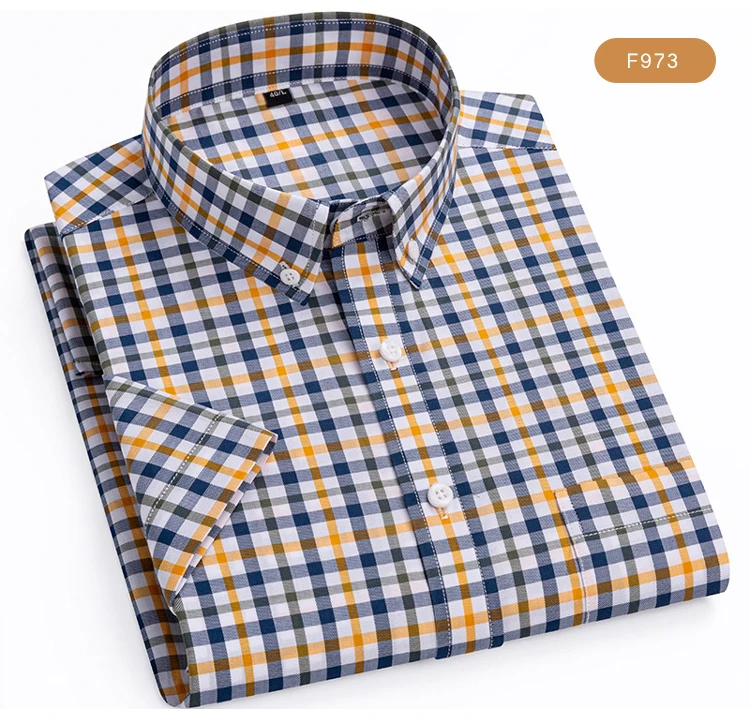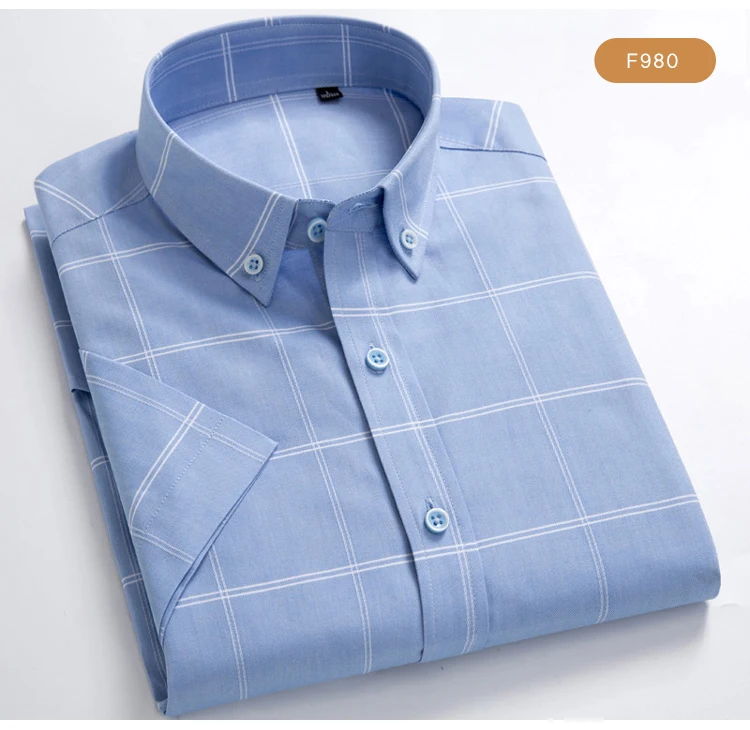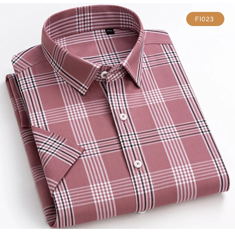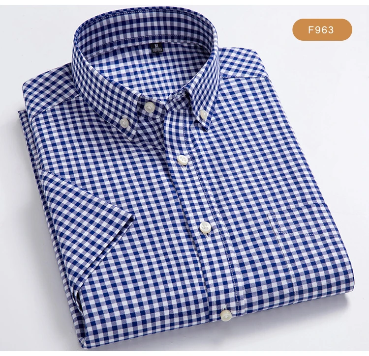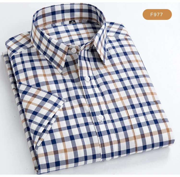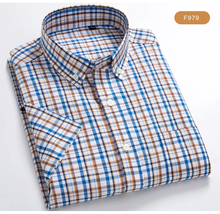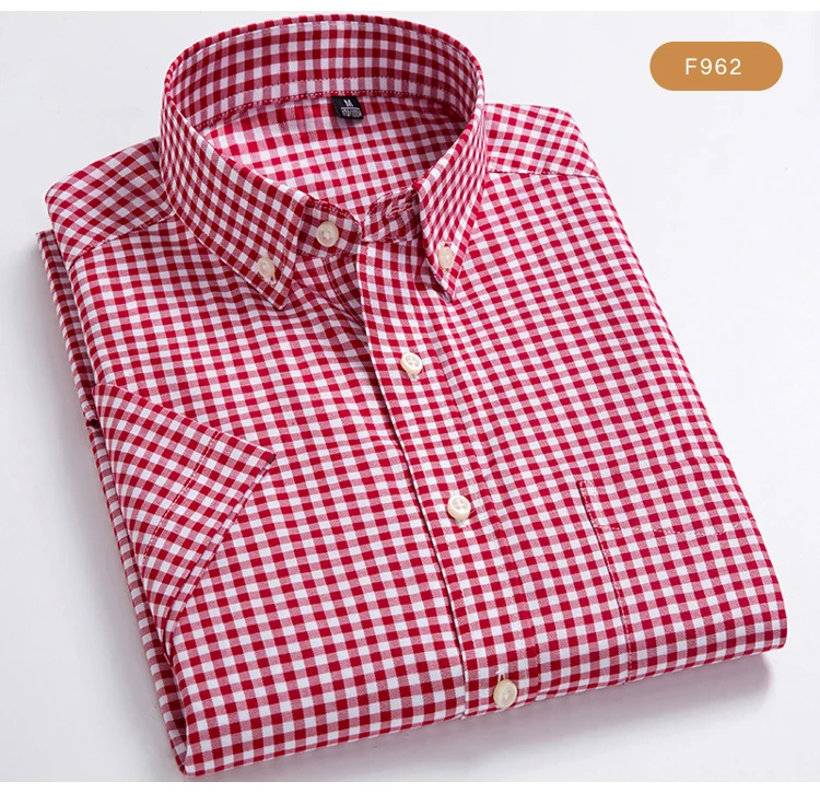 - > Moda masculina xadrez manga curta 100% algodão camisa botão-gola férias jovem listrado verão casual camisas guingão