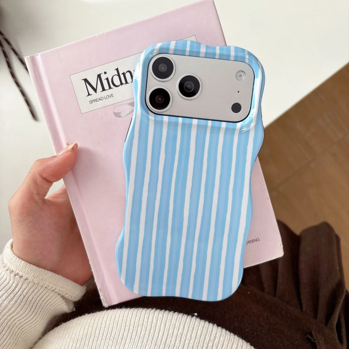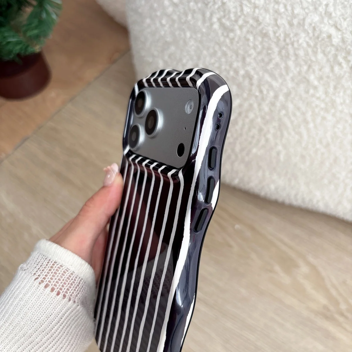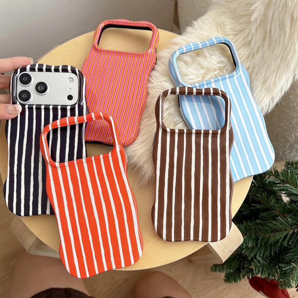 - > Moda onda borda hit cor emenda marrom listras caso de telefone para iphone 17 ar 16 15 14 13 pro max 2 em 1 à prova de choque capa pára-choques