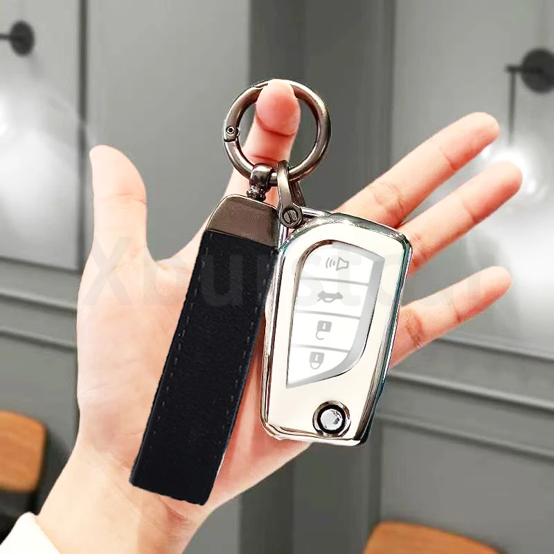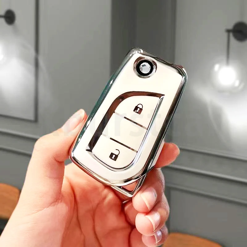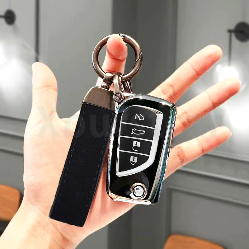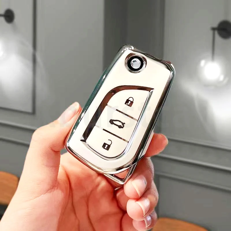 - > Moda tpu escudo fob titular carro dobrável flip chave caso capa saco para toyota corolla camry altis auris aygo yaris rav4 versão