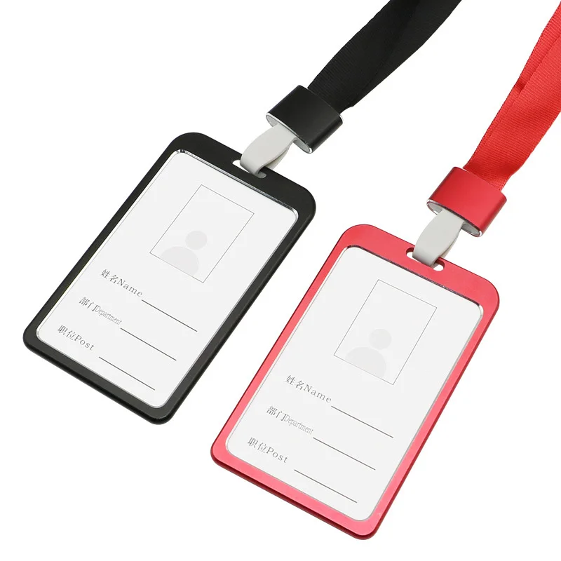 - > Moda unissex capa de cartão feminino cordão liga alumínio trabalho id titular do cartão de trabalho de negócios id crachá titular sacos de metal caso