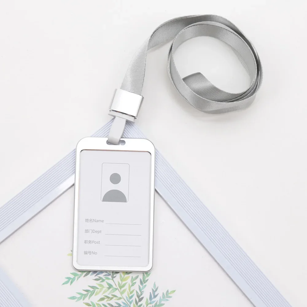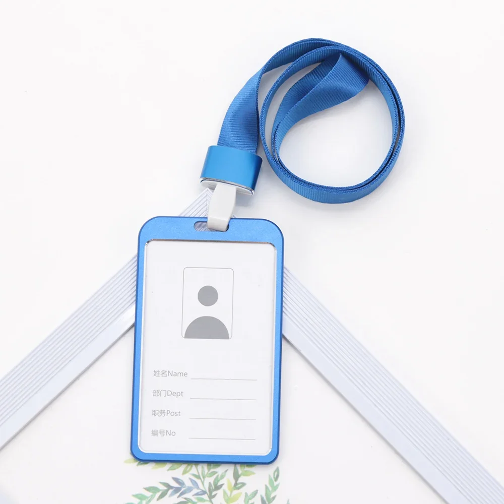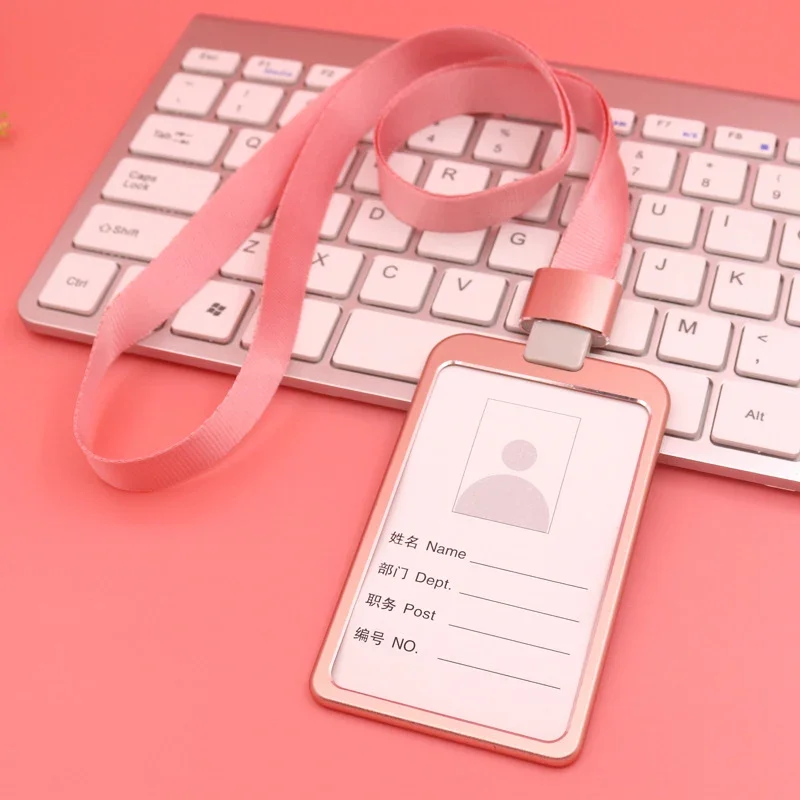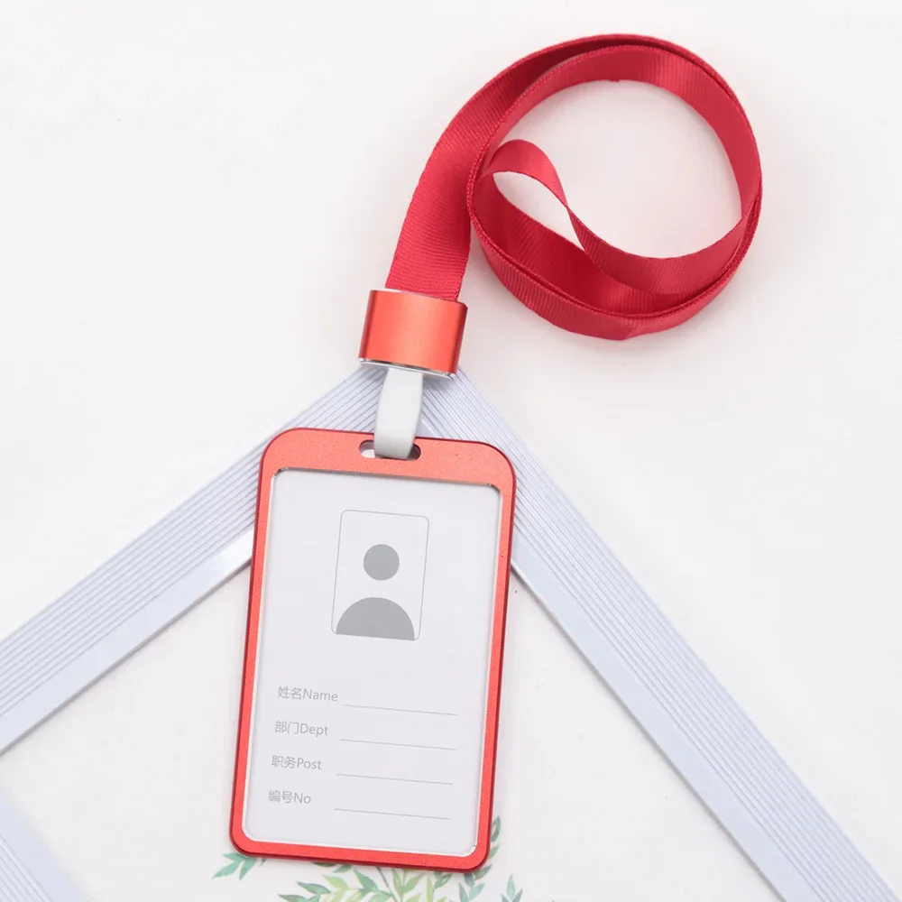 Moda unissex capa de cartão feminino cordão liga de alumínio trabalho id titular do cartão de trabalho de negócios id crachá titular sacos de metal caso