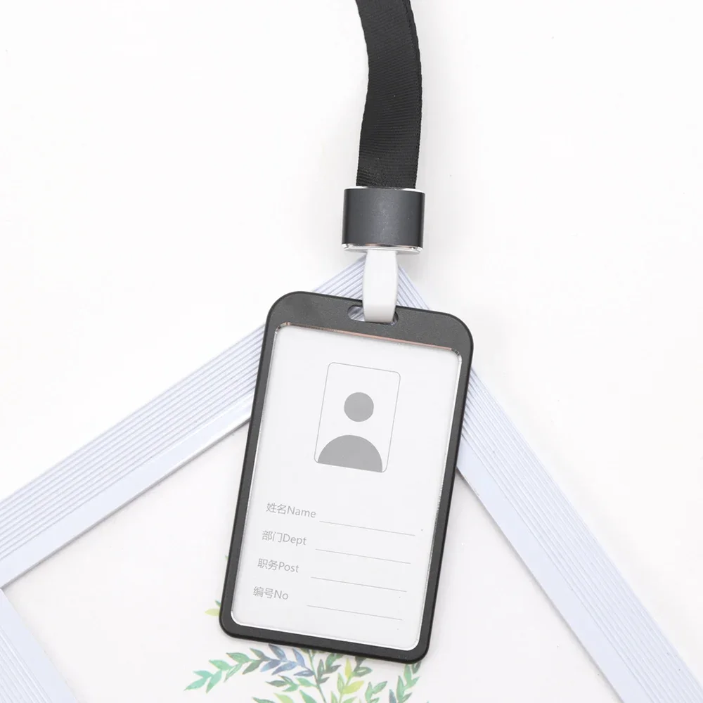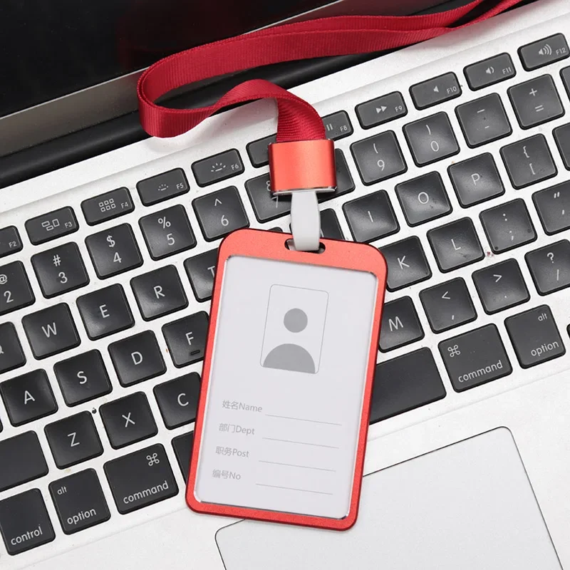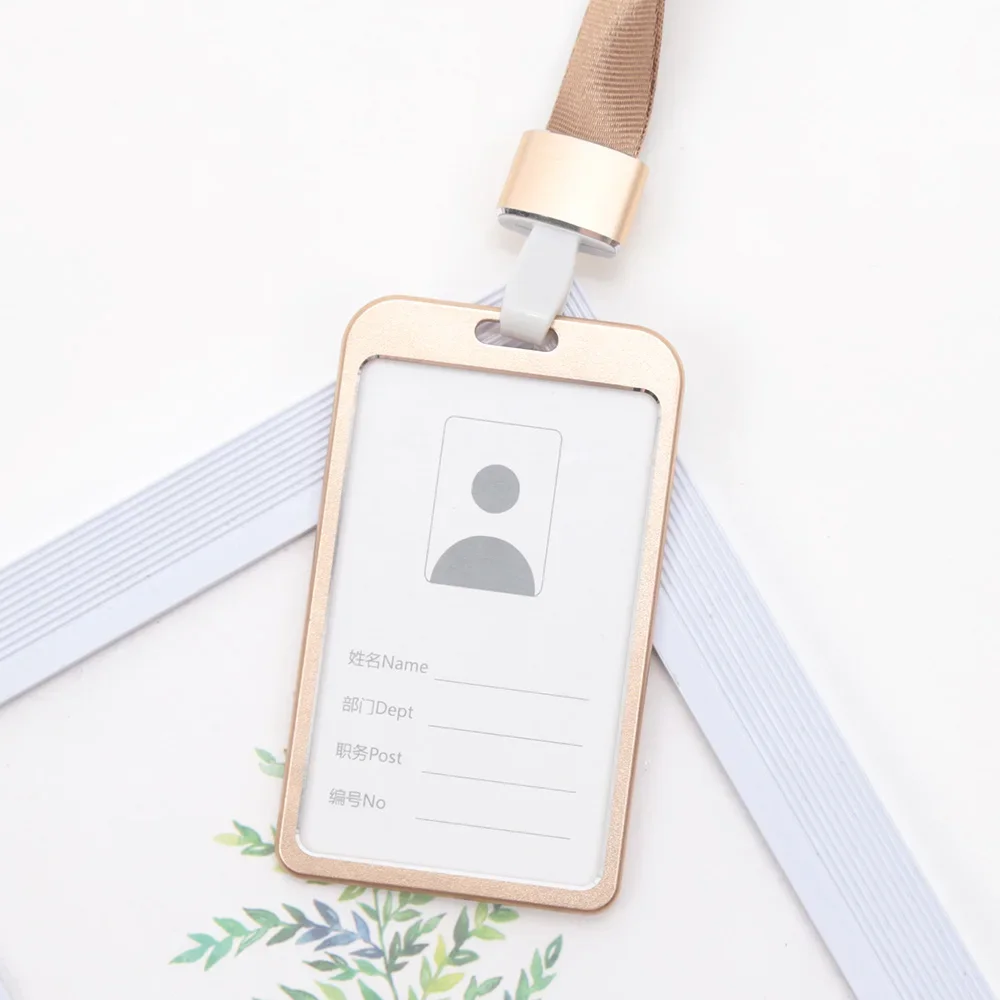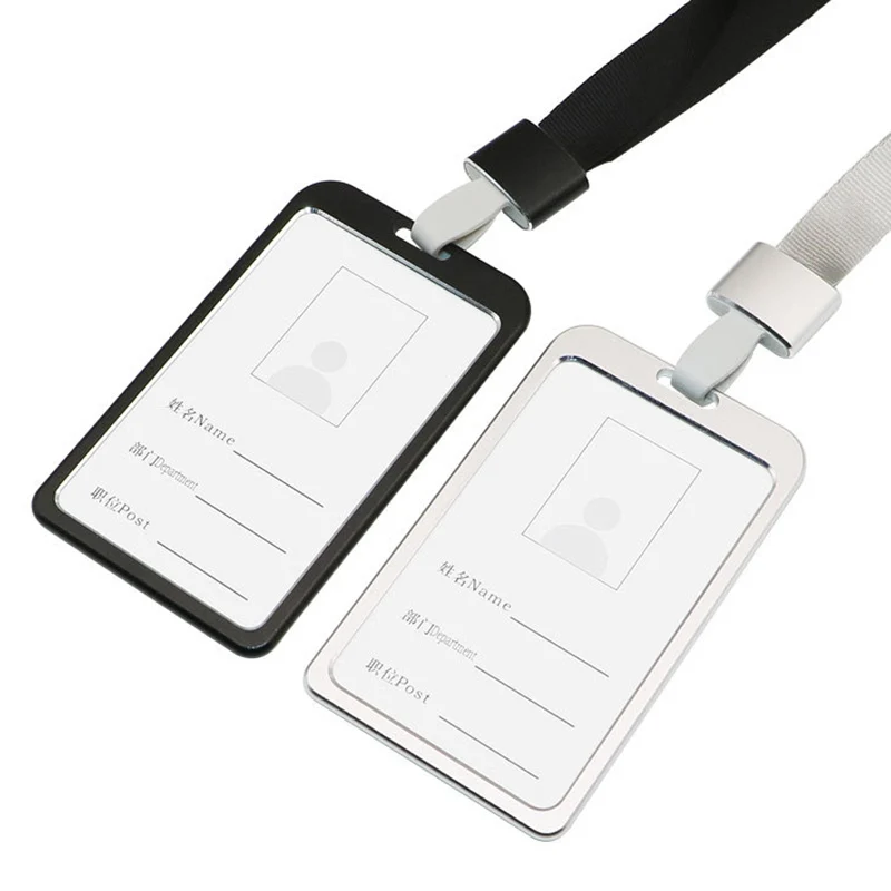 Moda unissex capa de cartão feminino cordão liga de alumínio trabalho id titular do cartão de trabalho de negócios id crachá titular sacos de metal caso