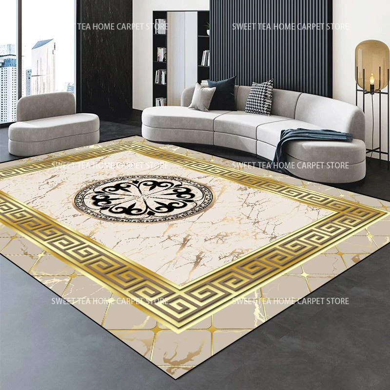 Moderno dourado luxo tapete grande sala de estar decoração casa tapetes antiderrapante quarto tapete personalizável mesa de café lounge