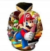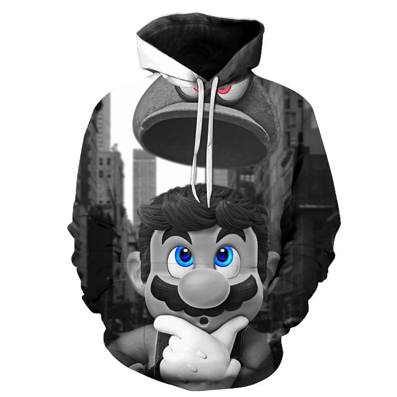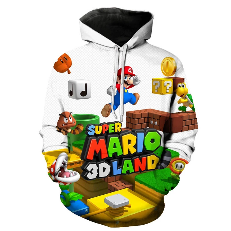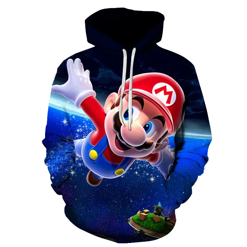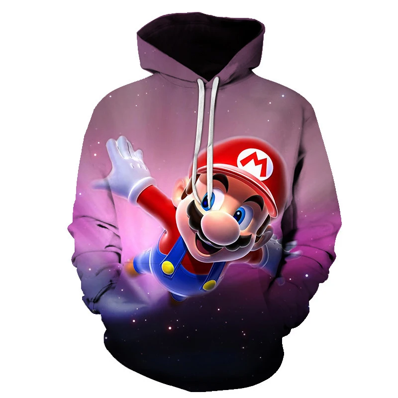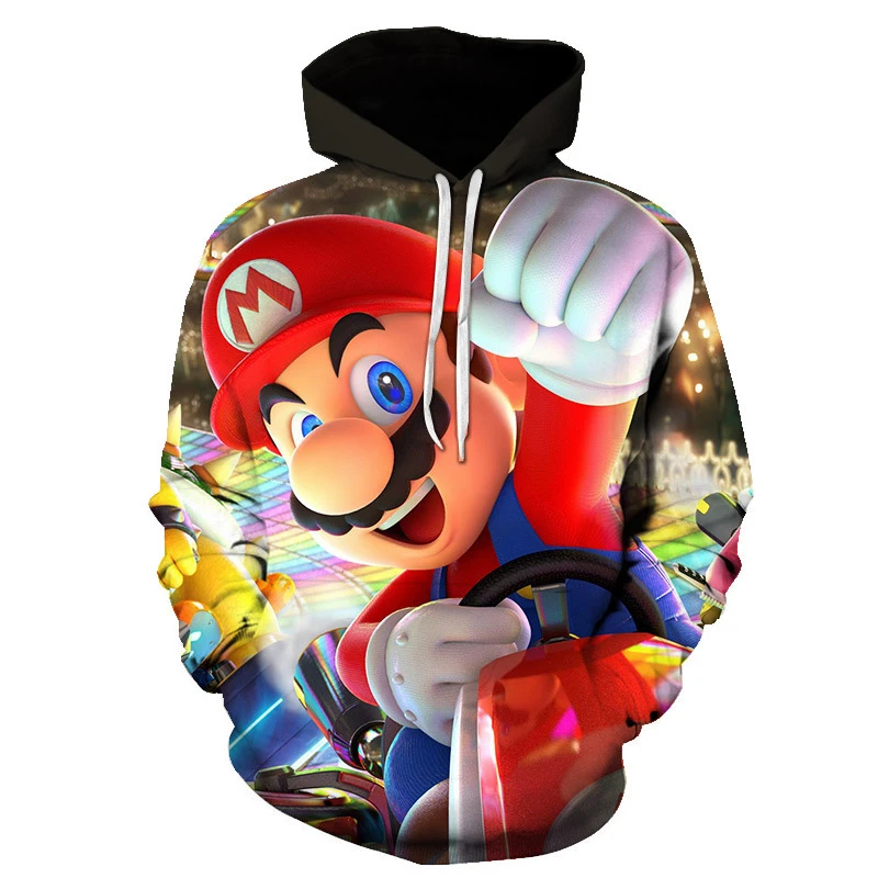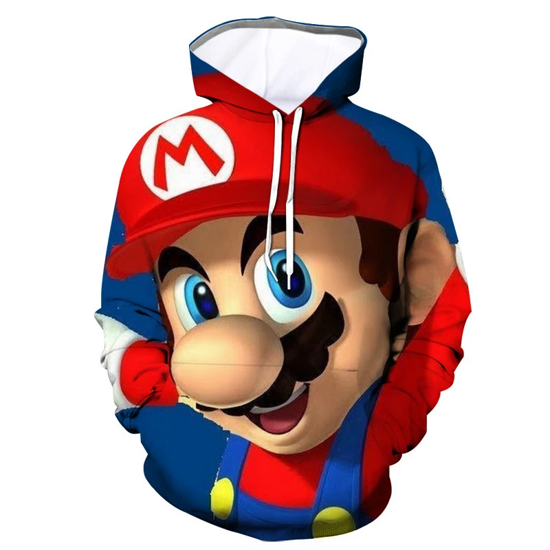 - > Moletom infantil de desenho animado Mario Bros. com pulôver de primavera e outono, moda de manga comprida, moletom com capuz esportivo e fofo