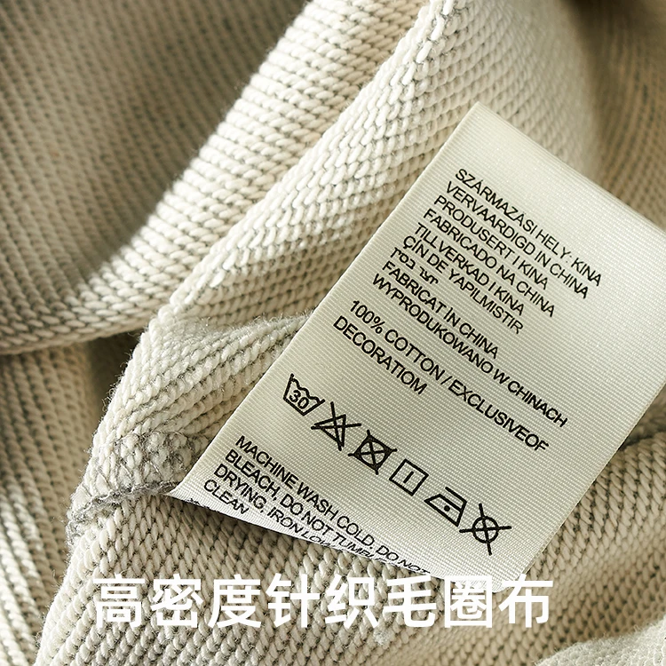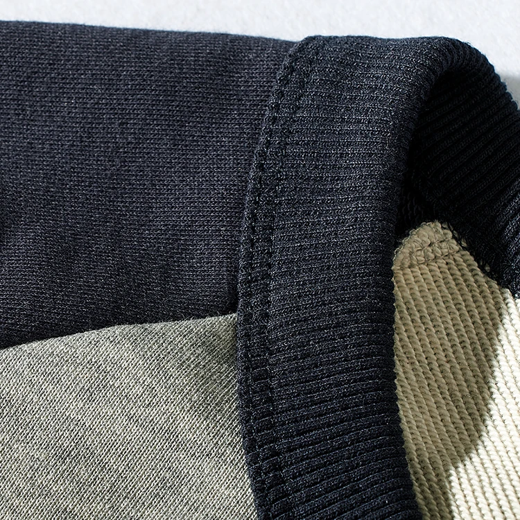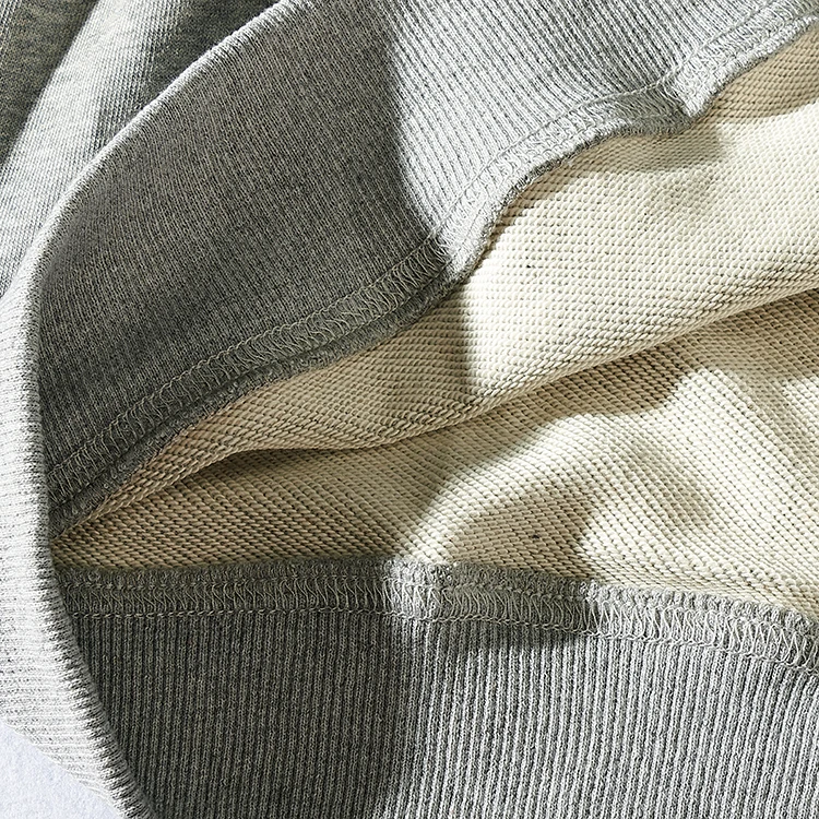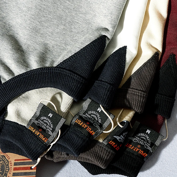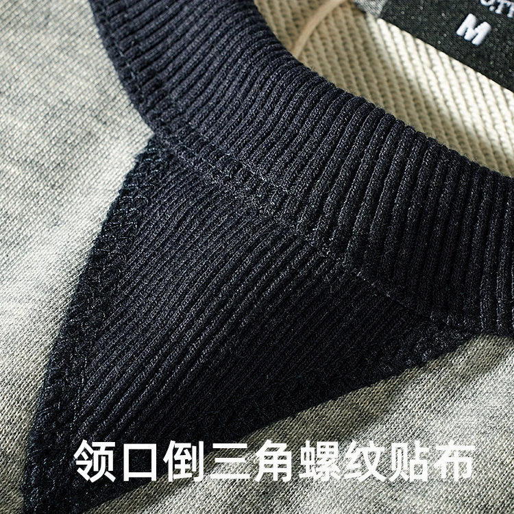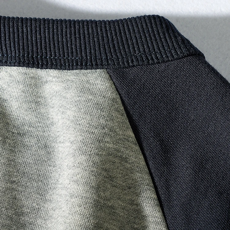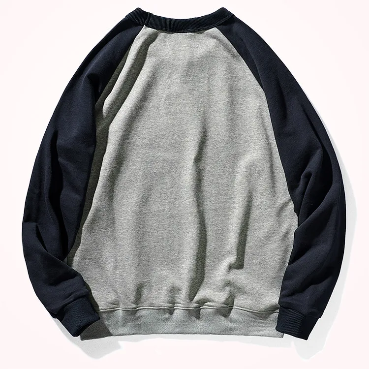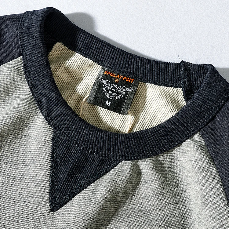 - > Moletons de costura com contraste Terry americano masculino, algodão puro, pulôver lavado com gola O velha, manga raglan de malha, moletons casuais