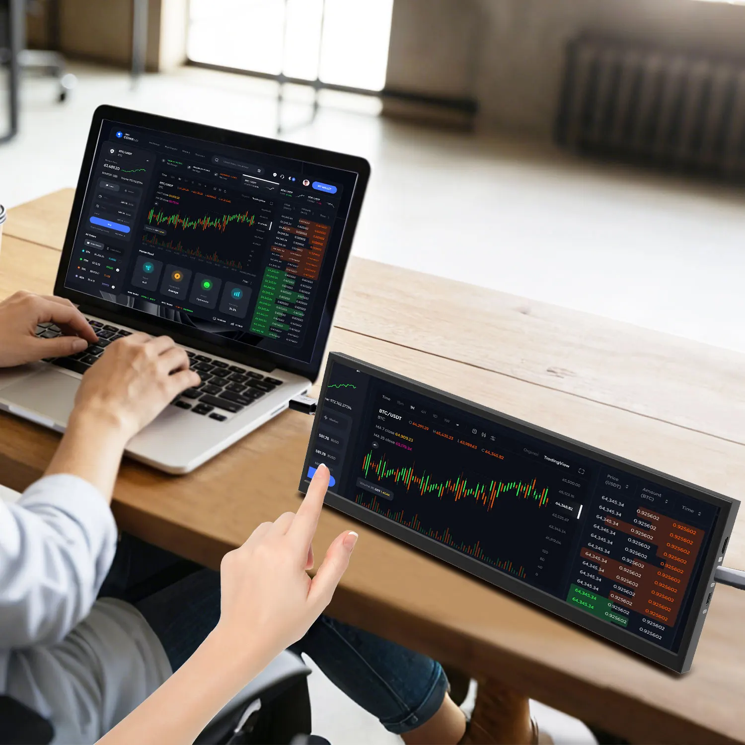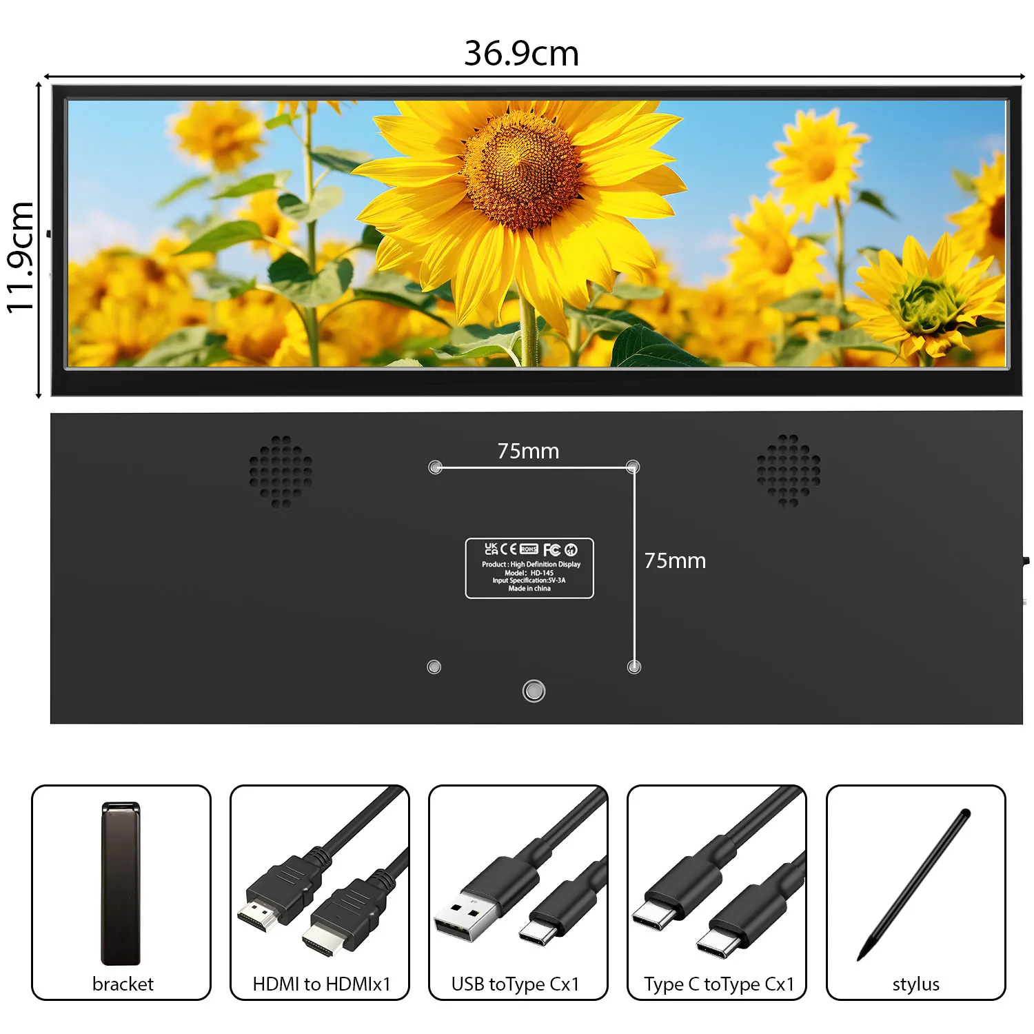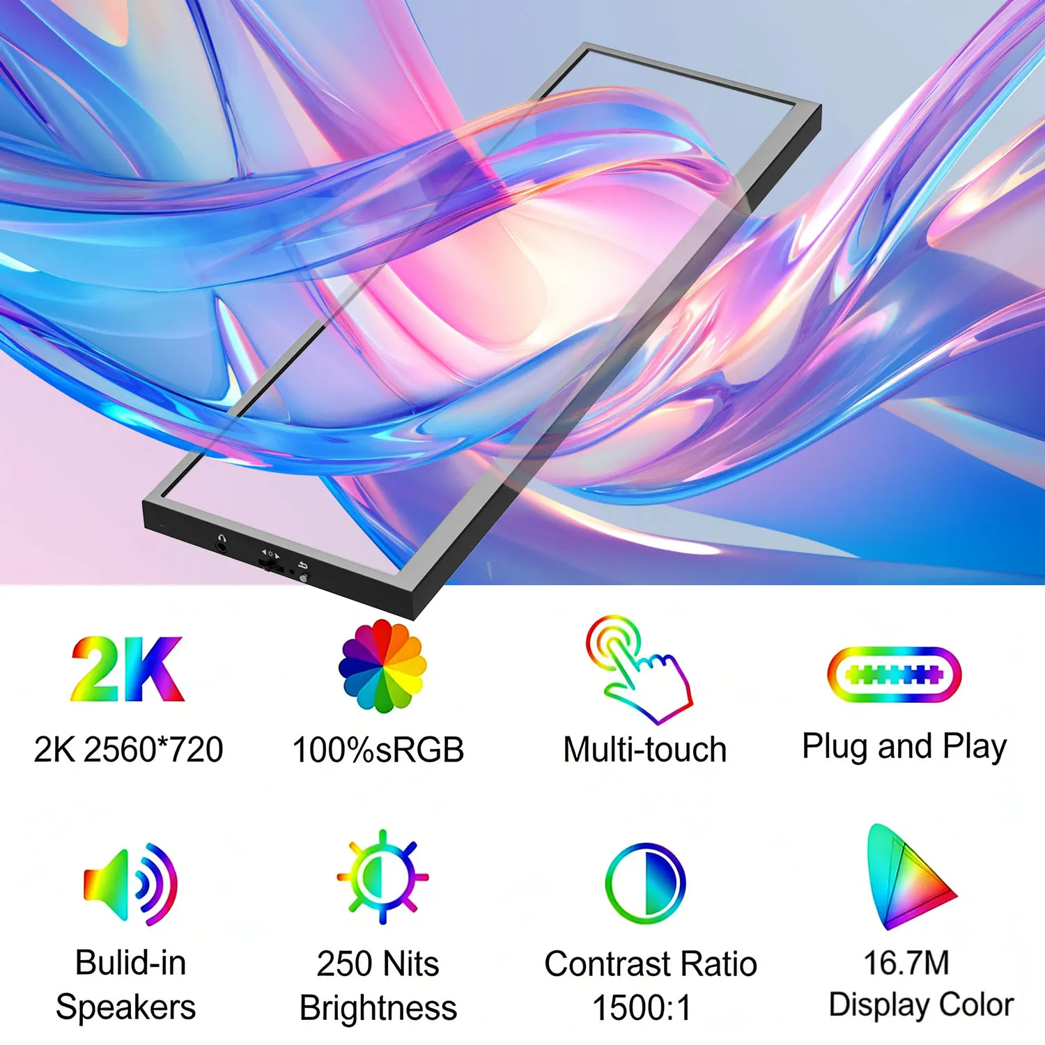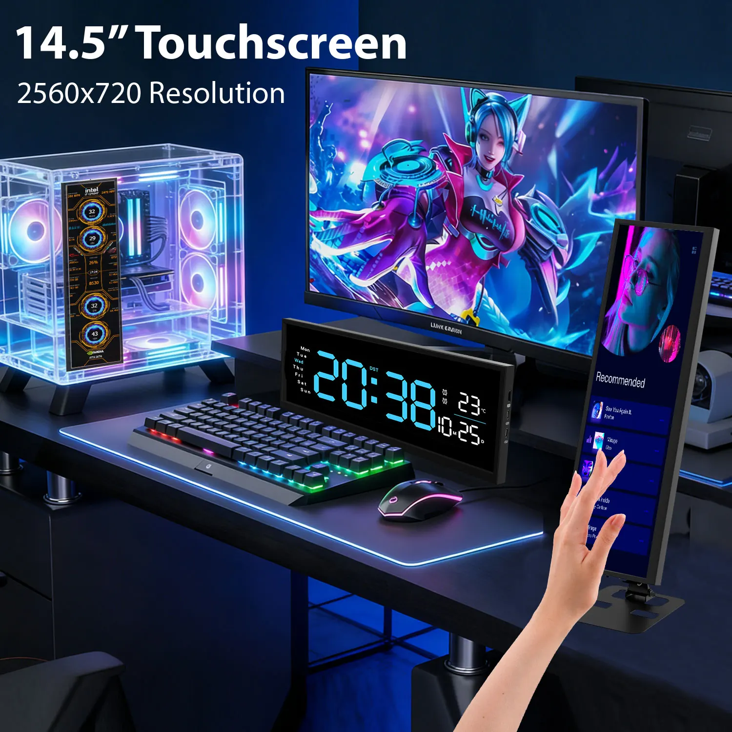 - > Monitor de Barra Esticada Touchscreen 2K de 14,5 Polegadas 2560x720 IPS LCD, Entrada USB-C, Tela Secundária Sensível ao Toque para Gabinete de PC, CPU, GPU